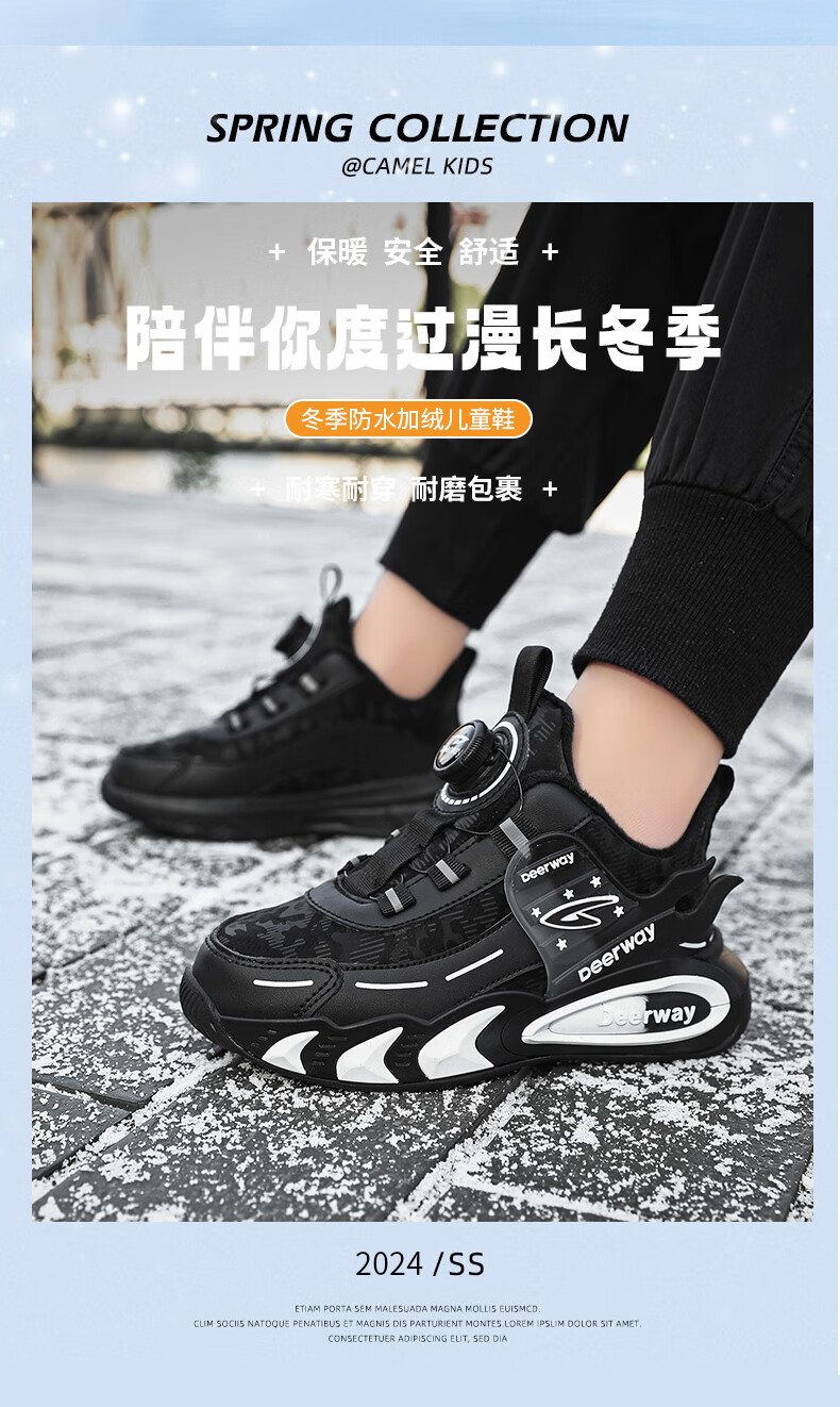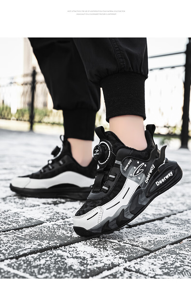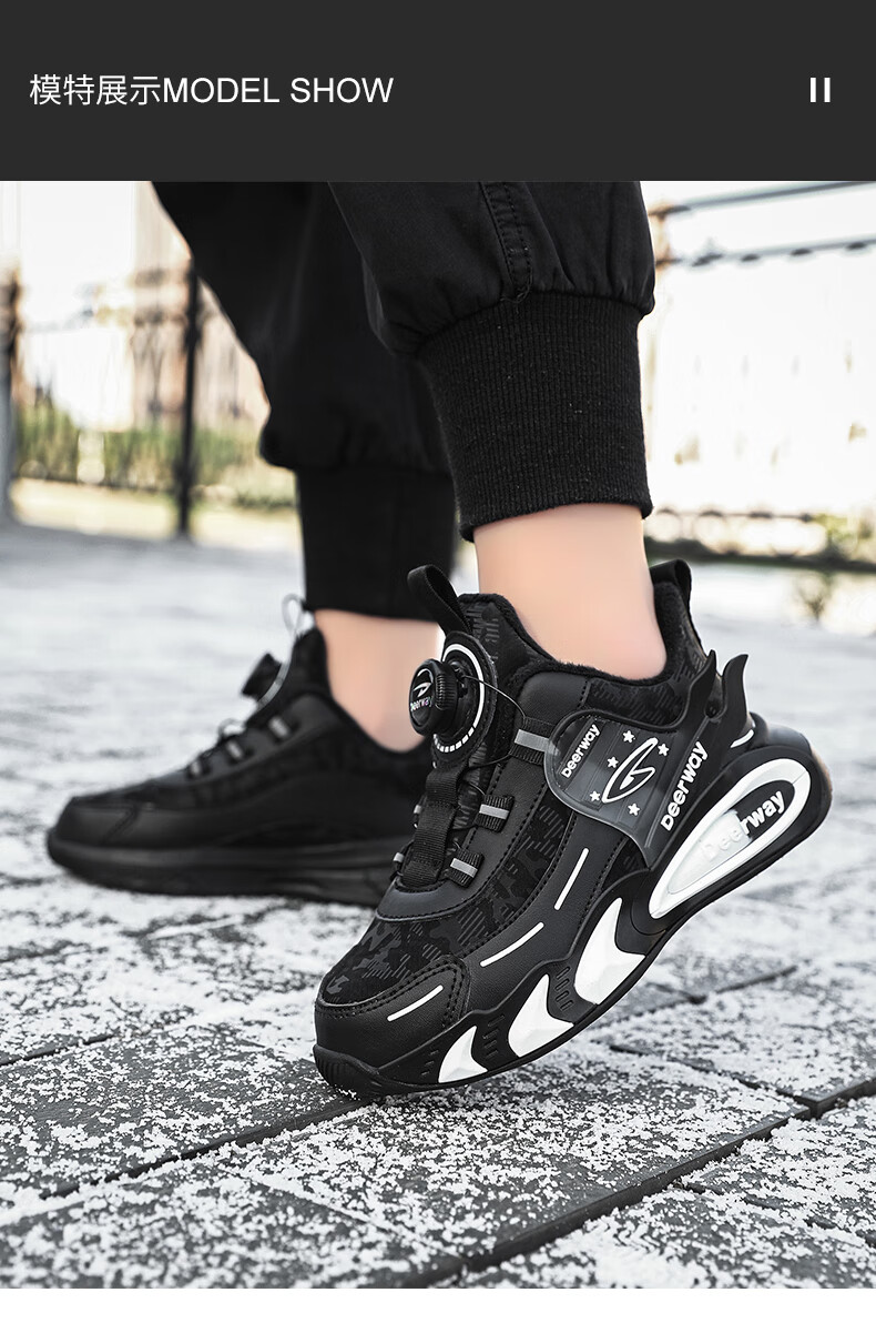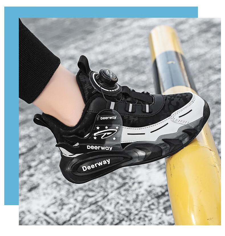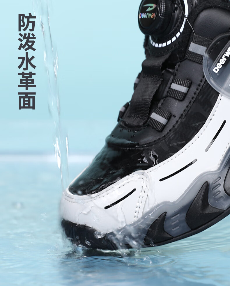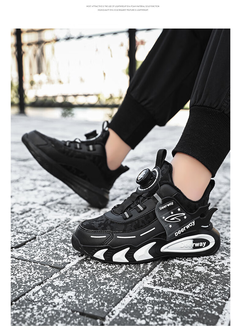 德尔惠儿童运动鞋男中大童2025年秋冬款革面防水防滑男生跑步鞋子二棉 D6657黑色【二棉】 36 内长23.0/脚22.0