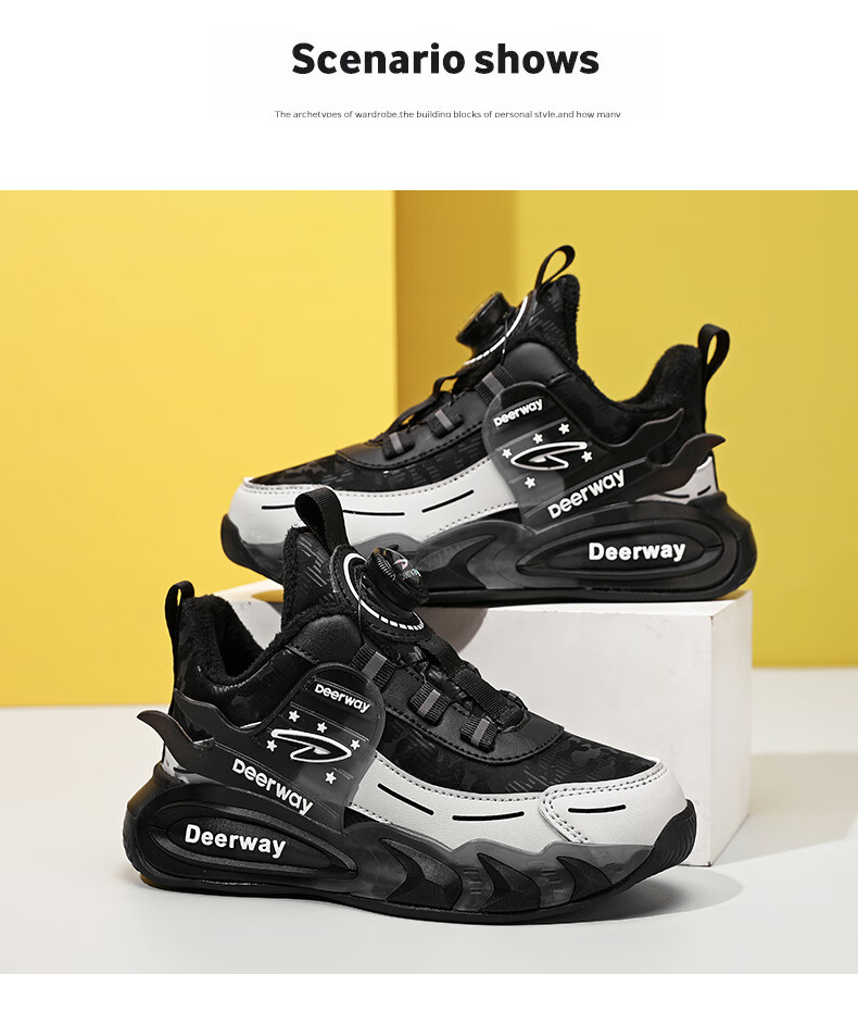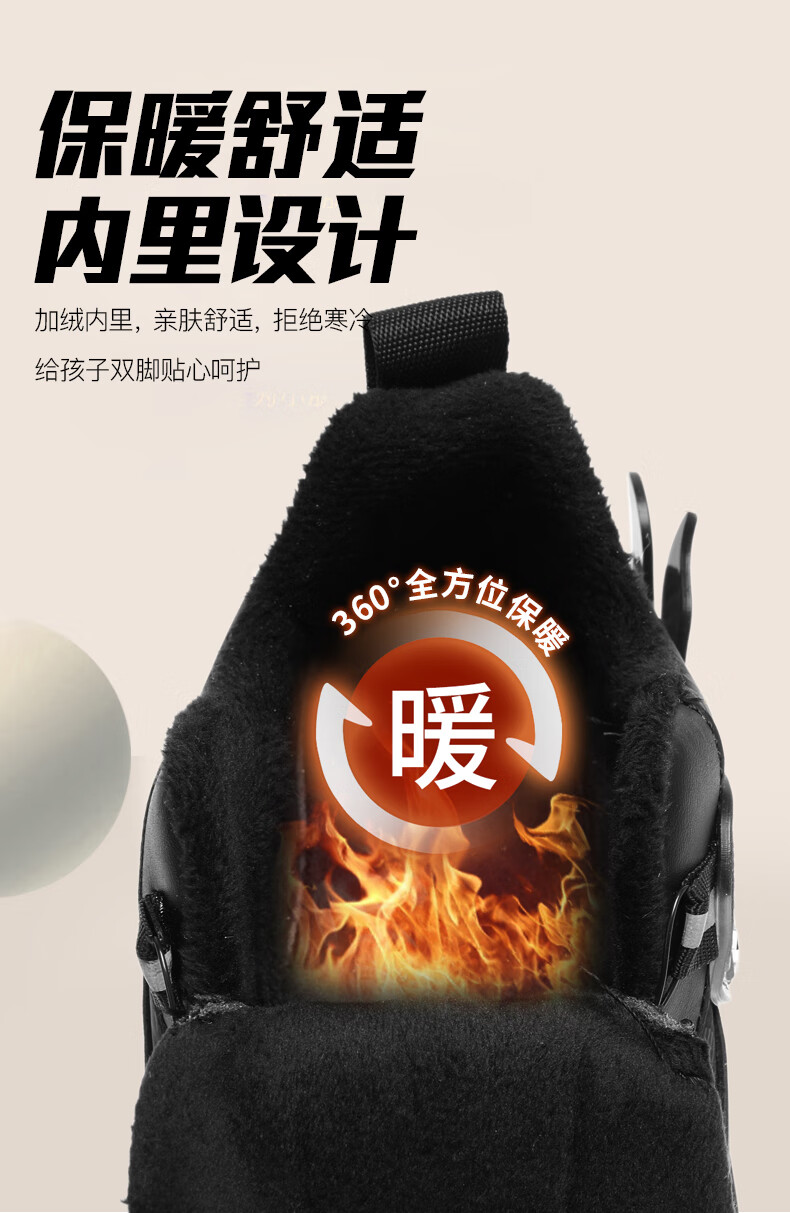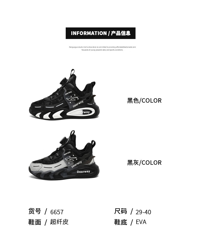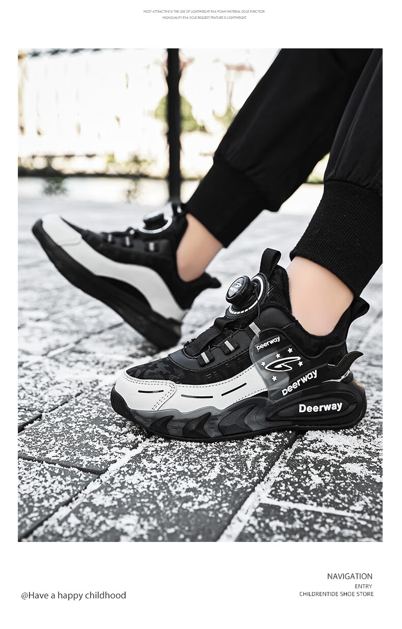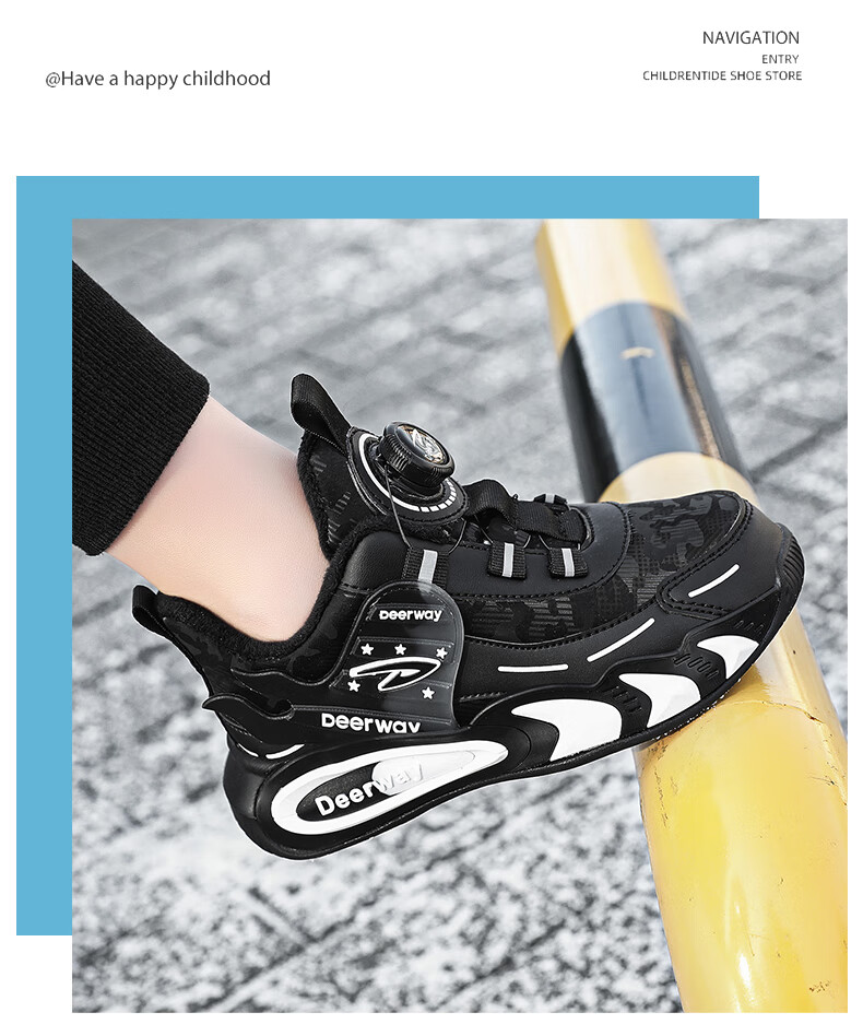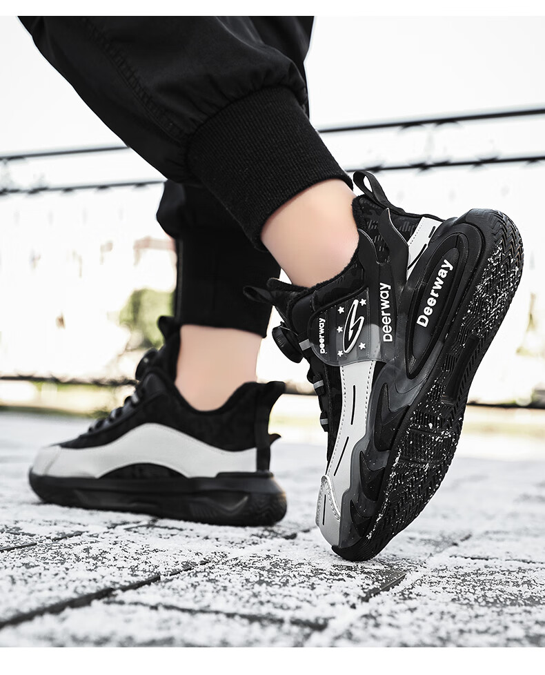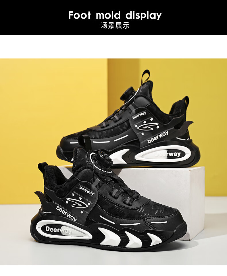德尔惠儿童运动鞋男中大童2025年秋冬款革面防水防滑男生跑步鞋子二棉 D6657黑色【二棉】 36 内长23.0/脚22.0