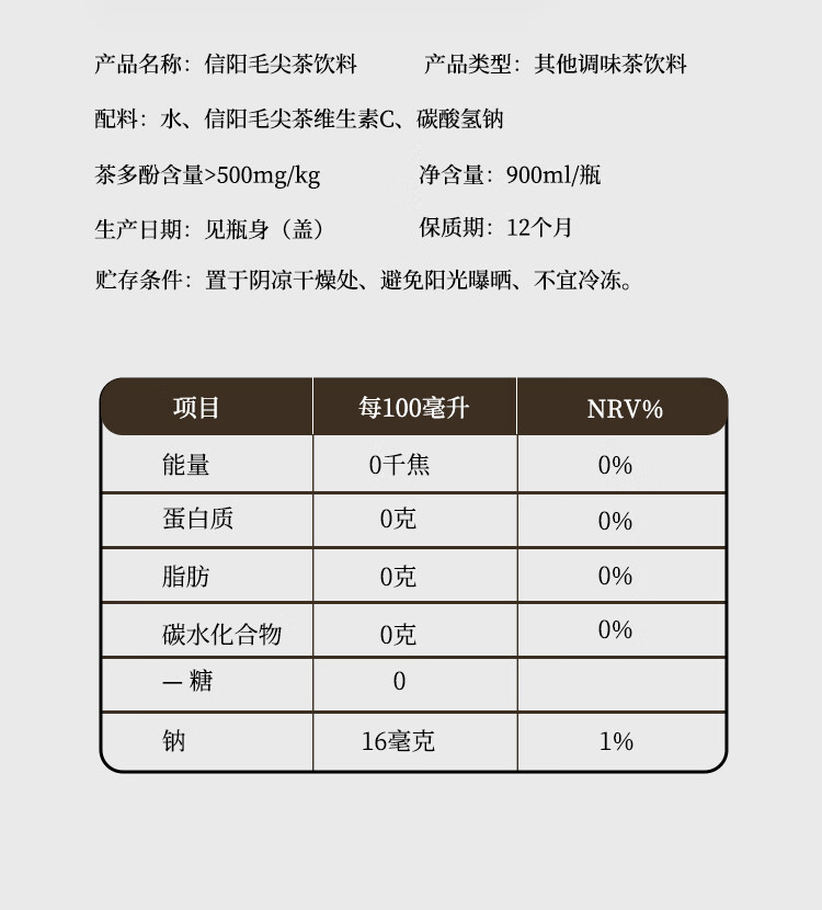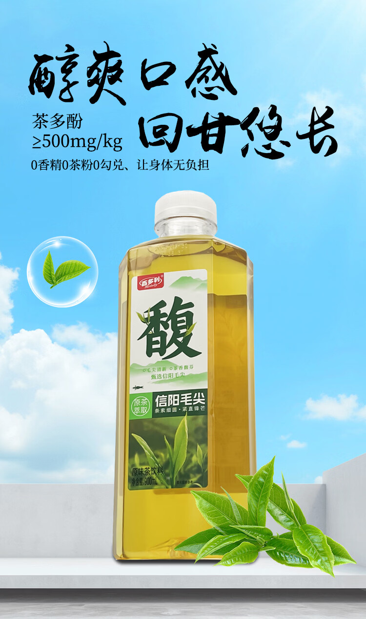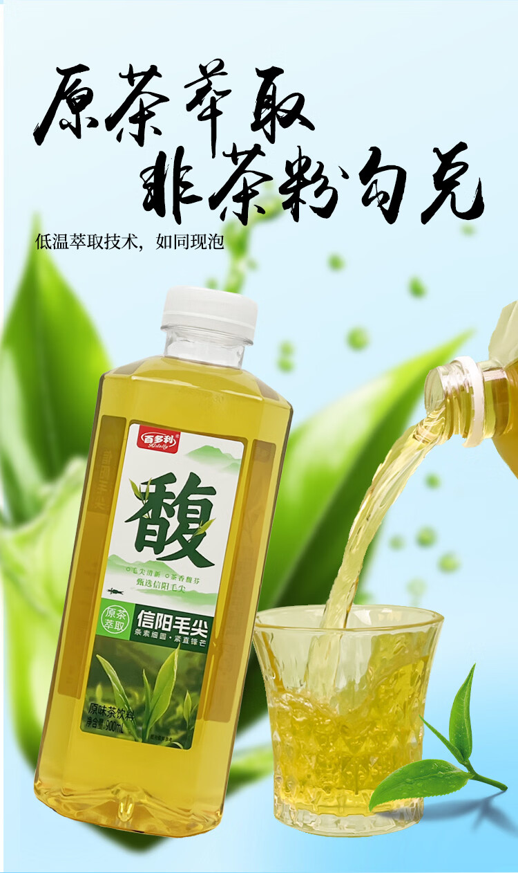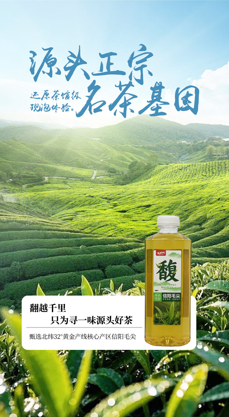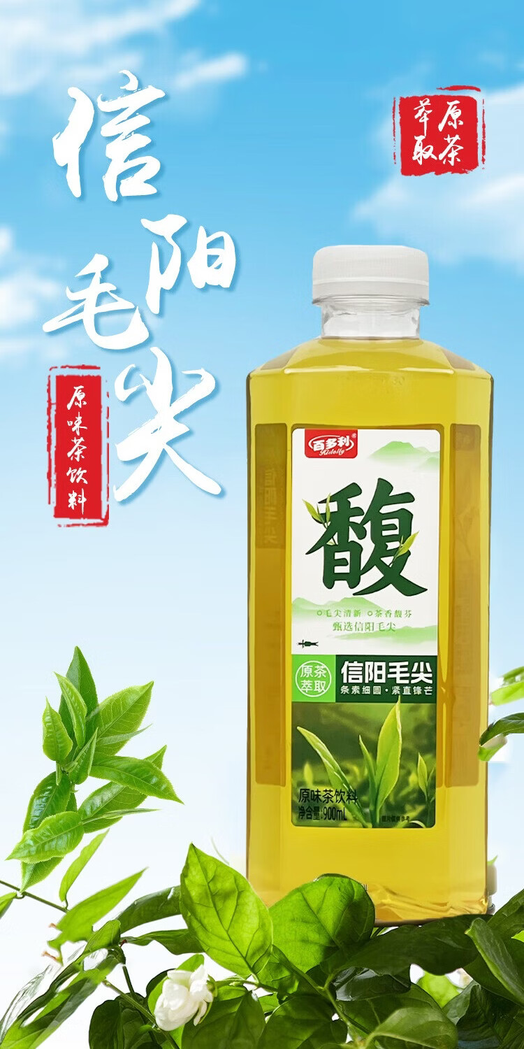百多利信阳毛尖茶饮料900ml*12瓶原茶萃取毛尖清新茶香馥芬原味茶饮料 信阳毛尖原味茶饮料900ml*12瓶