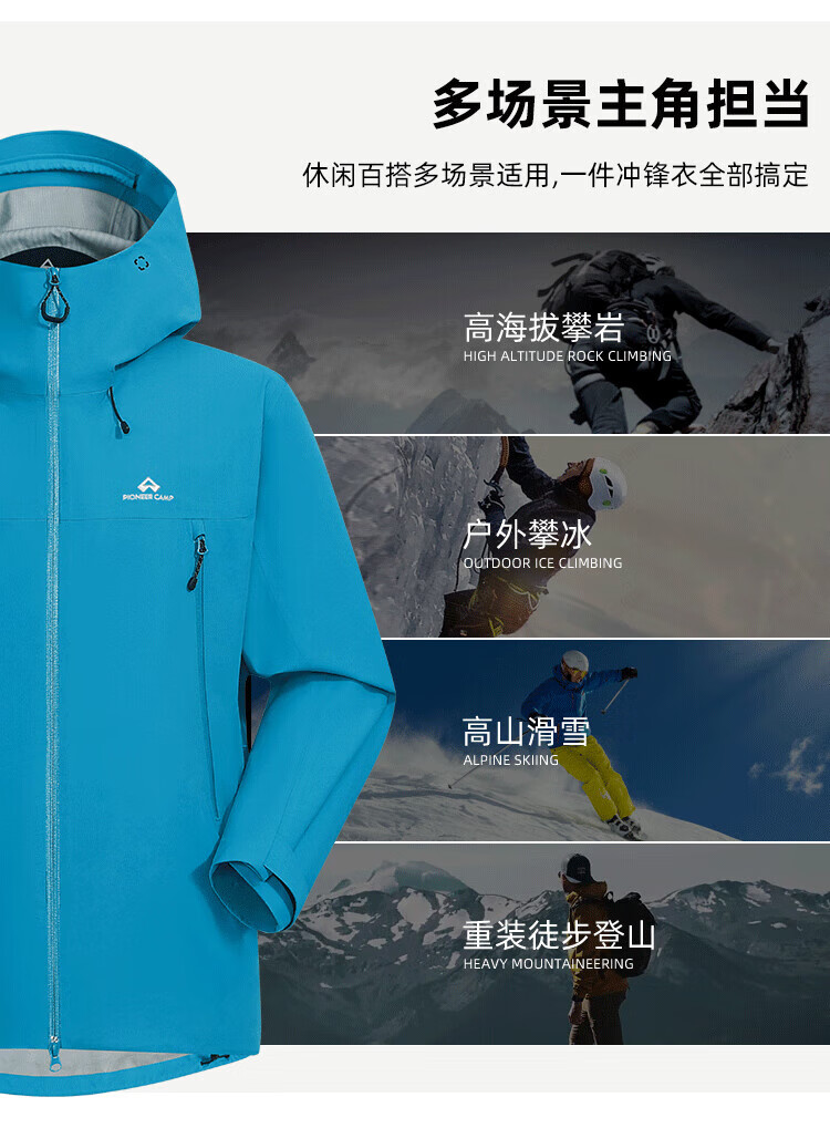 拓路者林更新同款小鹰冲锋衣硬壳东丽男户外旅行防水防风夹克外套登山服 松石蓝 顺丰包邮丨终身质保 M