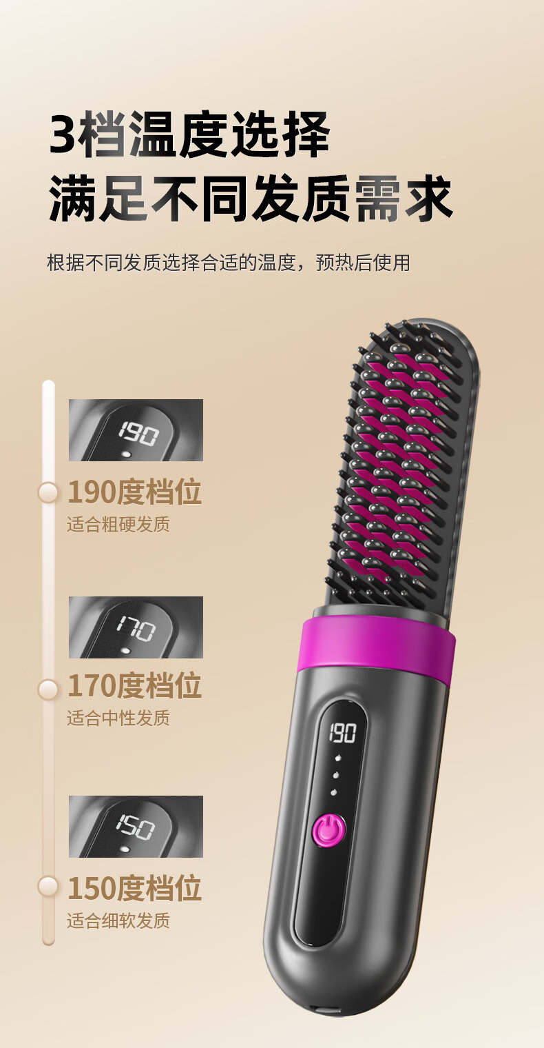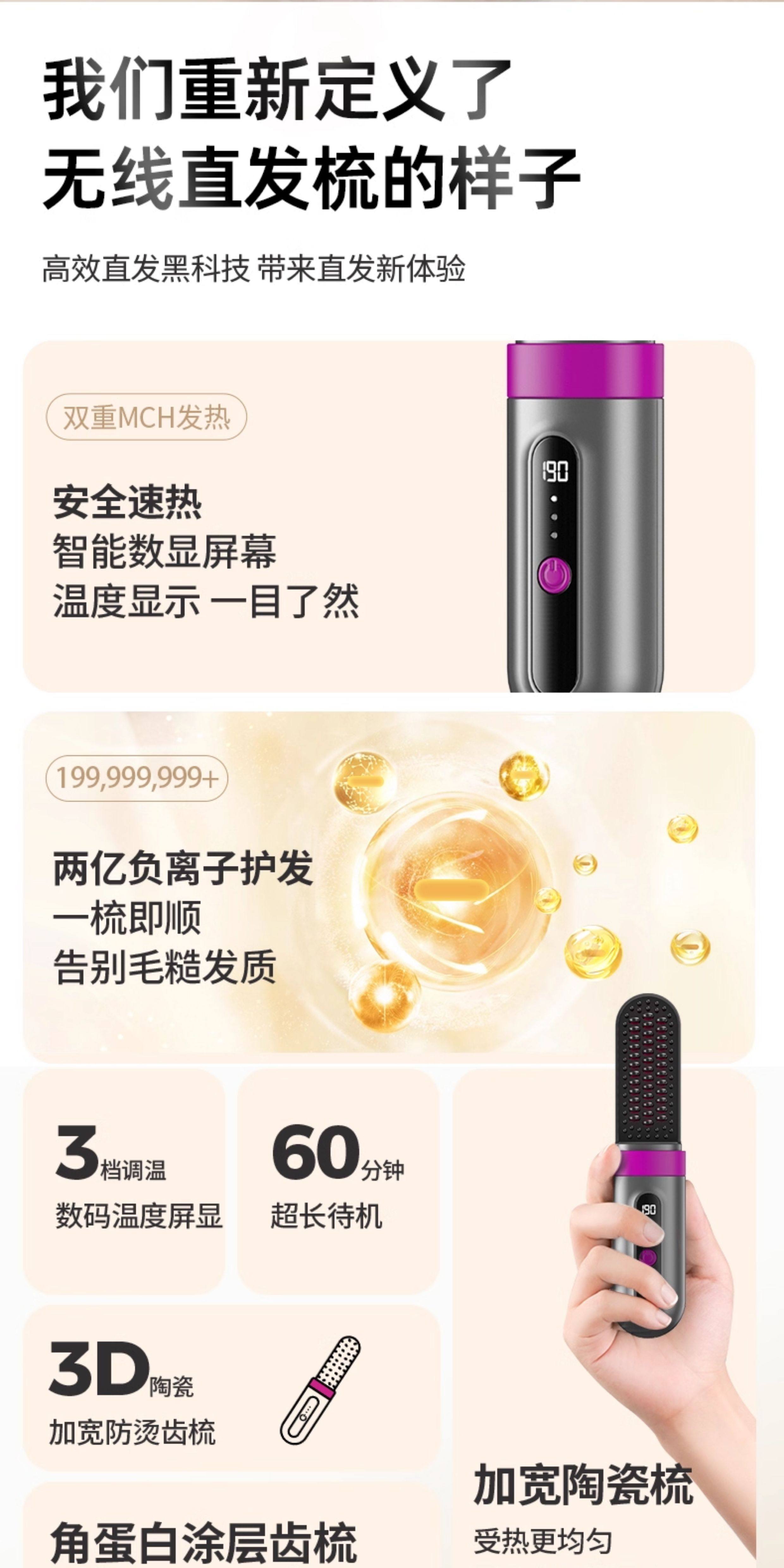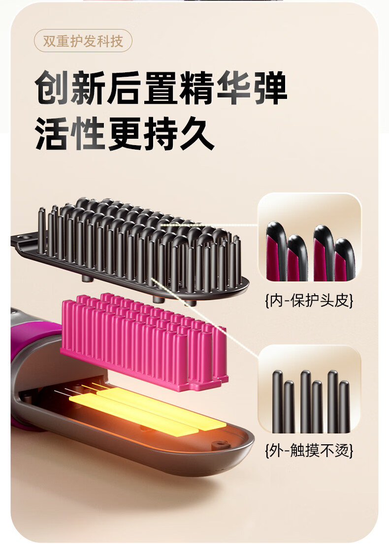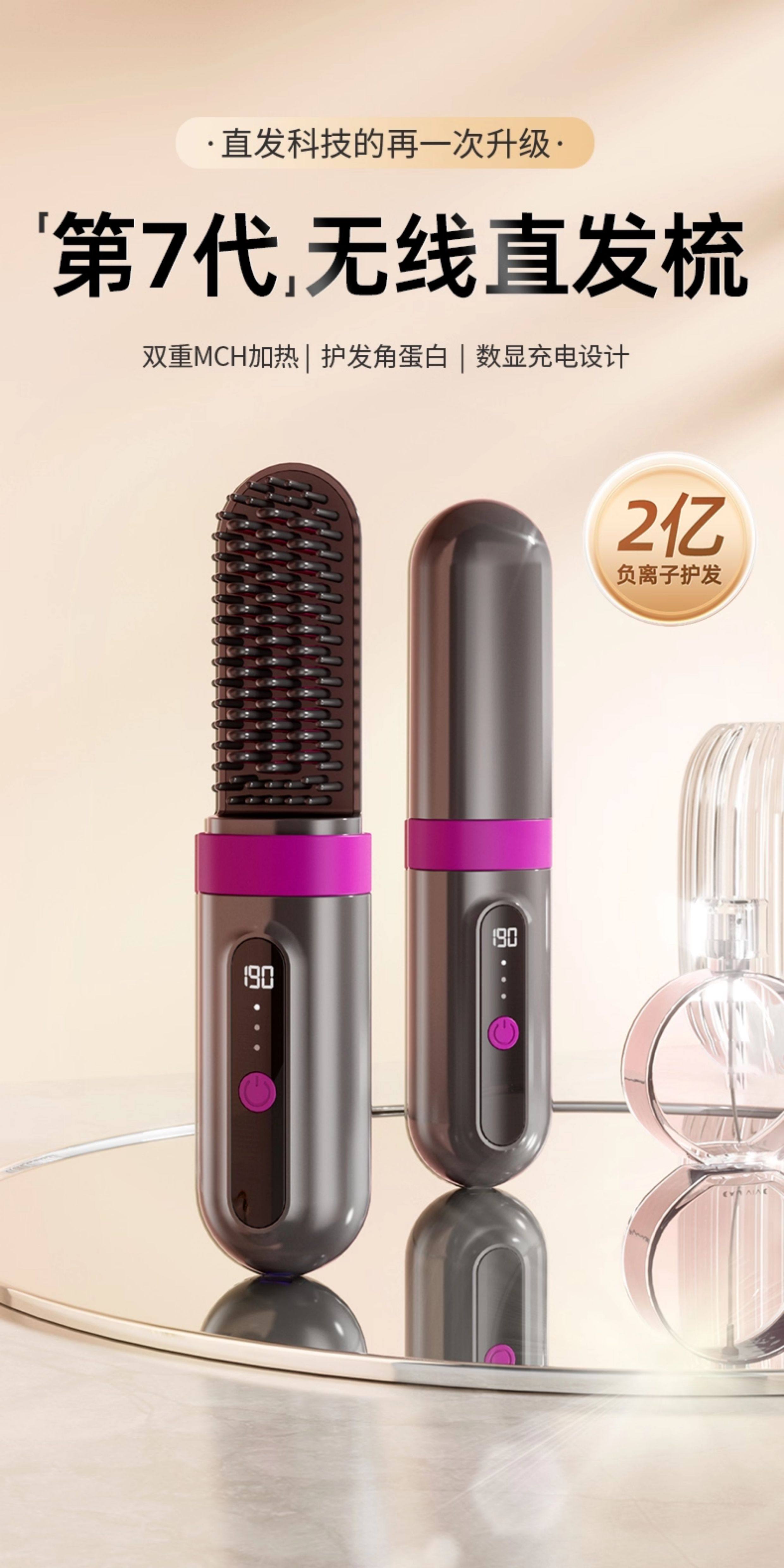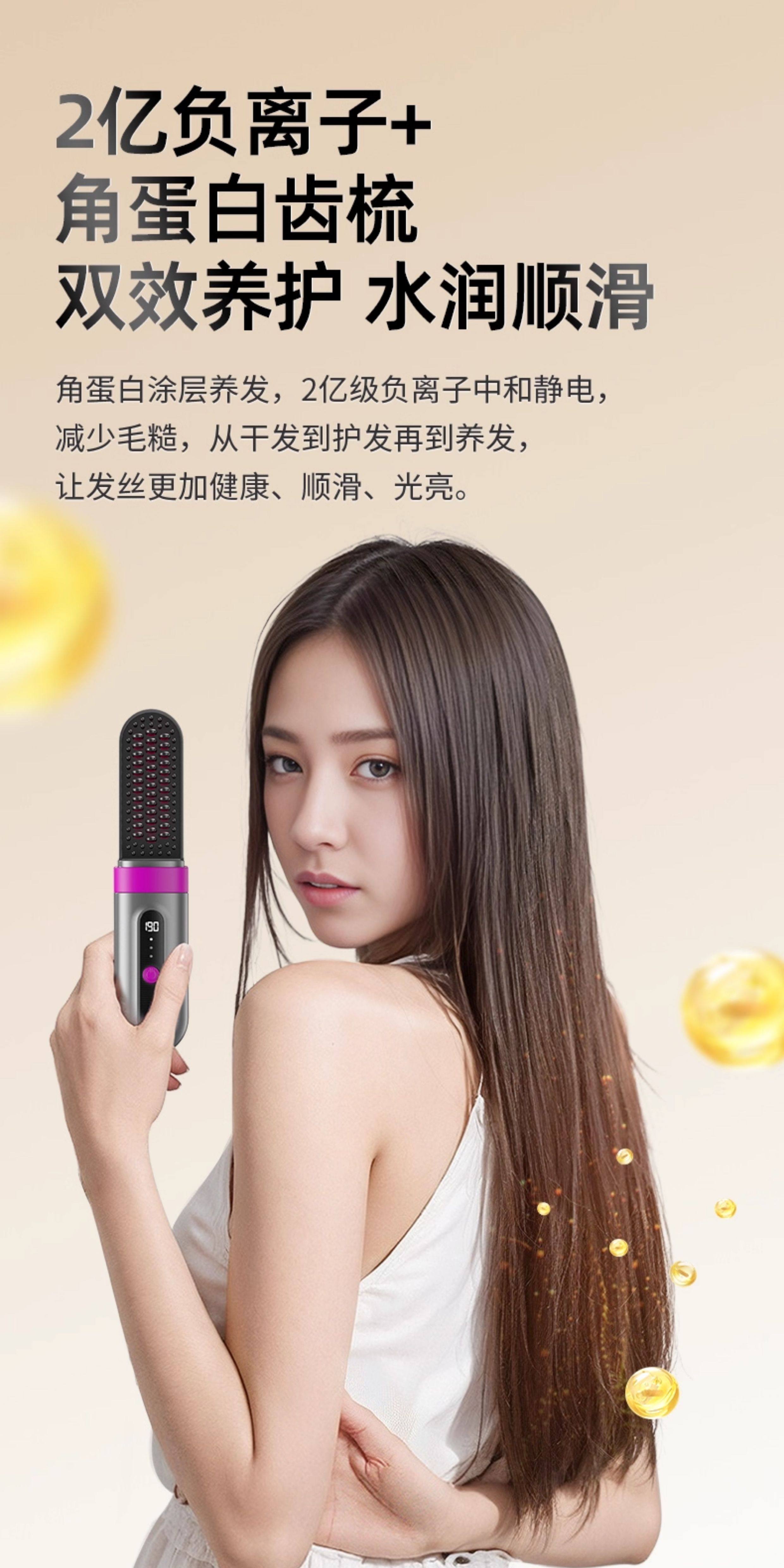 OVL【情人节礼物】直发梳无线卷发棒负离子不伤发卷发棒造型梳子速热便捷卷发梳美发工具 【旗舰款】3档负离子+防烫保护壳