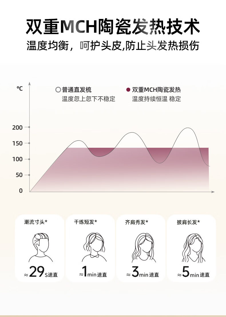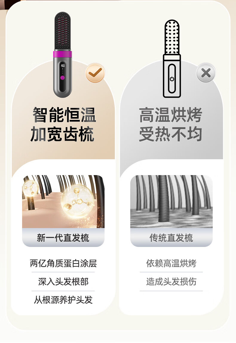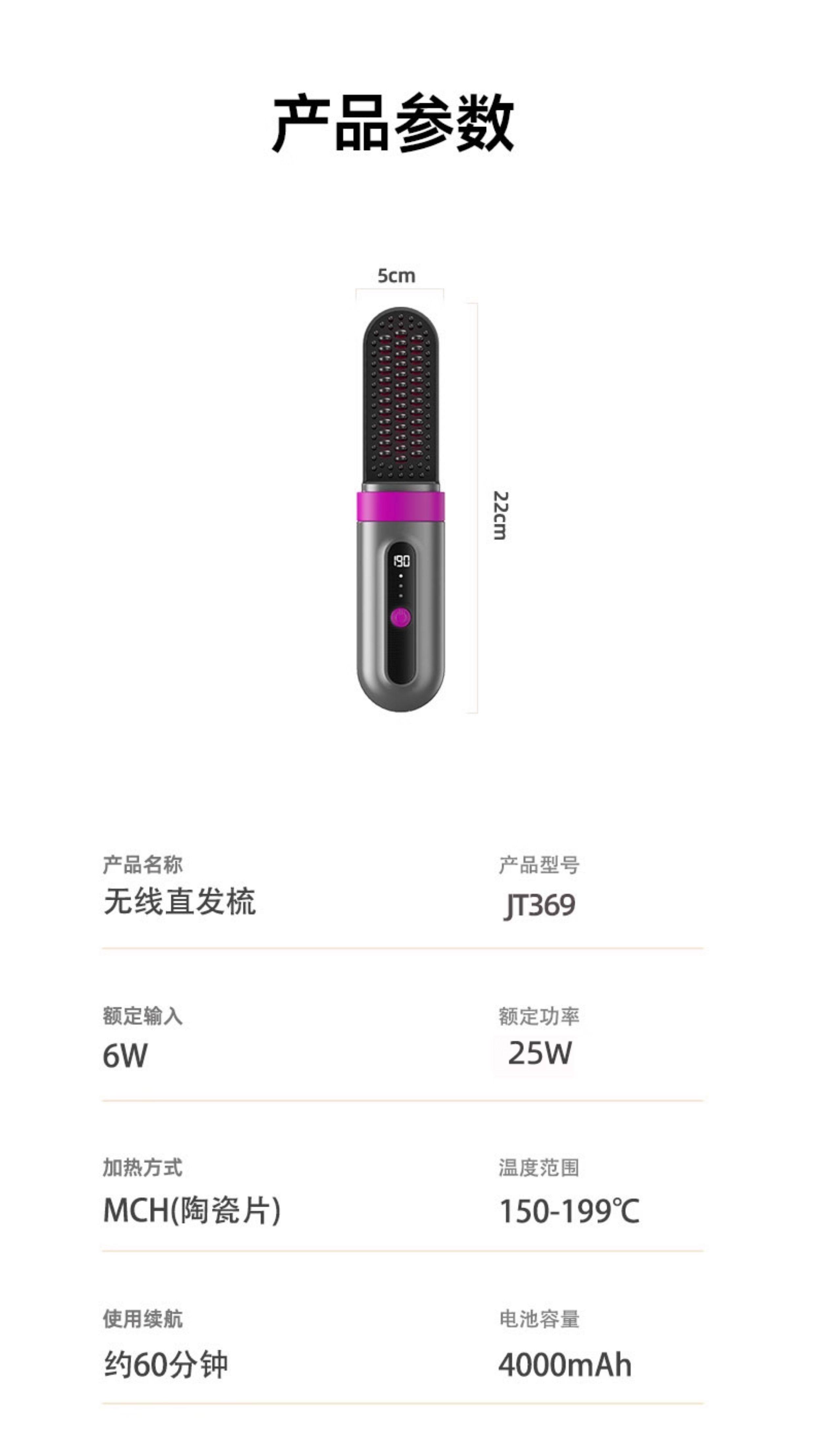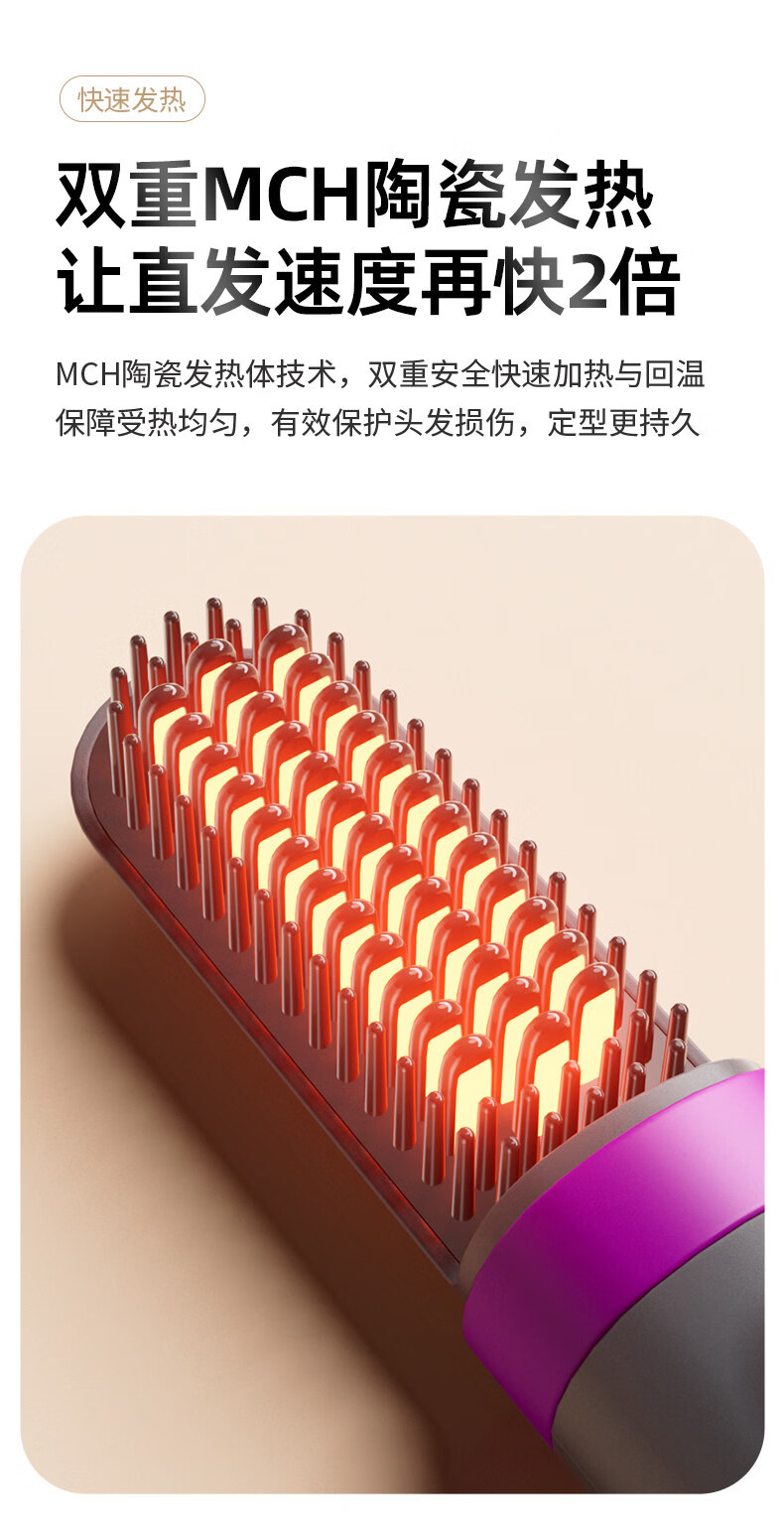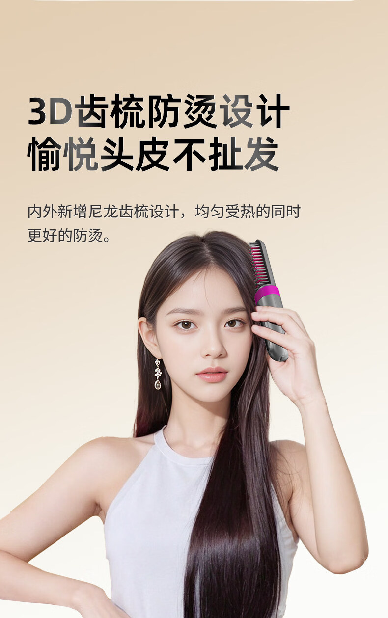 OVL【情人节礼物】直发梳无线卷发棒负离子不伤发卷发棒造型梳子速热便捷卷发梳美发工具 【旗舰款】3档负离子+防烫保护壳