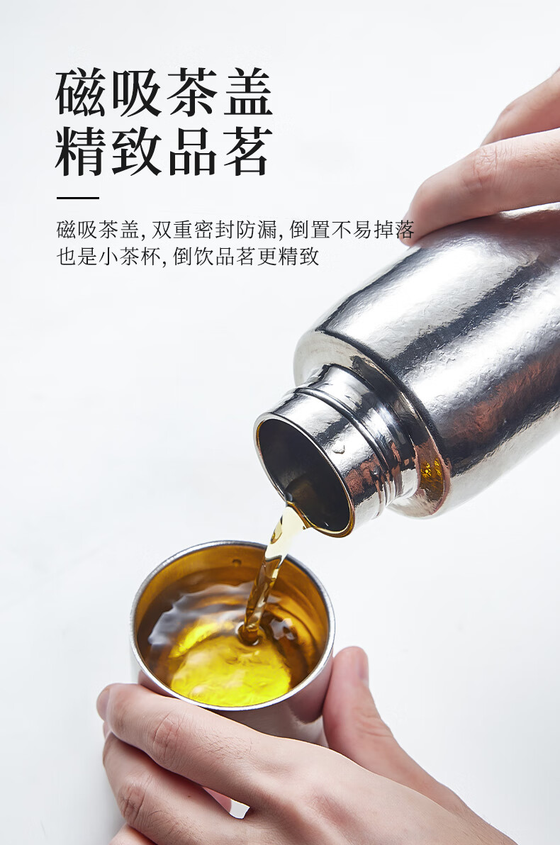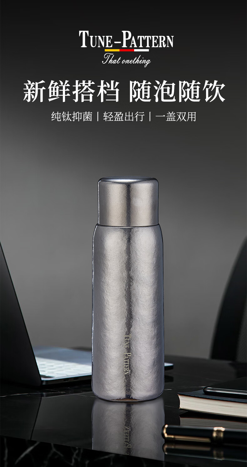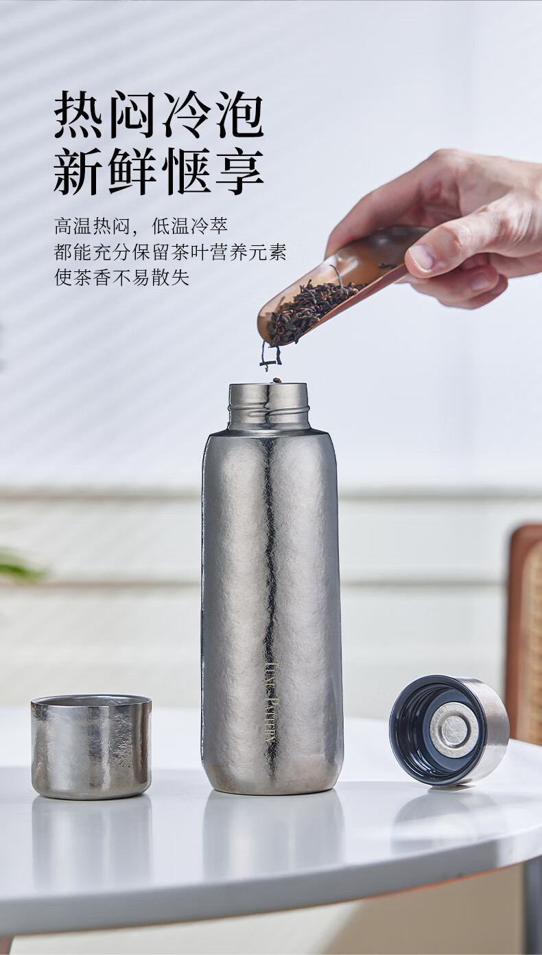 TUNE-PATTERN汀派纯钛焖泡杯保温杯双层高档磁吸钛杯茶水分离大容量560ml礼盒 炫目银