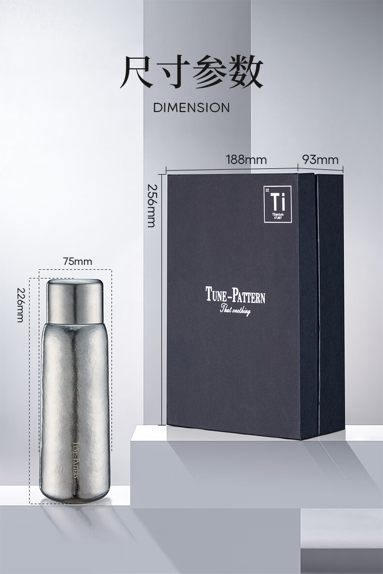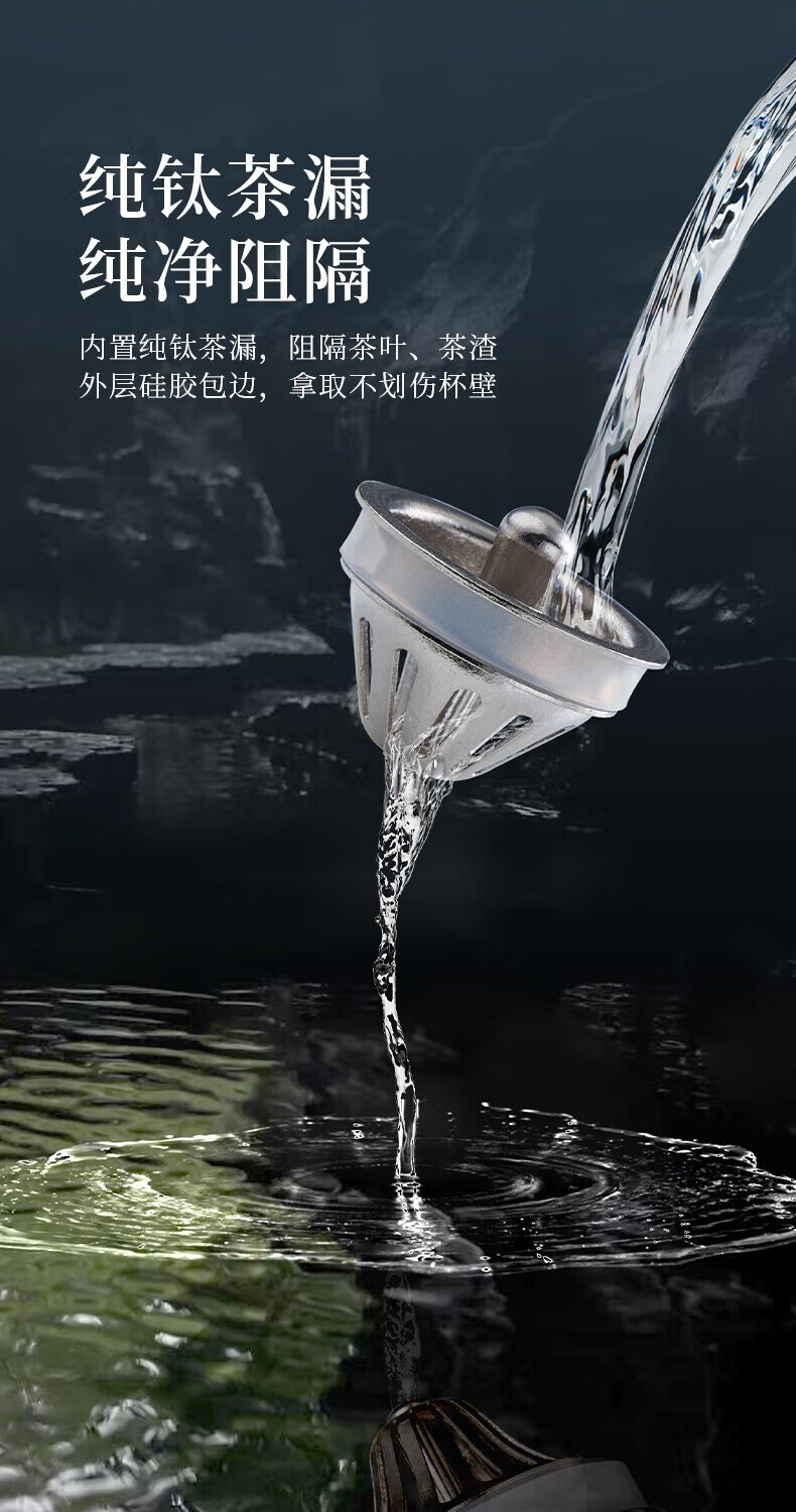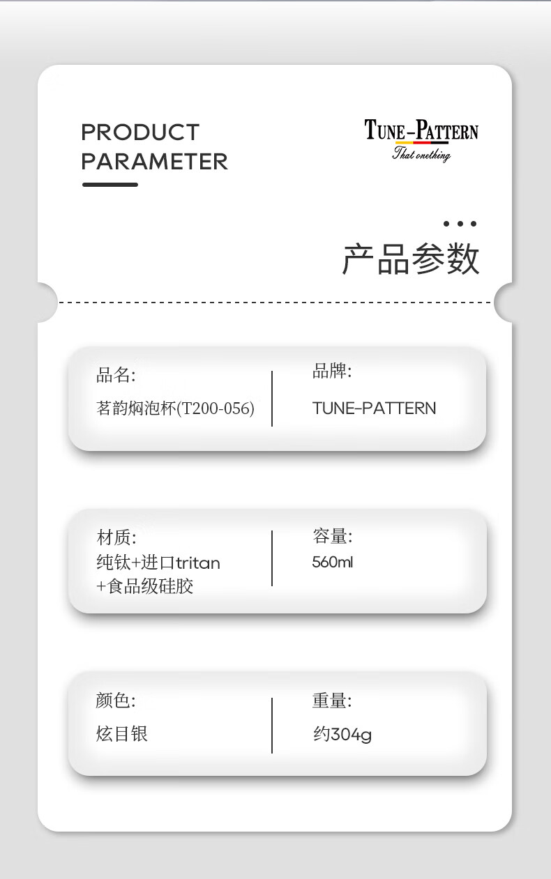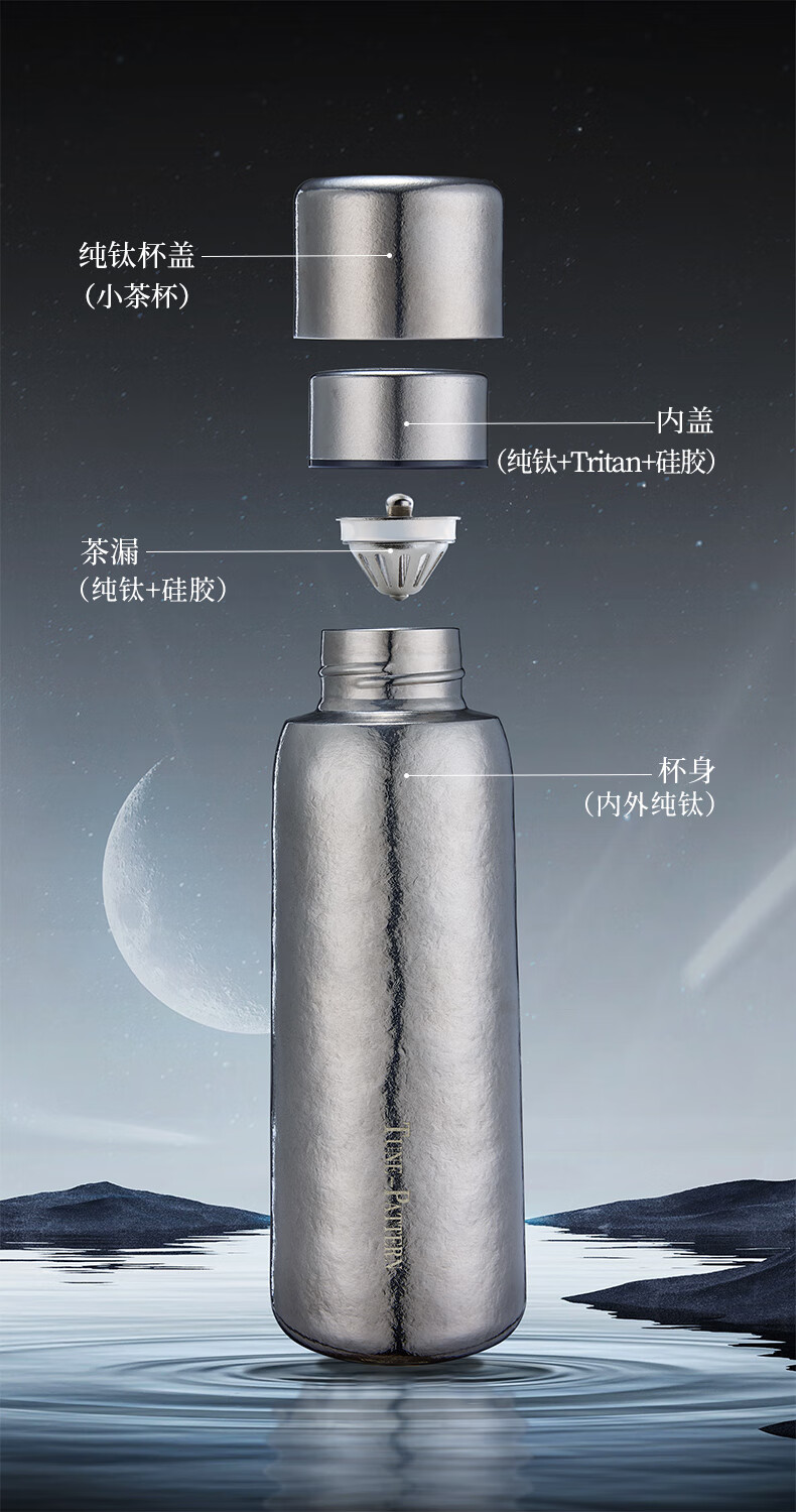 TUNE-PATTERN汀派纯钛焖泡杯保温杯双层高档磁吸钛杯茶水分离大容量560ml礼盒 炫目银