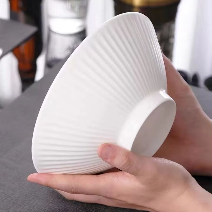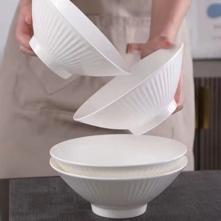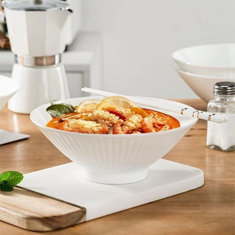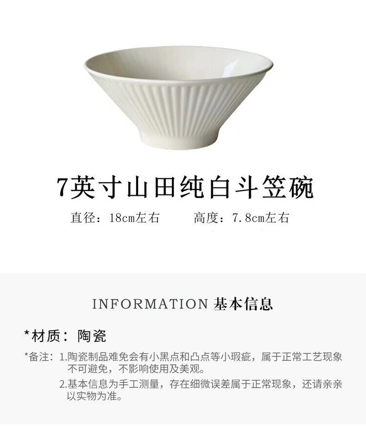咏夏7英寸日式斗笠碗拉面碗简约纯白陶瓷大碗汤面碗泡面沙拉碗釉下彩 7英寸白色斗笠拉面碗1只