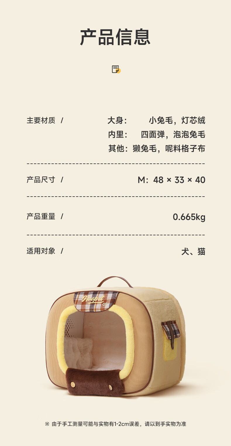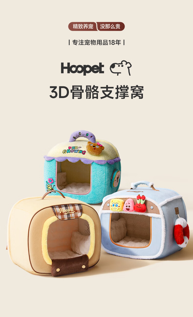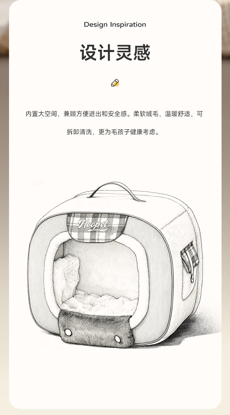 华元宠具(hoopet)不塌房猫窝冬季保暖封闭式猫屋小型犬狗窝可拆洗冬天猫帐篷安全感