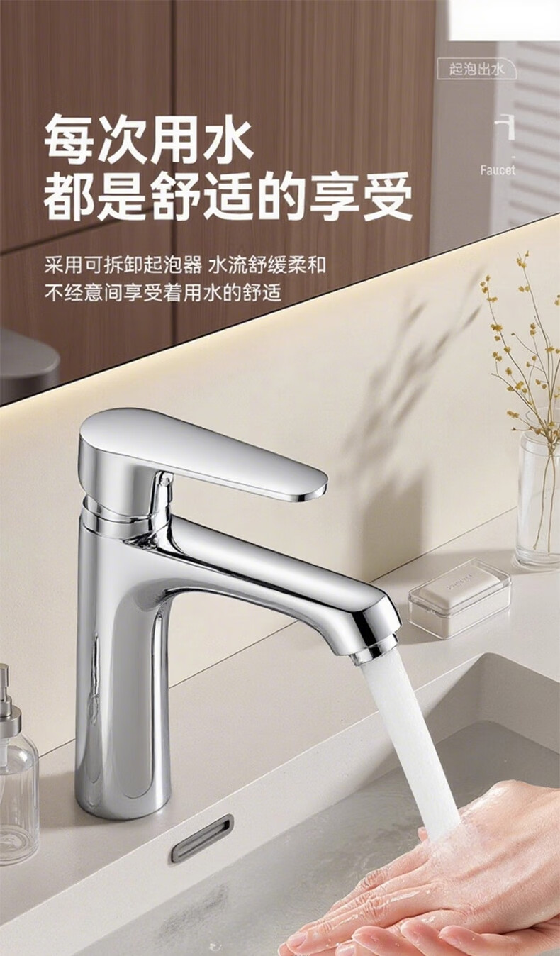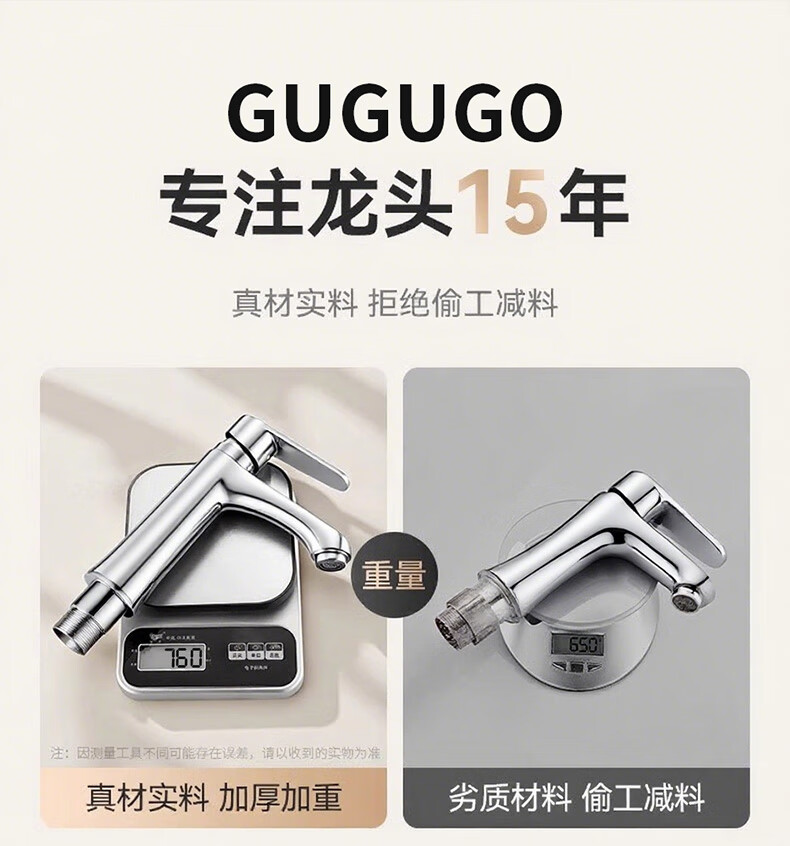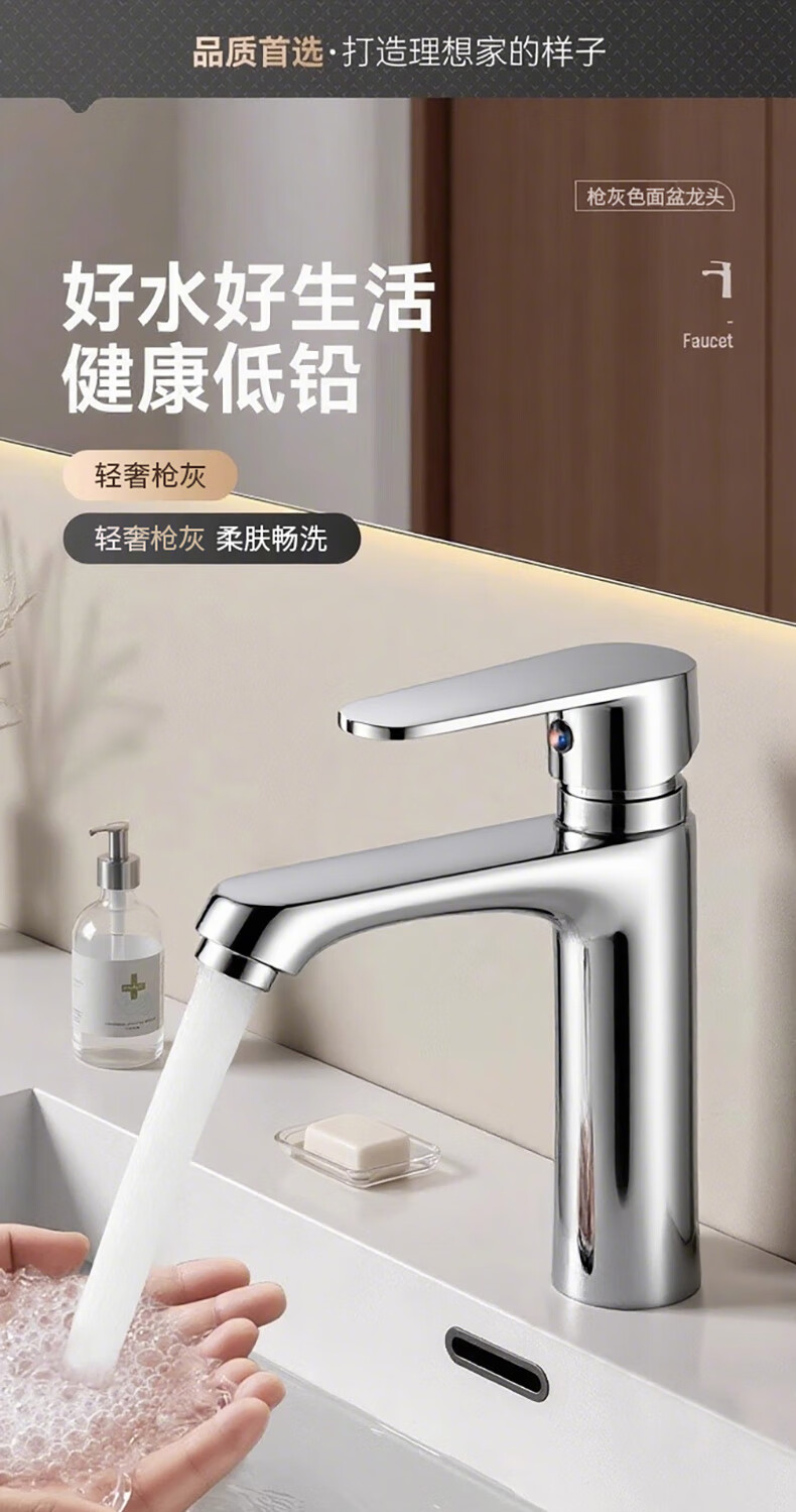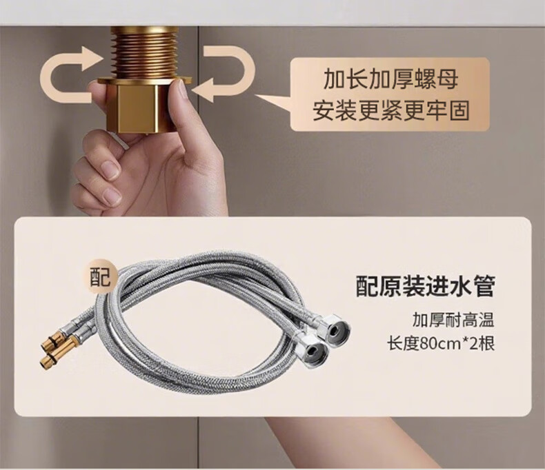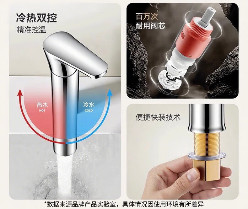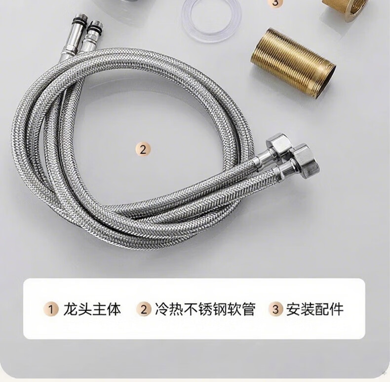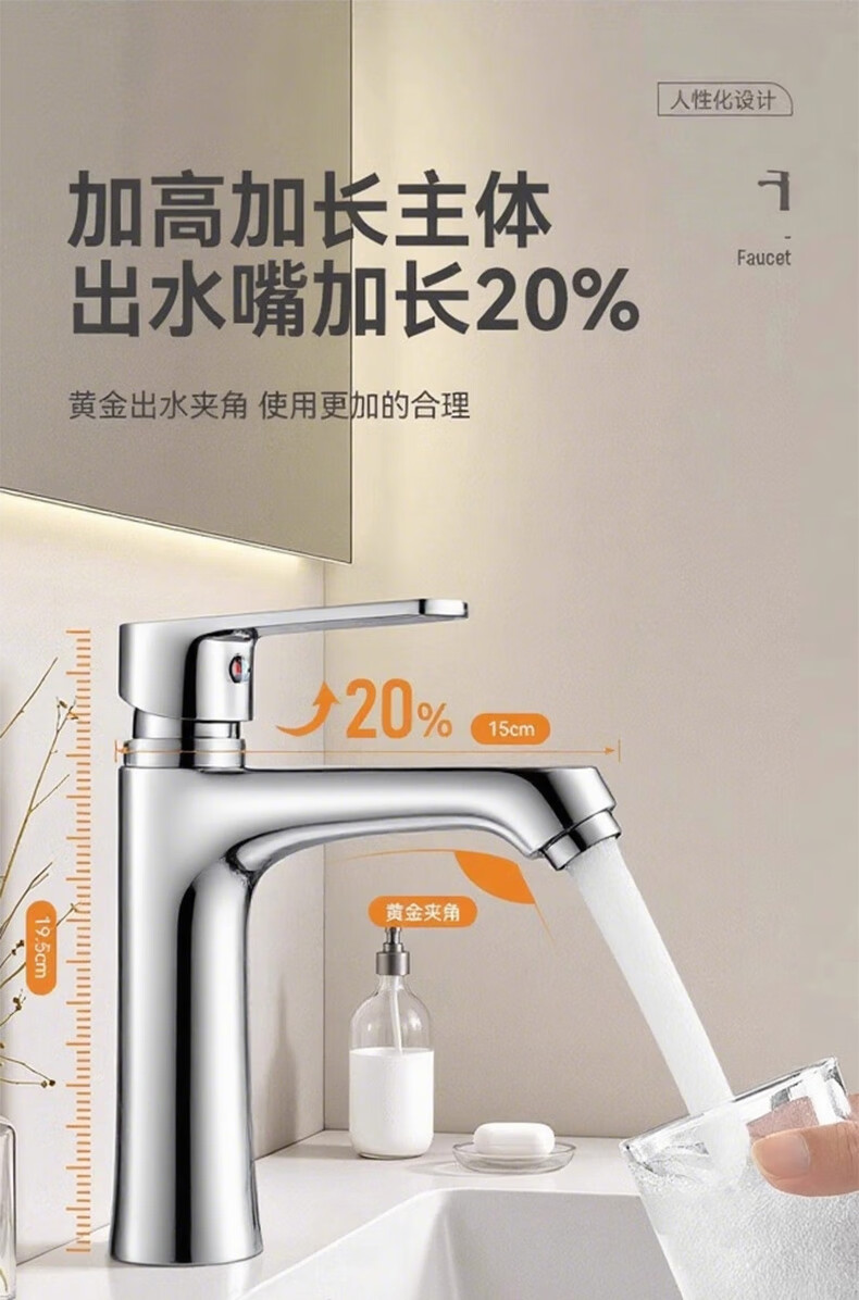 GuGuGo【德国】面盆水龙头洗手盆卫生间洗脸盆台盆冷热水器二合一水龙头 洗脸盆水龙头【加厚防锈】 加长出水平面丨送80cm冷热管*2