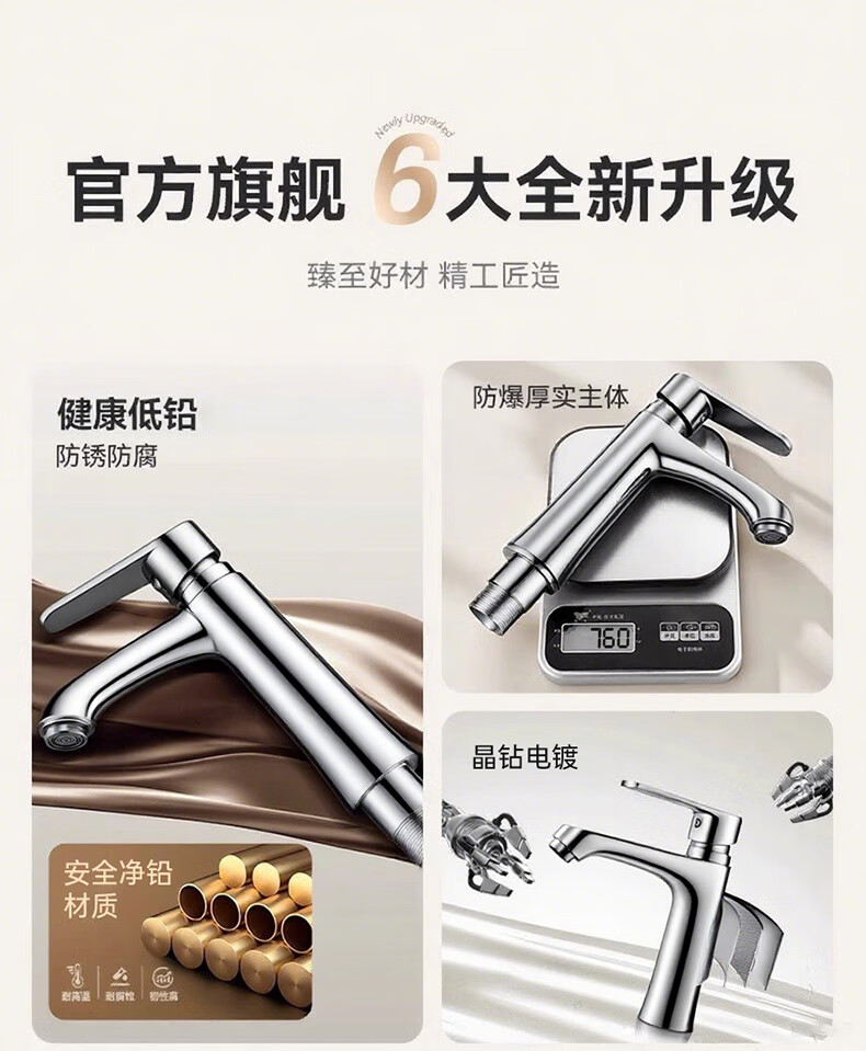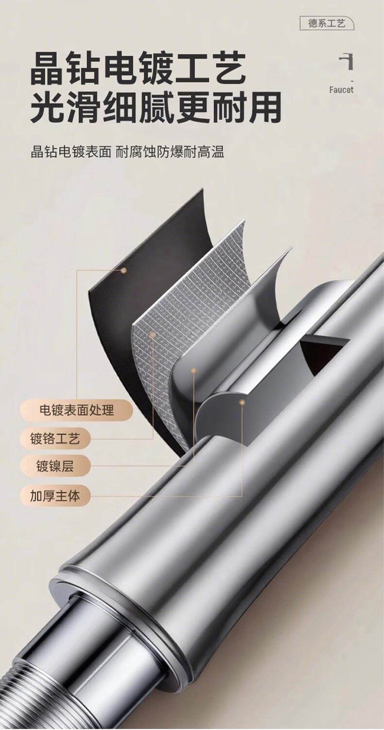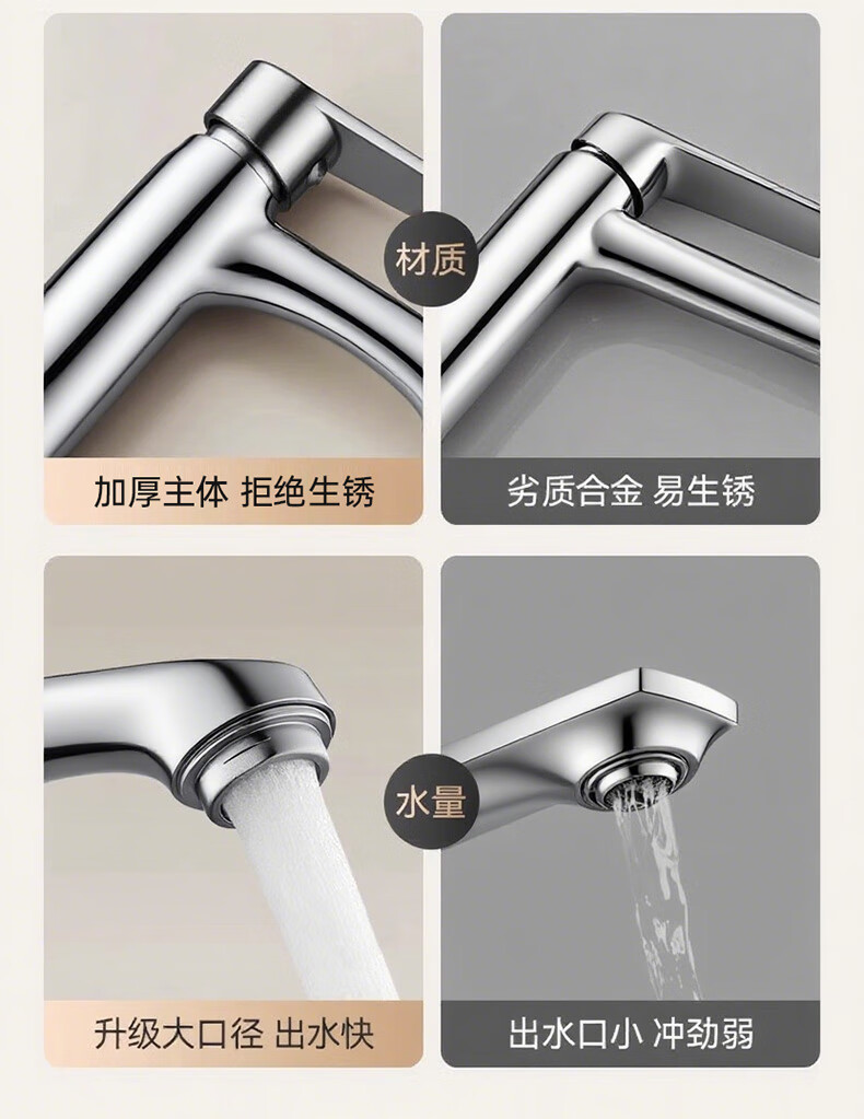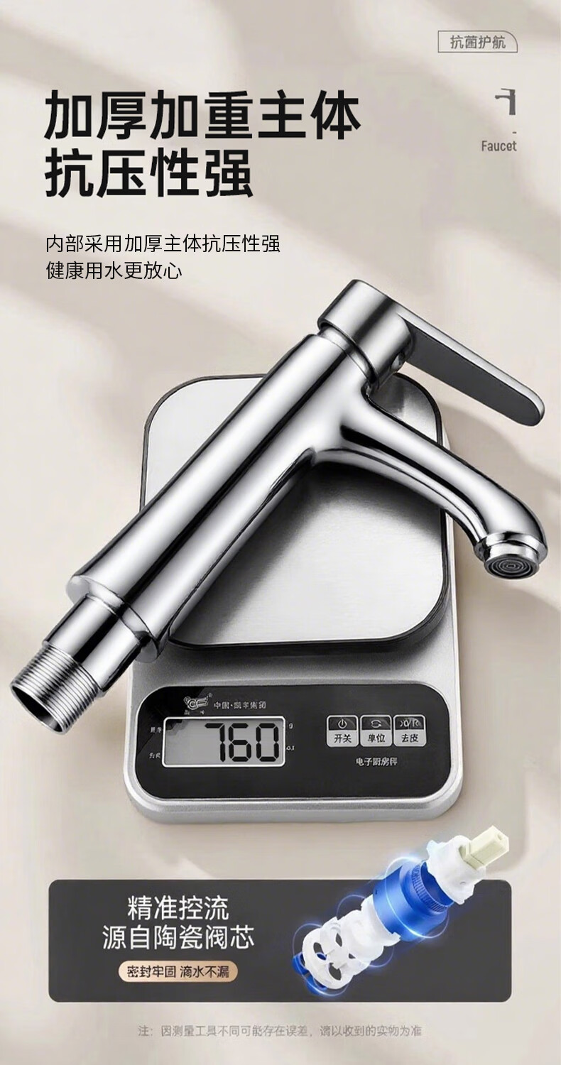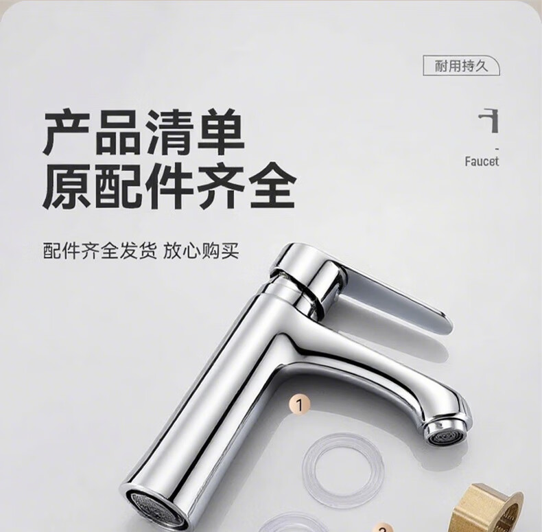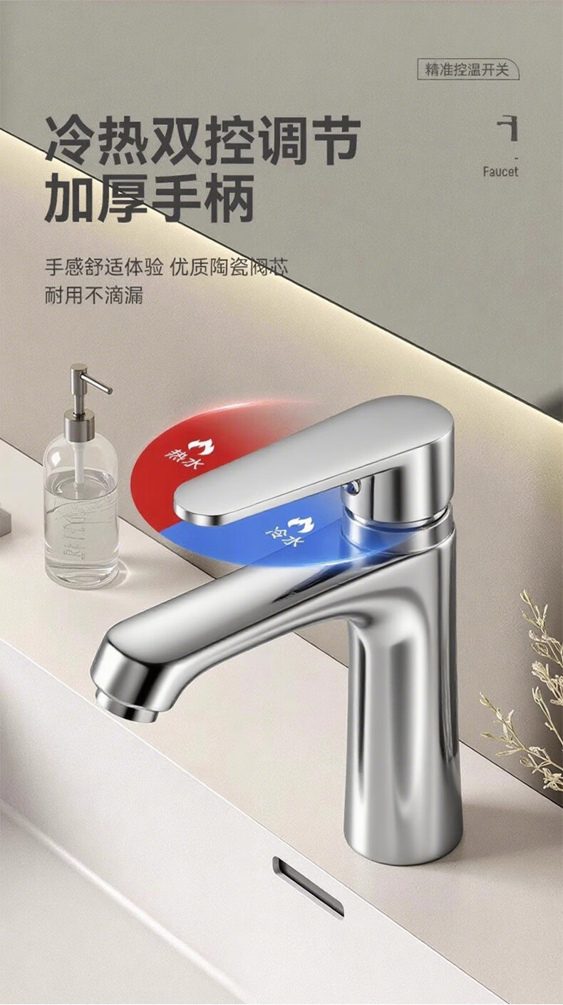 GuGuGo【德国】面盆水龙头洗手盆卫生间洗脸盆台盆冷热水器二合一水龙头 洗脸盆水龙头【加厚防锈】 加长出水平面丨送80cm冷热管*2