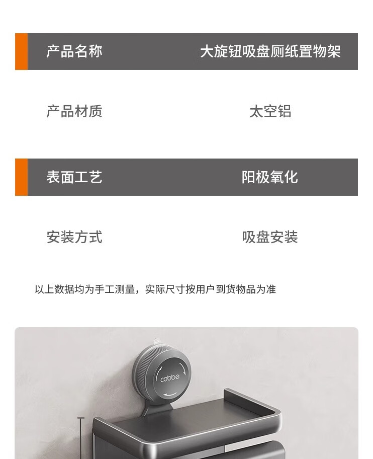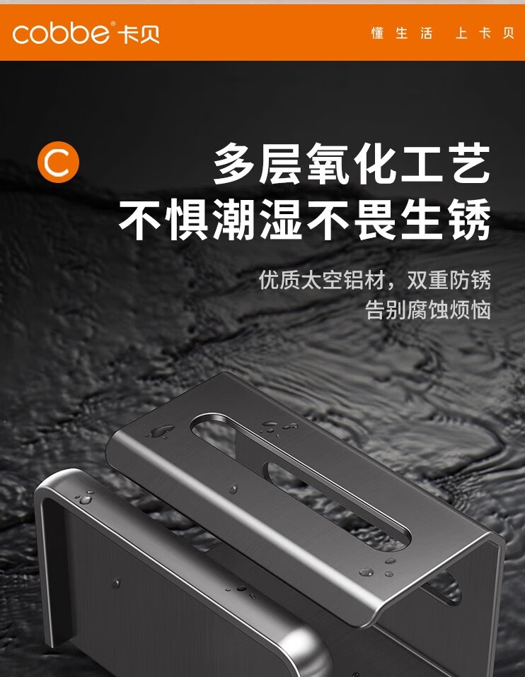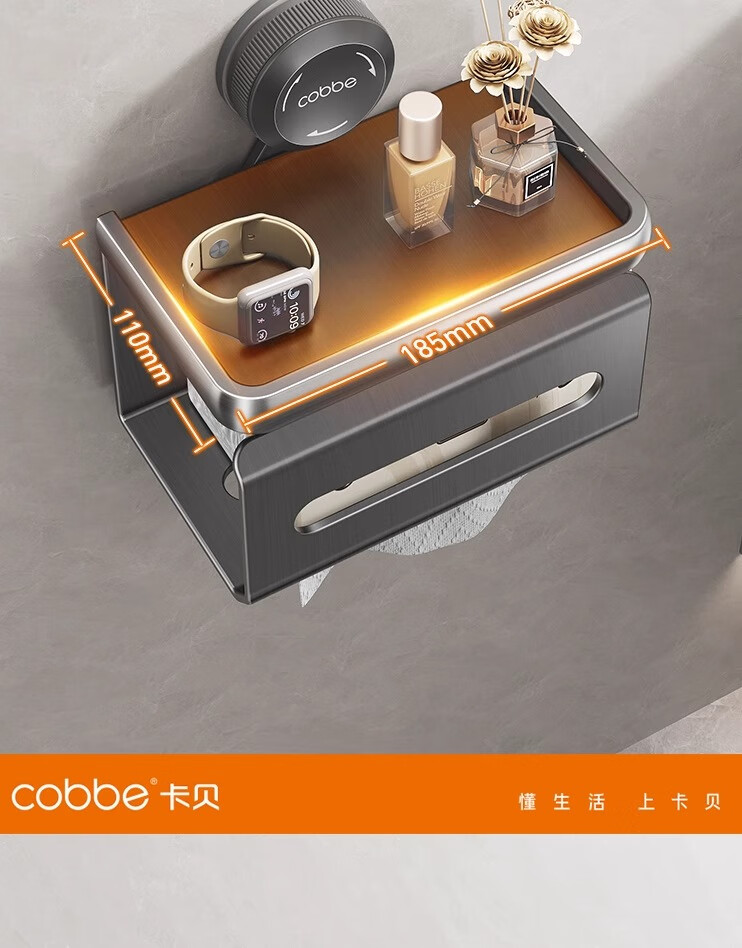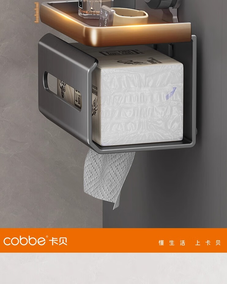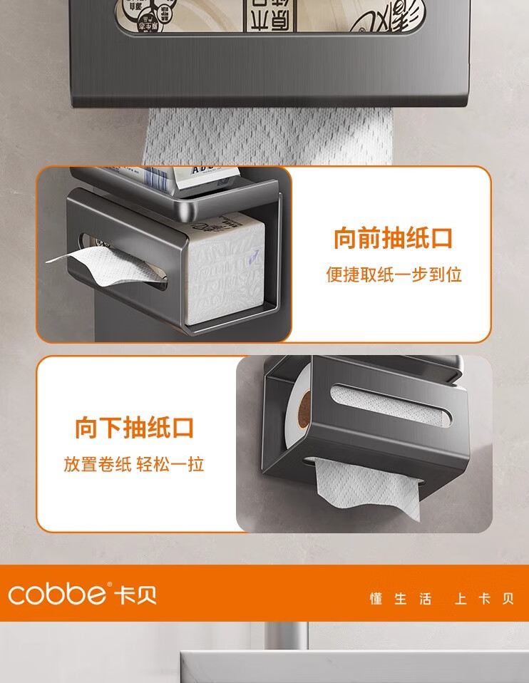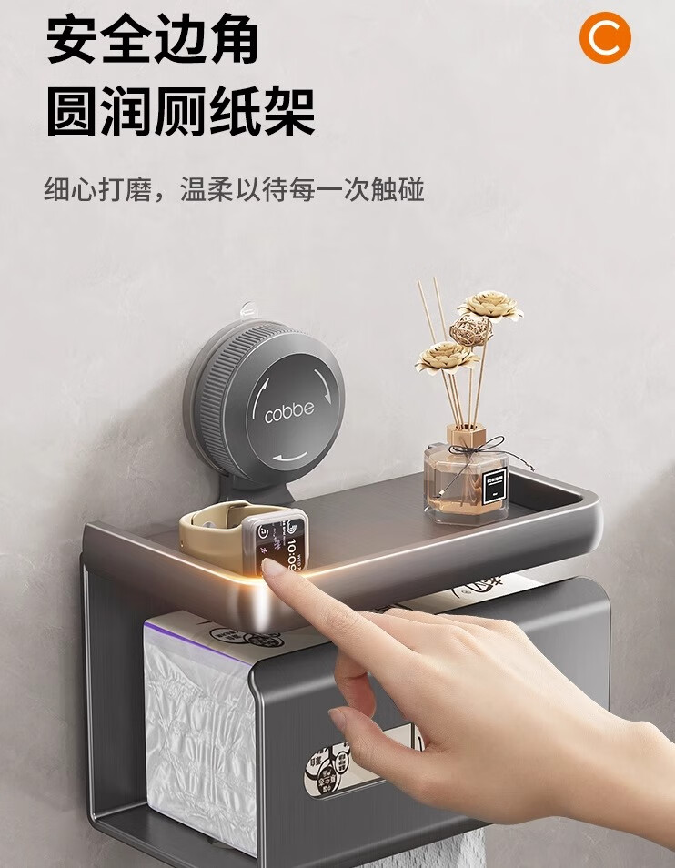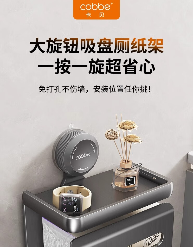 卡贝(cobbe)卫生间吸盘厕纸盒免打孔洗手间纸巾架厕所卷纸筒架壁挂置物架 A1-枪灰吸盘置物厕纸架