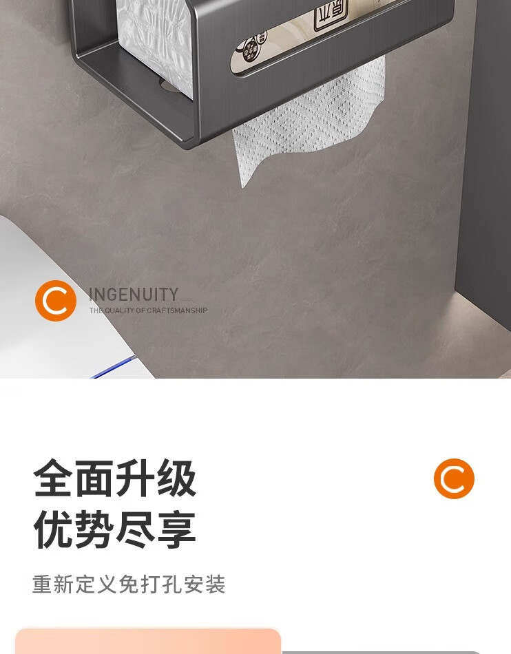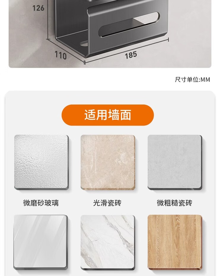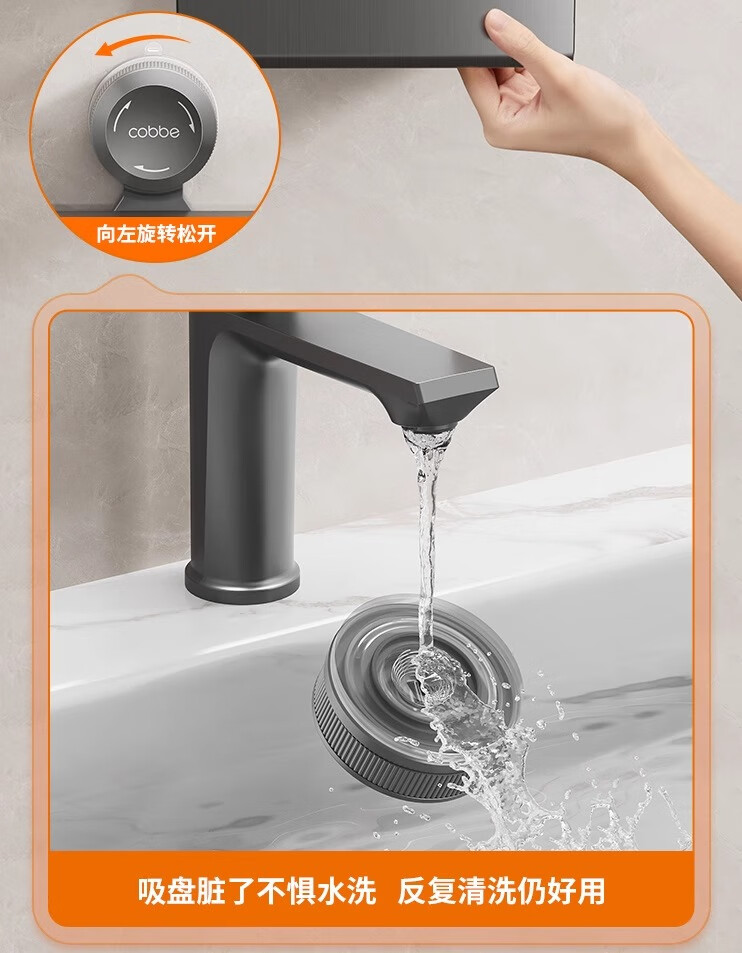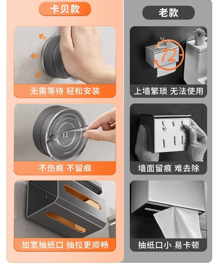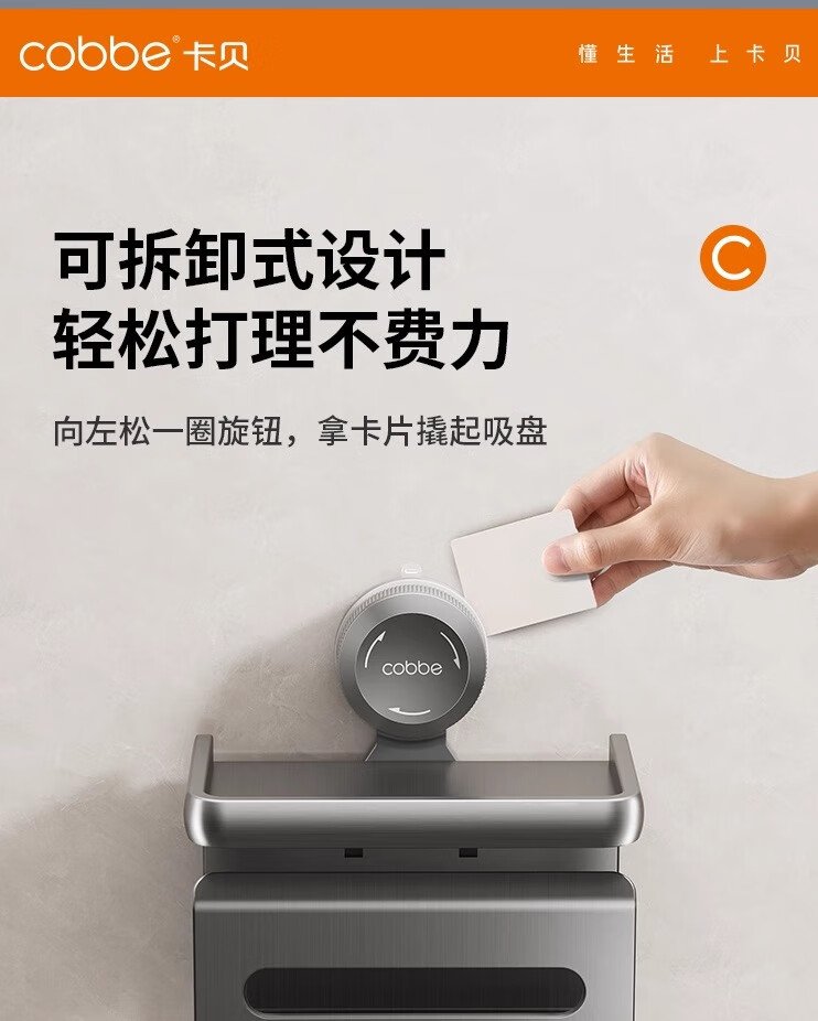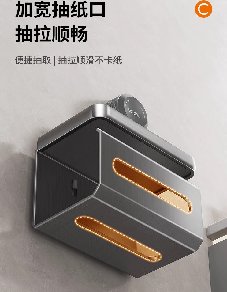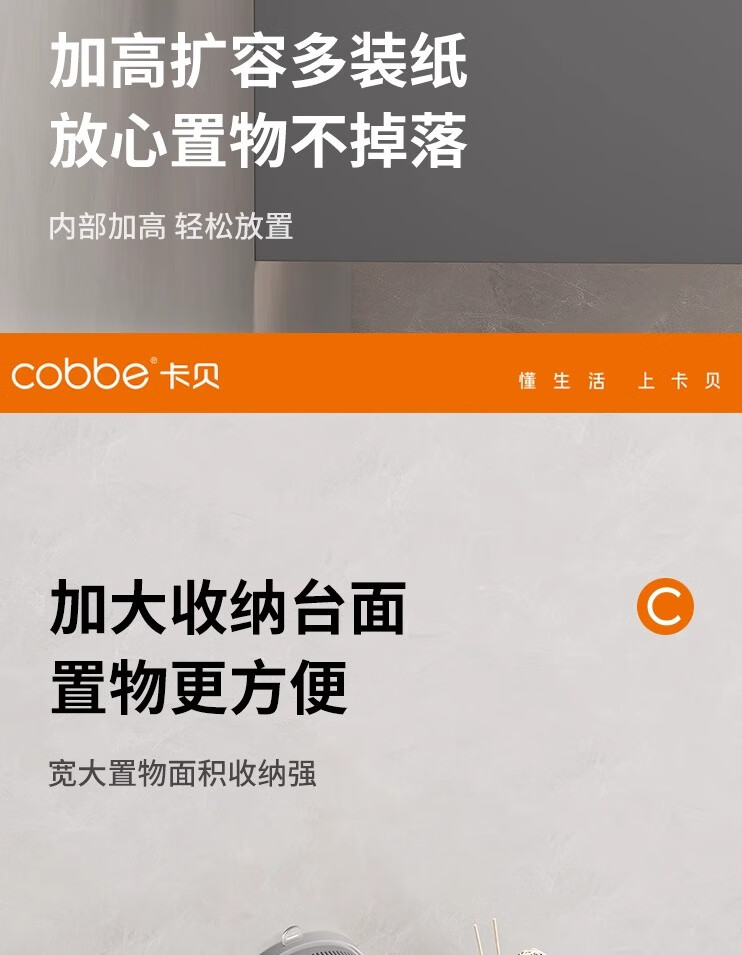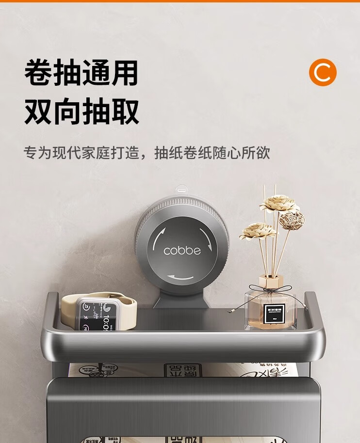 卡贝(cobbe)卫生间吸盘厕纸盒免打孔洗手间纸巾架厕所卷纸筒架壁挂置物架 A1-枪灰吸盘置物厕纸架