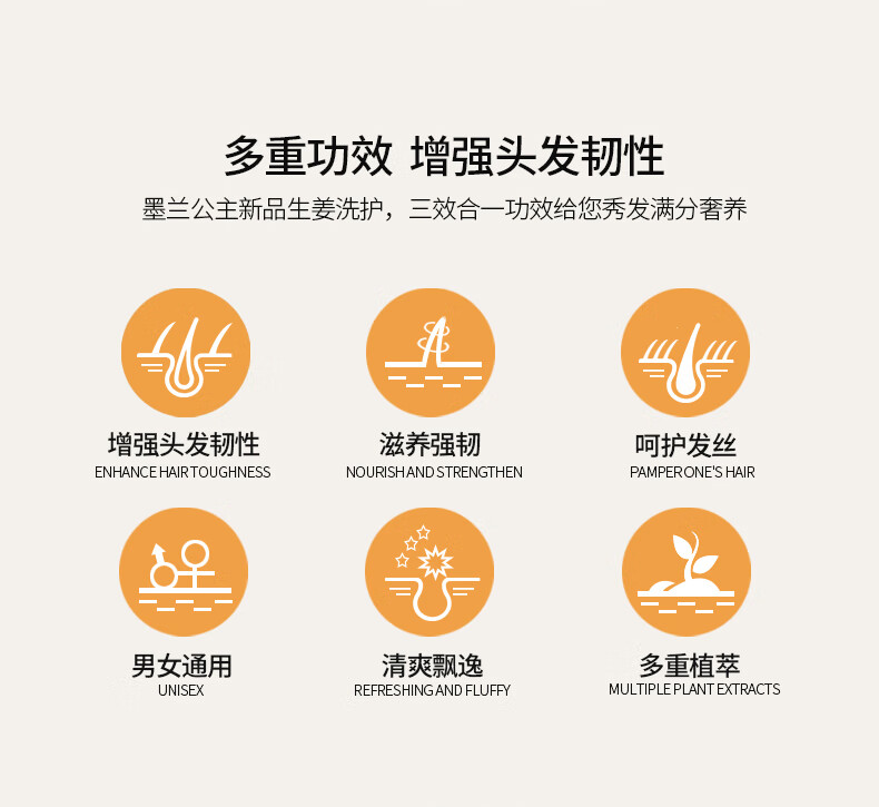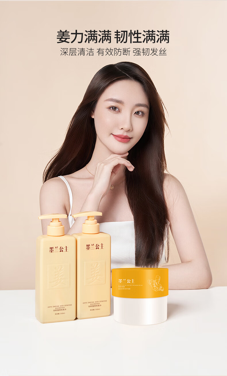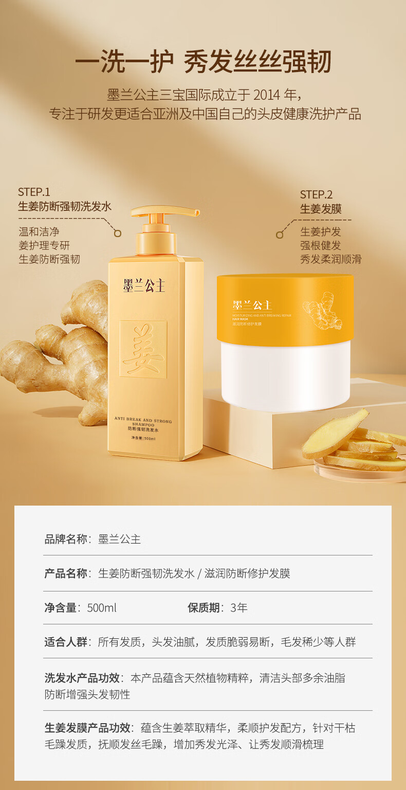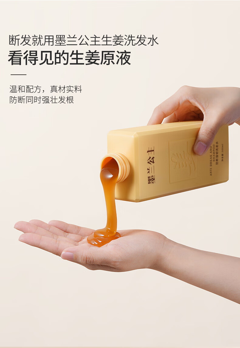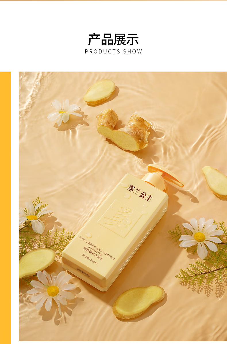墨兰公主生姜洗发水防断强韧发丝浓密发丝温和清洁草本清爽老姜王 洗发水1瓶 500ml*1瓶