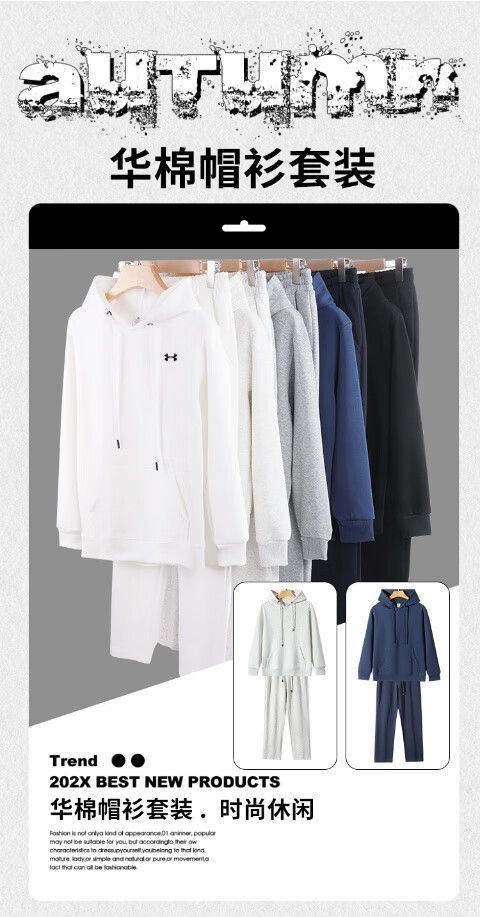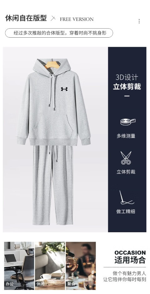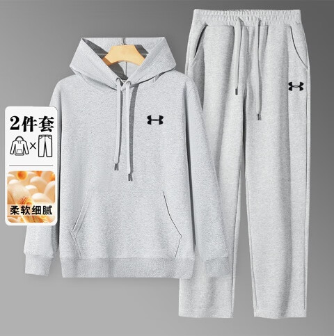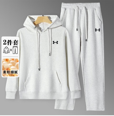 安德玛刺绣logo秋季新品男士纯棉运动套装休闲针织连帽卫衣宽松白色卫裤 黑色 5XL【建议体重200-220斤】