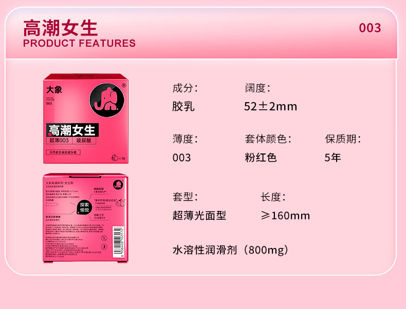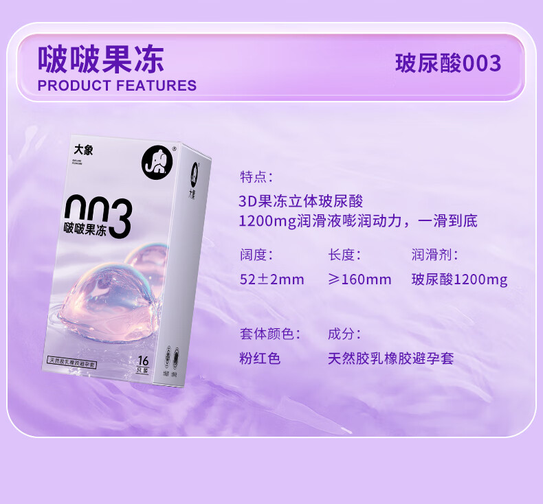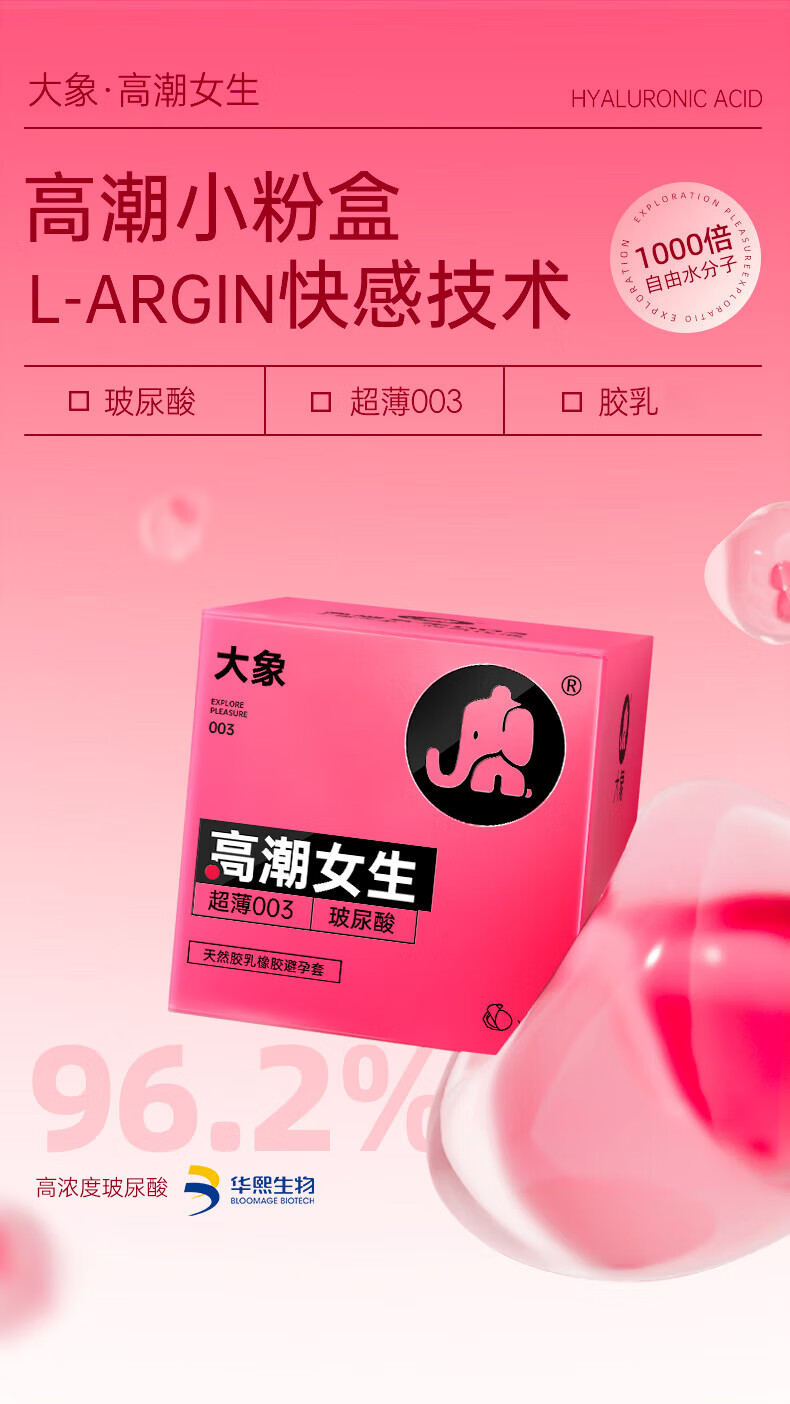 大象003超薄避孕套玻尿酸隐形裸感安全套套螺纹颗粒成人情趣计生用品 【爆款单品】003高潮玻尿酸20只(加赠2只)