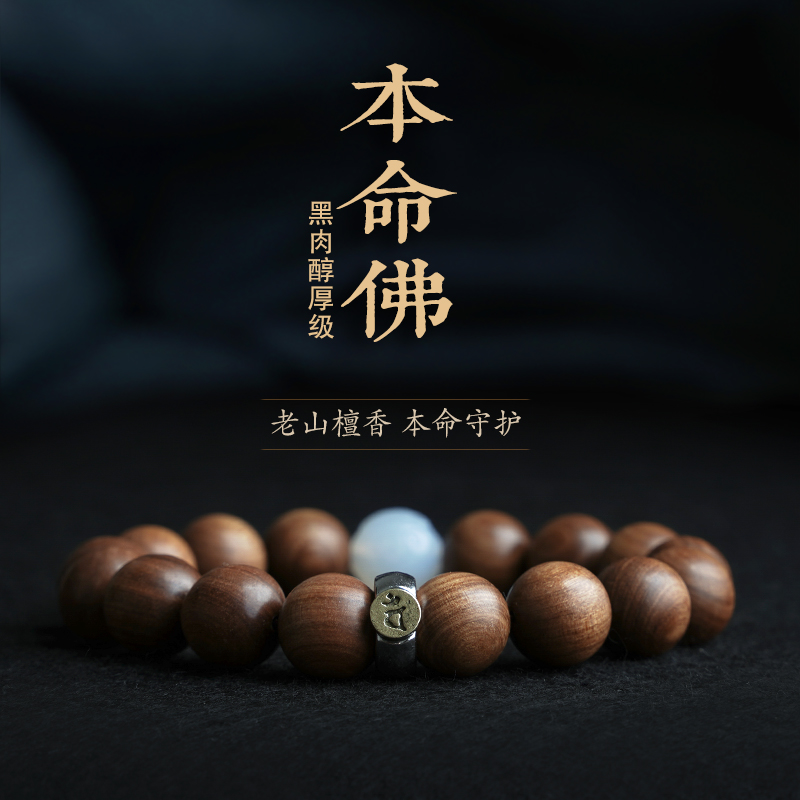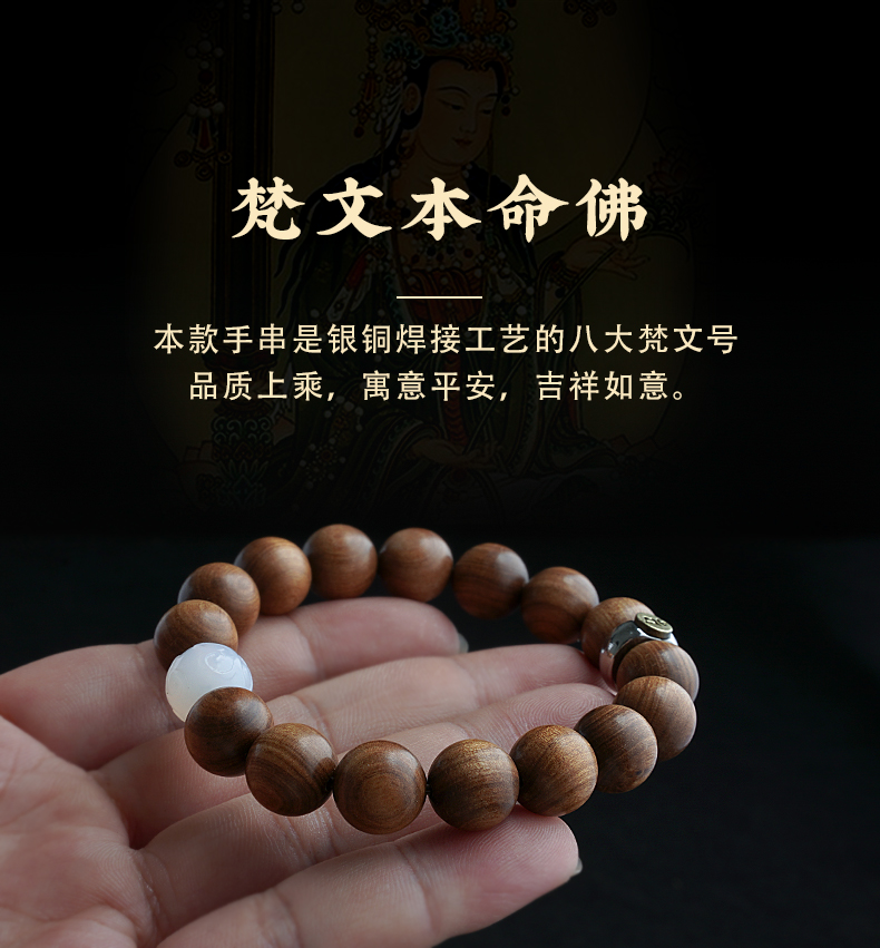 正宗老山檀手串檀香木十二生肖守护神本命年回纹玛瑙手链男女佛珠 檀香阿弥陀佛-狗猪-12MM