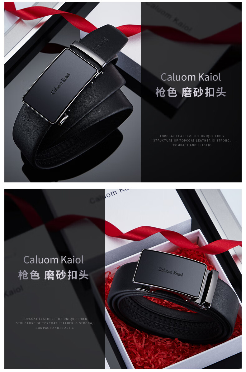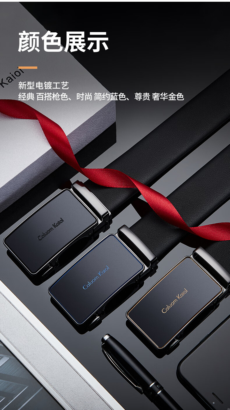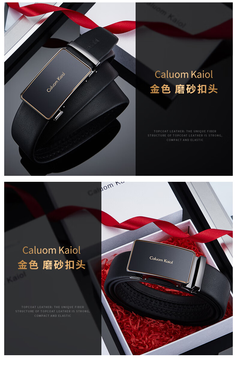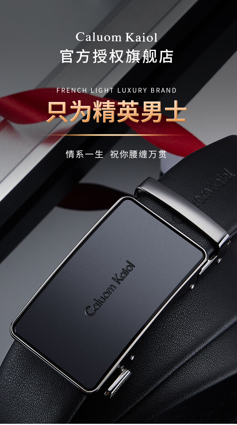 Caluom Kaiol品牌皮带男款2025年最新款真皮自动扣男士腰带圣诞礼物送男友 【专柜礼盒】8066百搭枪扣 115cm -130cm默认随机(可修剪)