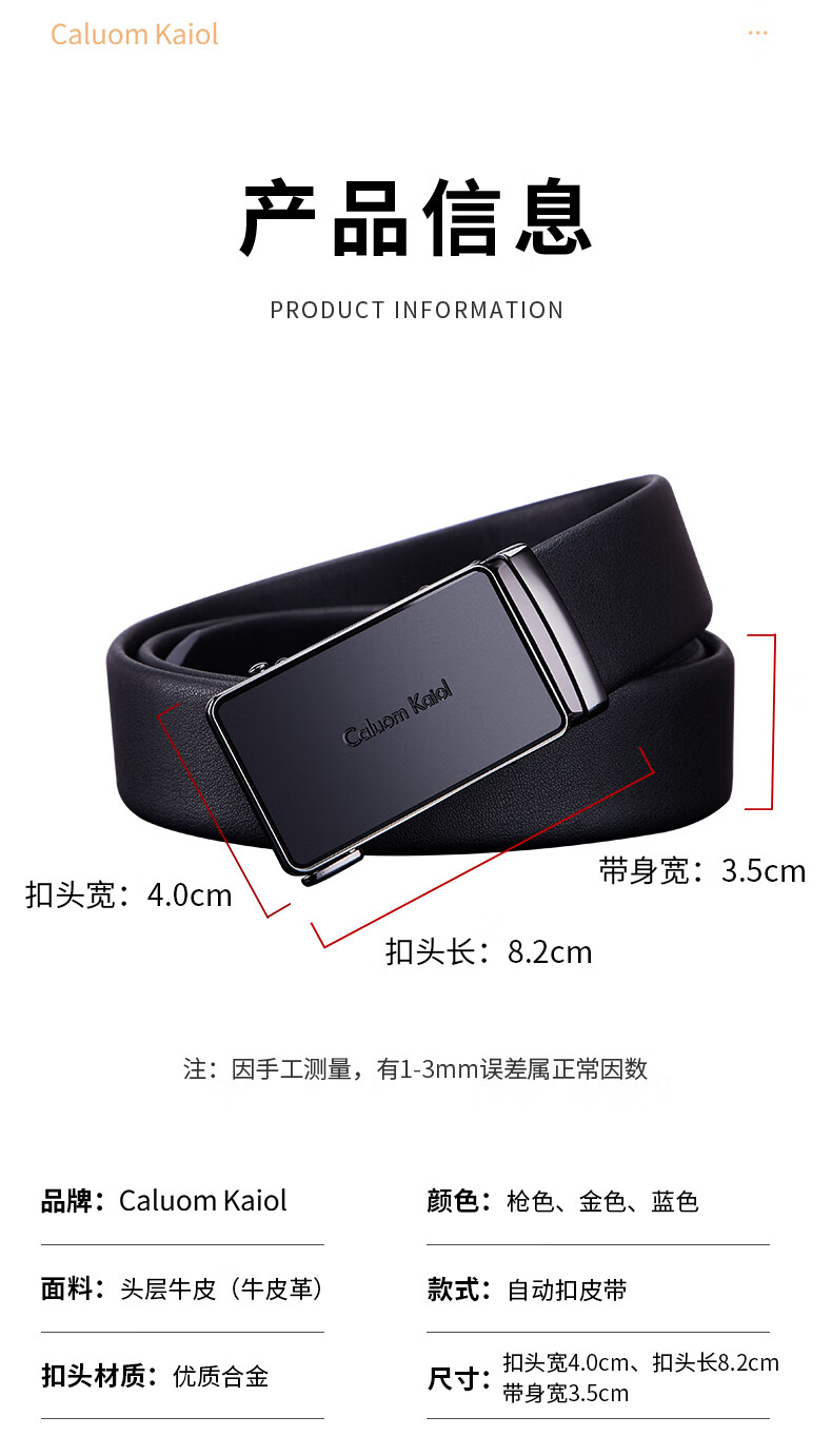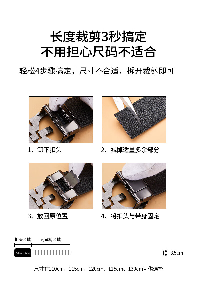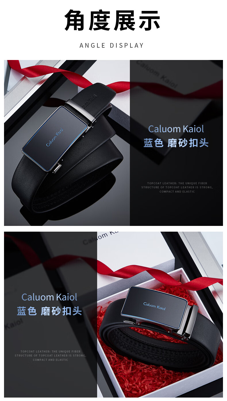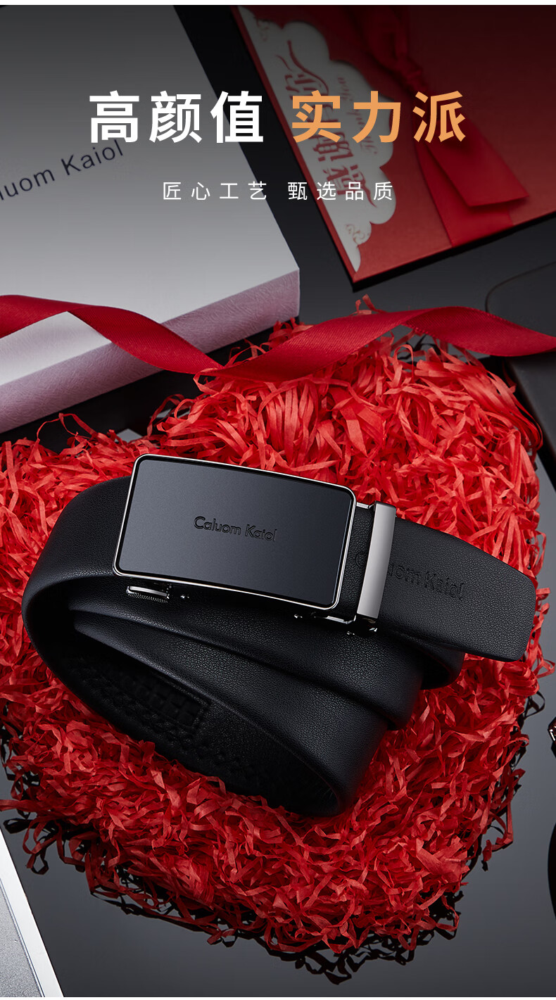 Caluom Kaiol品牌皮带男款2025年最新款真皮自动扣男士腰带圣诞礼物送男友 【专柜礼盒】8066百搭枪扣 115cm -130cm默认随机(可修剪)