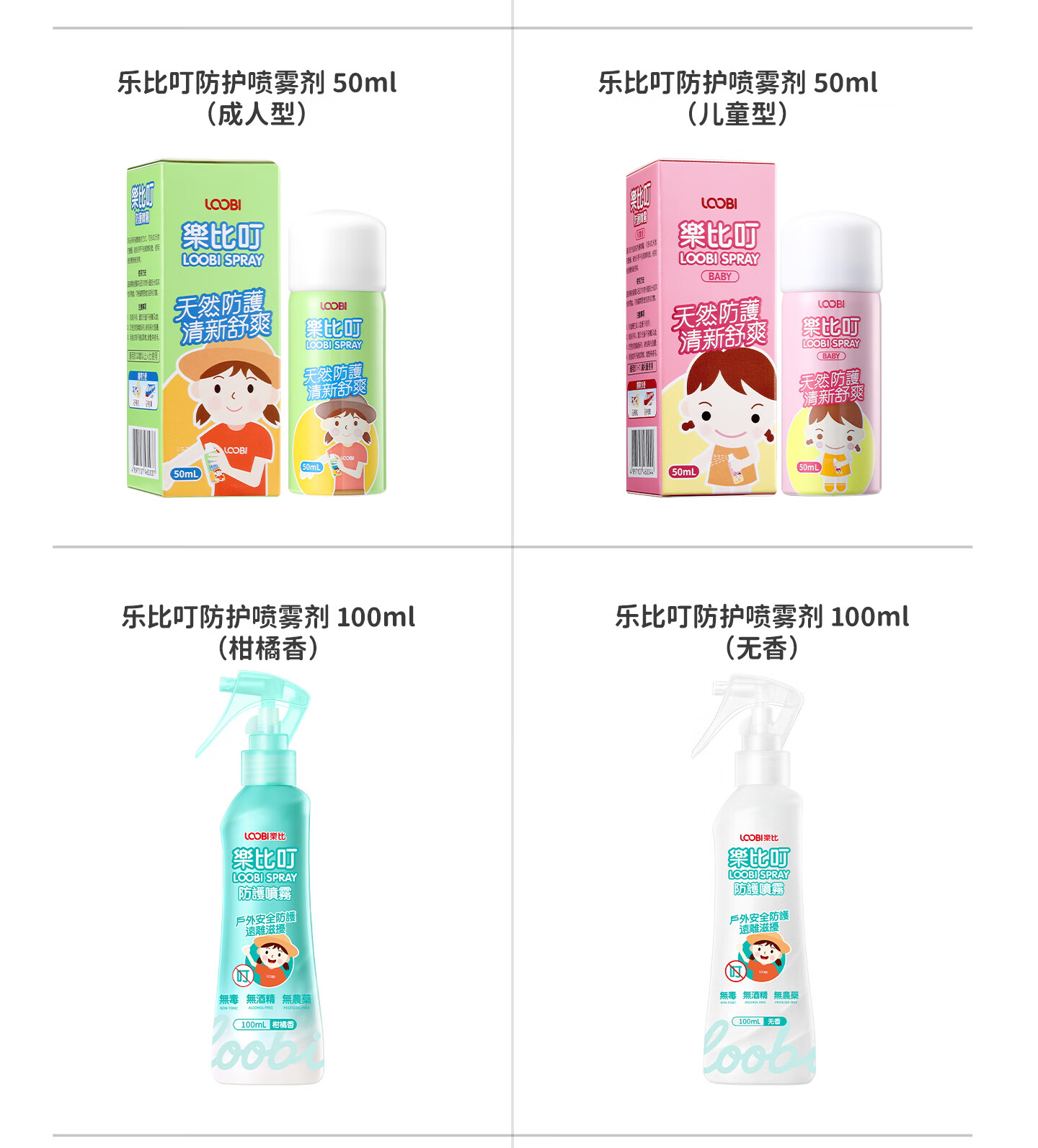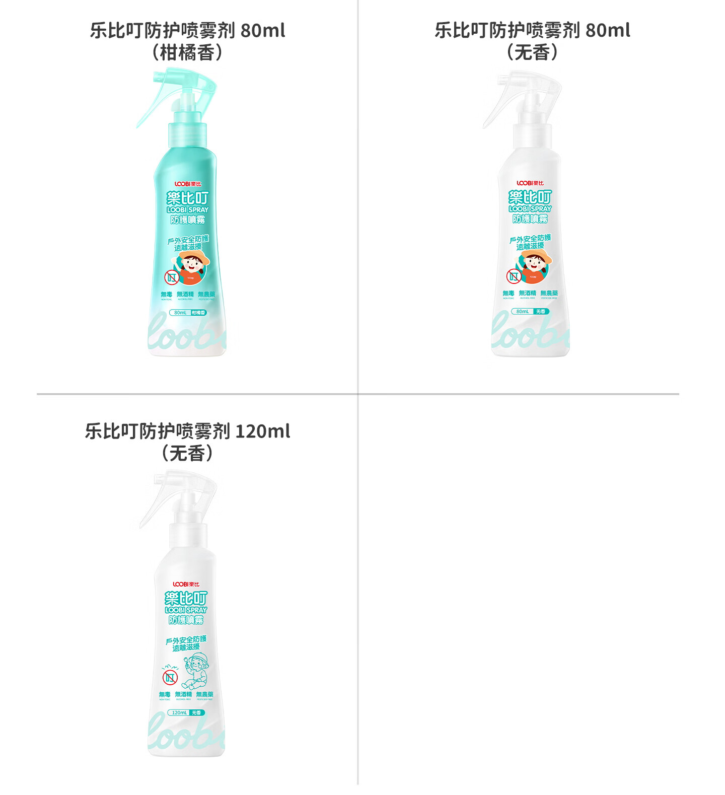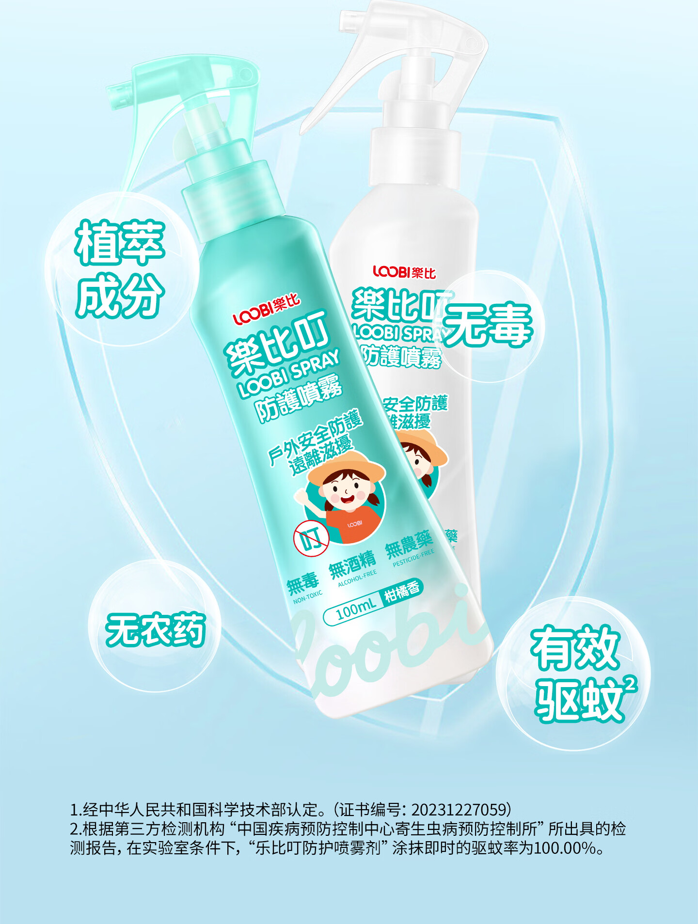 乐比(LOOBI)驱蚊喷雾婴幼儿童防蚊液宝宝家用户外植萃无毒驱蚊水花露水100ml 防护喷雾(无香型)100ml
