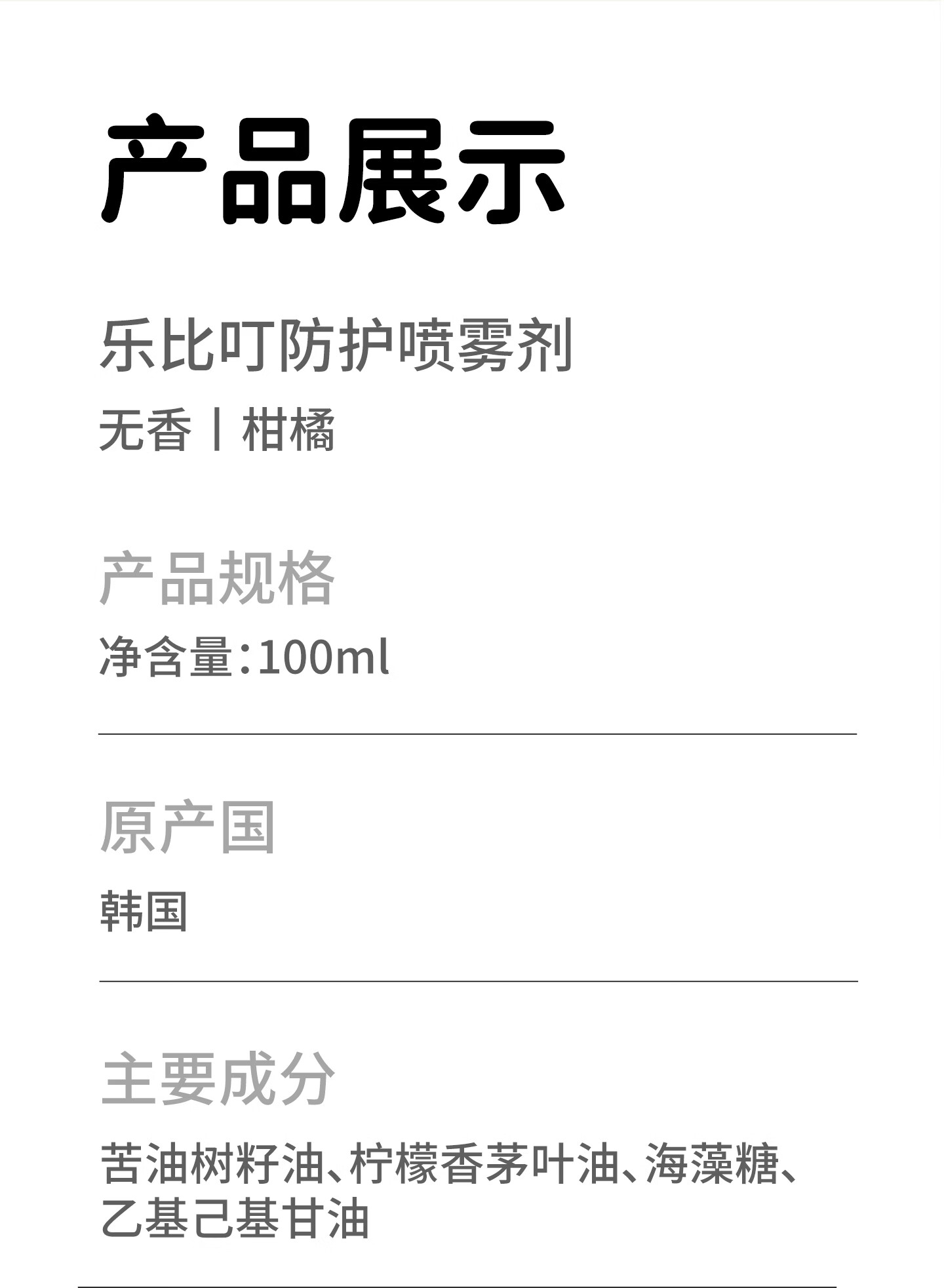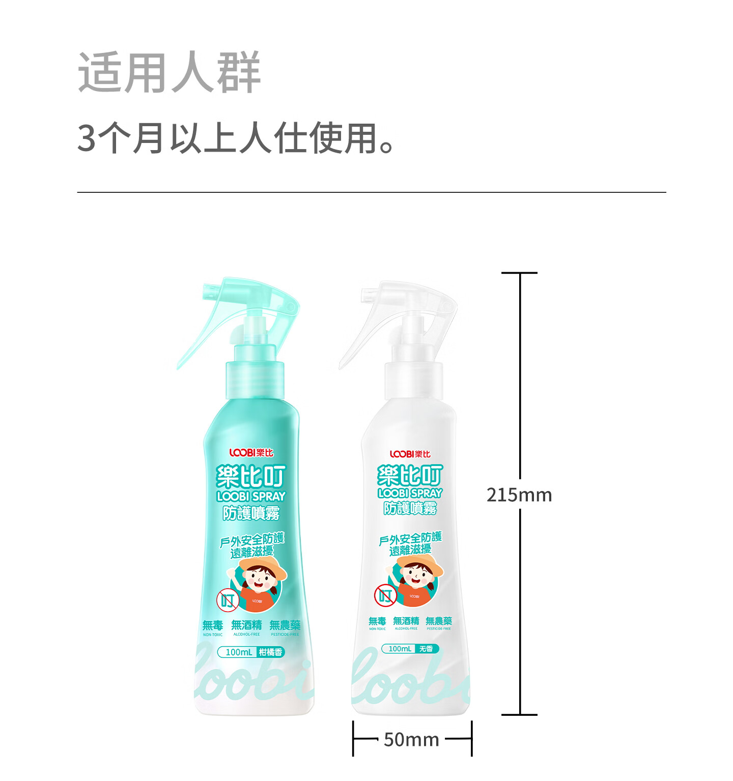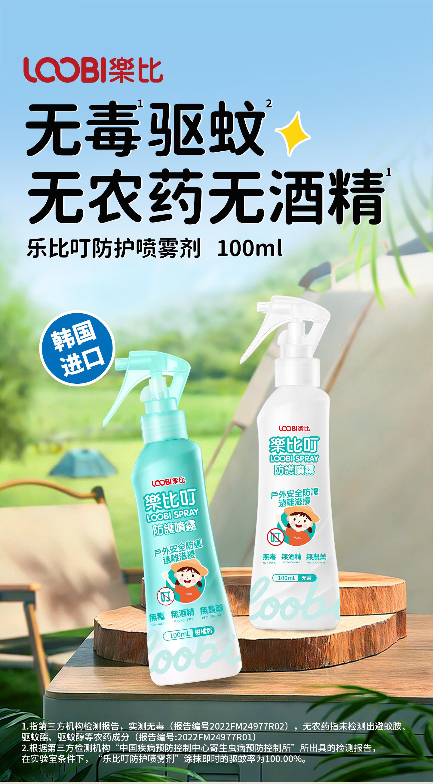 乐比(LOOBI)驱蚊喷雾婴幼儿童防蚊液宝宝家用户外植萃无毒驱蚊水花露水100ml 防护喷雾(无香型)100ml