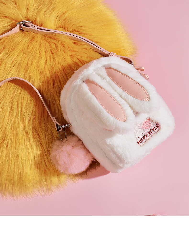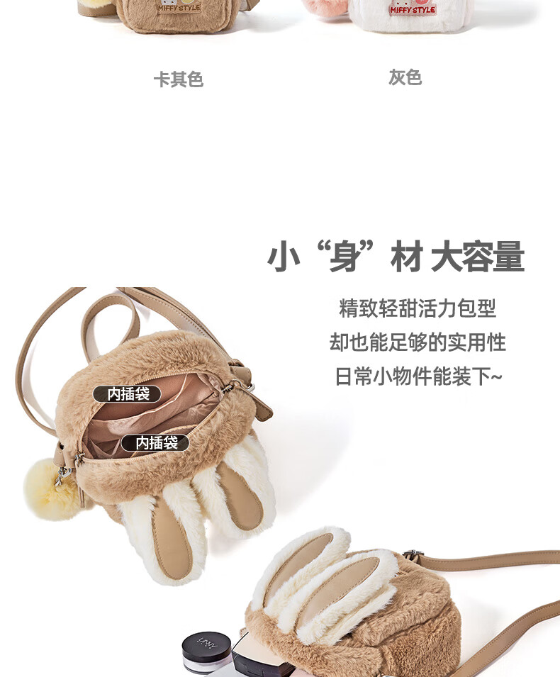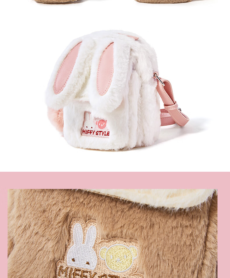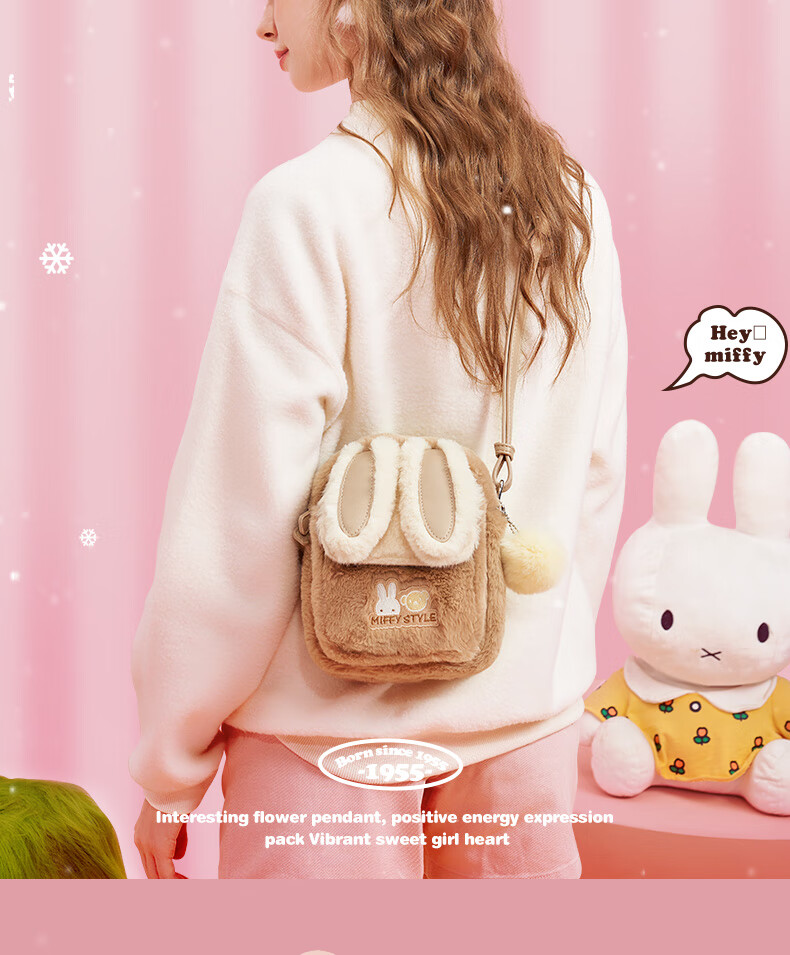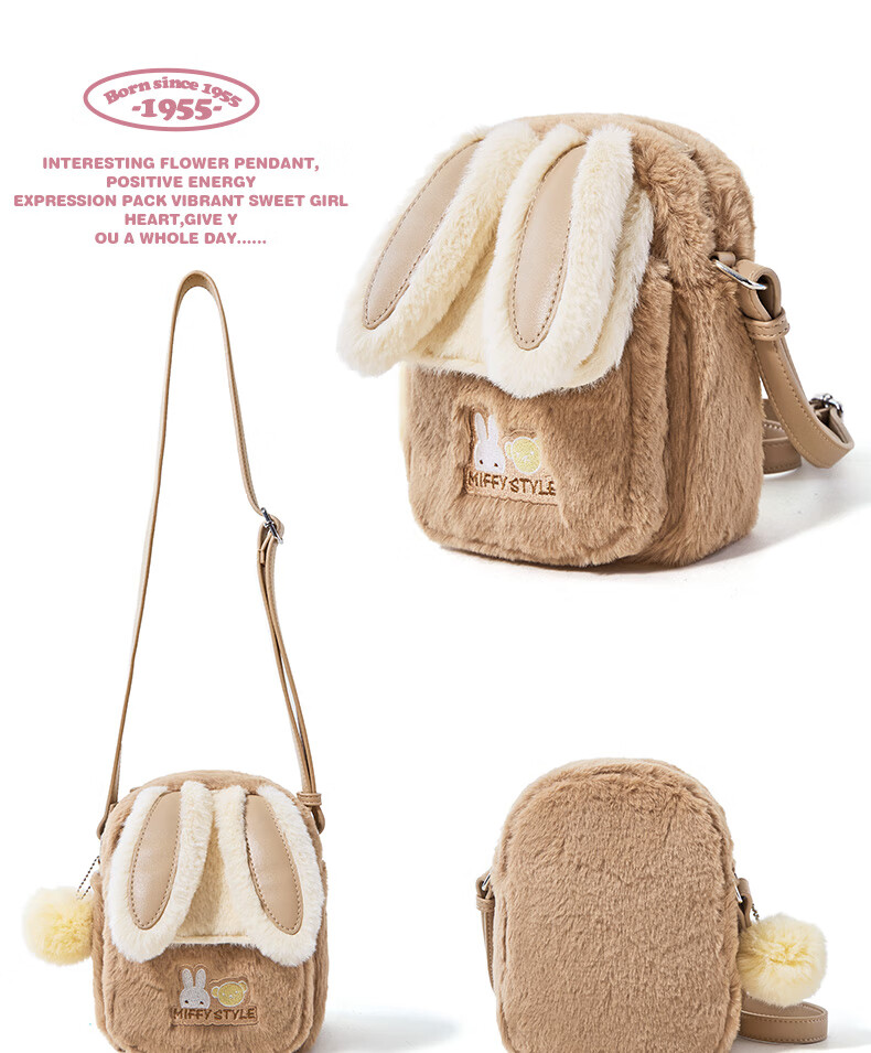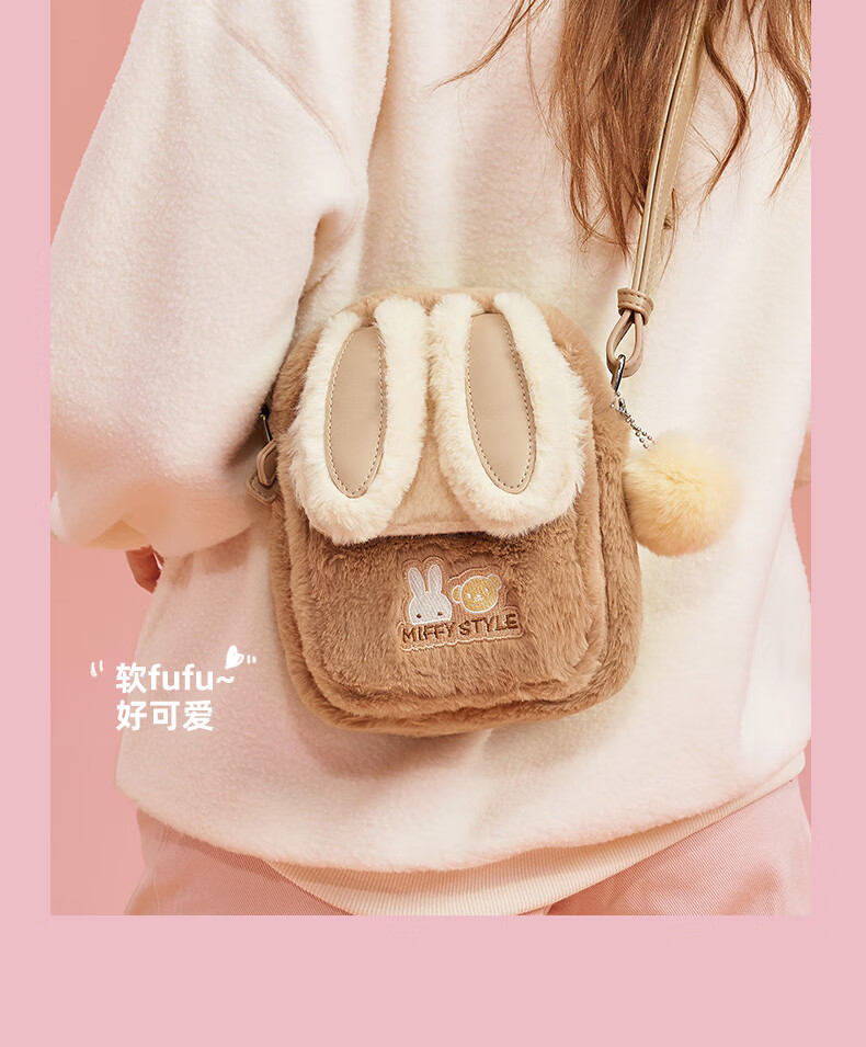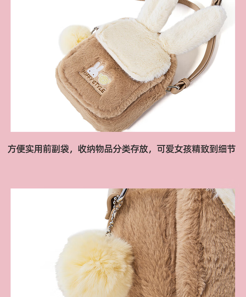 米菲(MIFFY)斜挎包女高级感单肩隔层小方包毛绒包生日礼物可爱风兔耳朵带挂件 卡其色