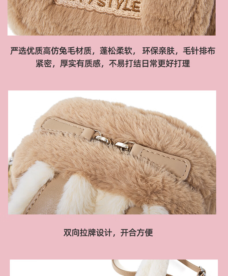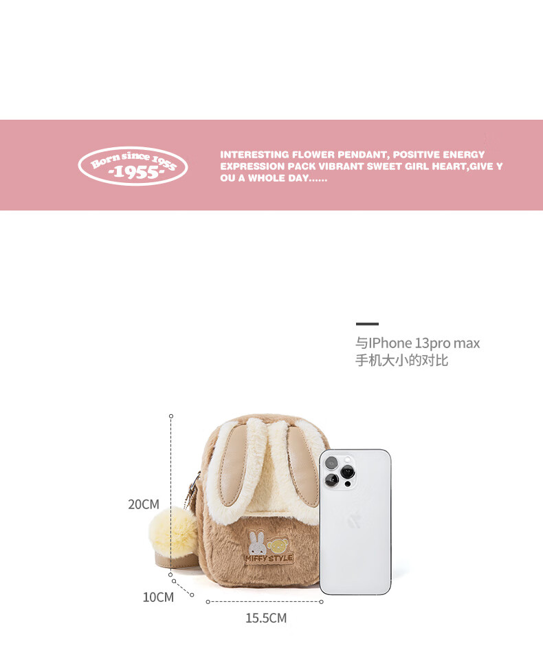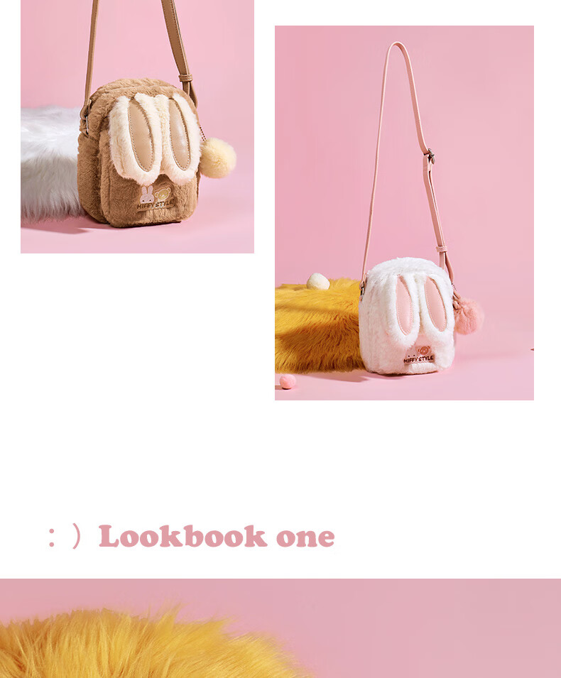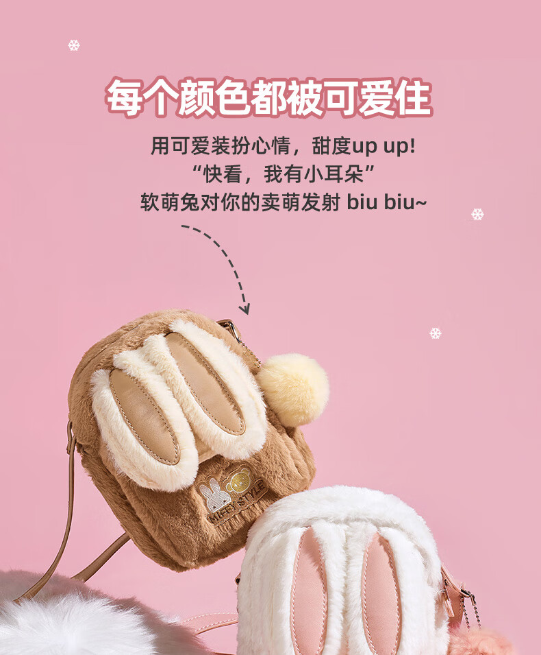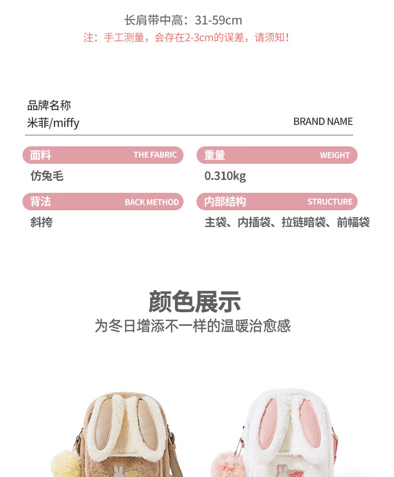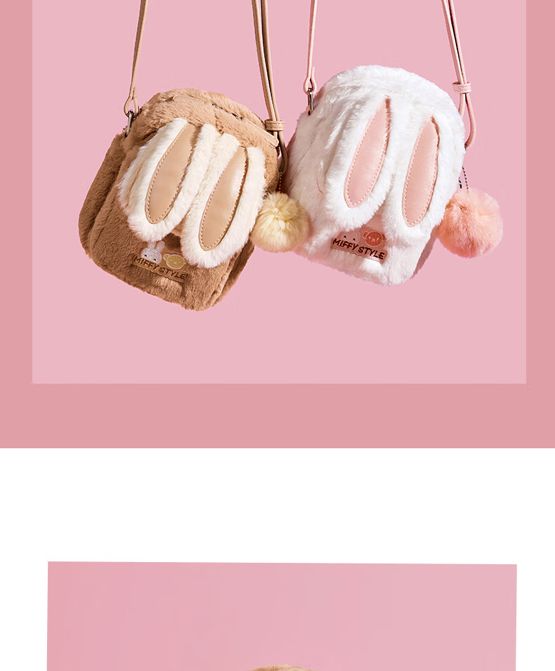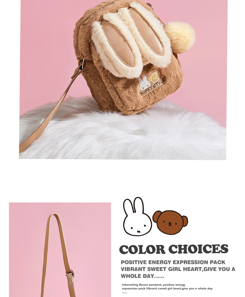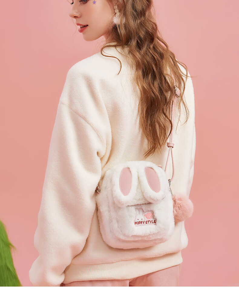 米菲(MIFFY)斜挎包女高级感单肩隔层小方包毛绒包生日礼物可爱风兔耳朵带挂件 卡其色
