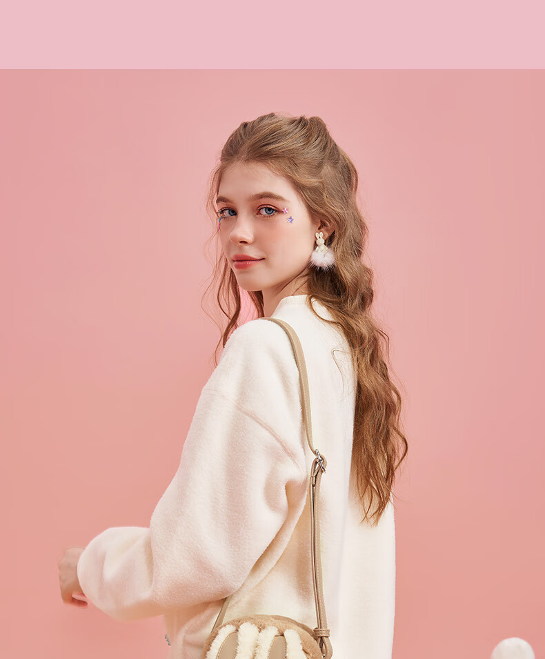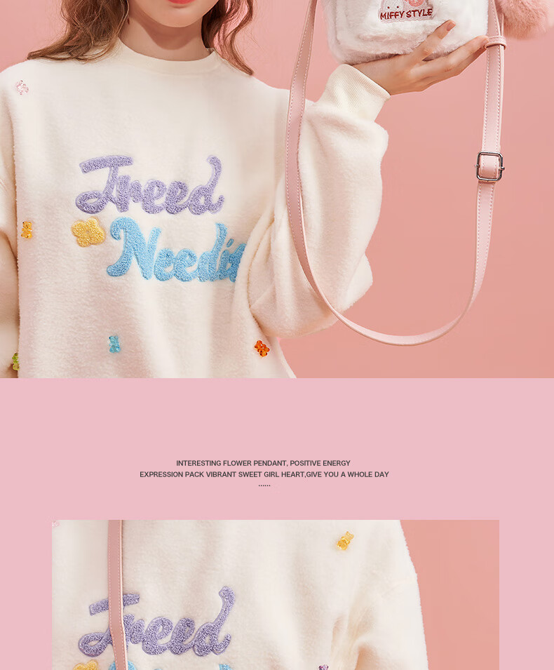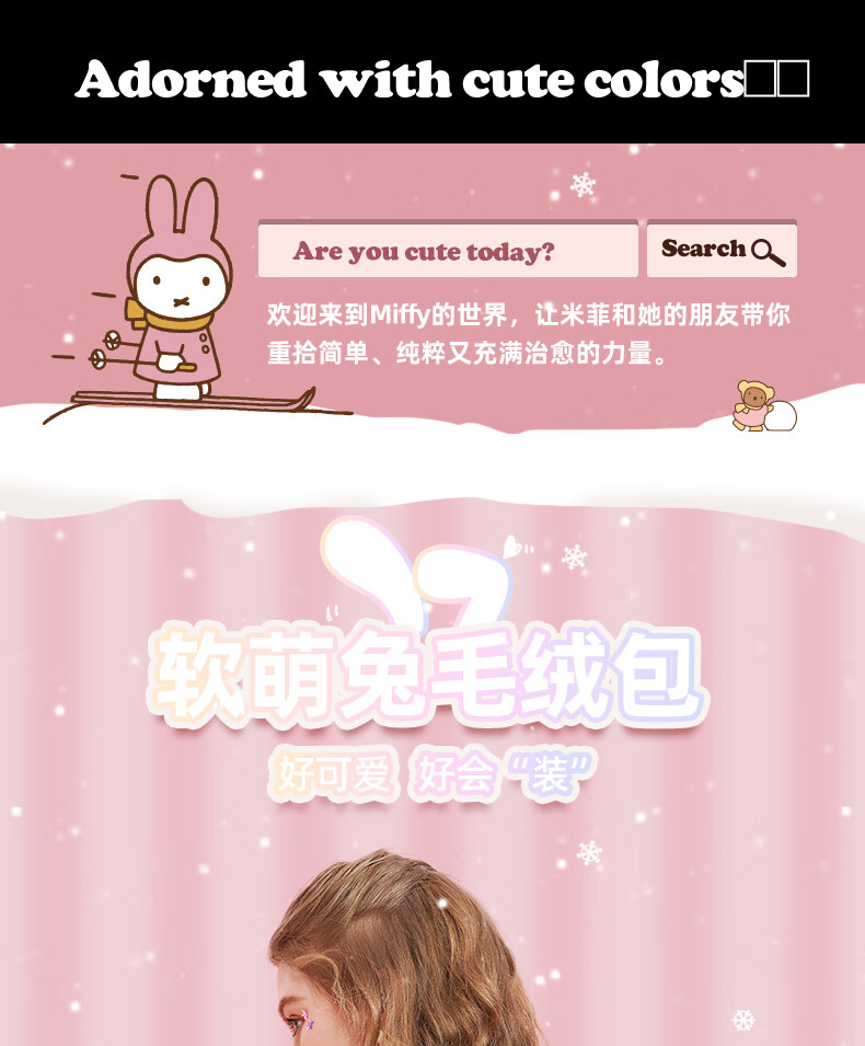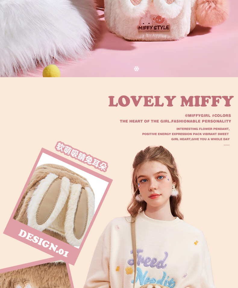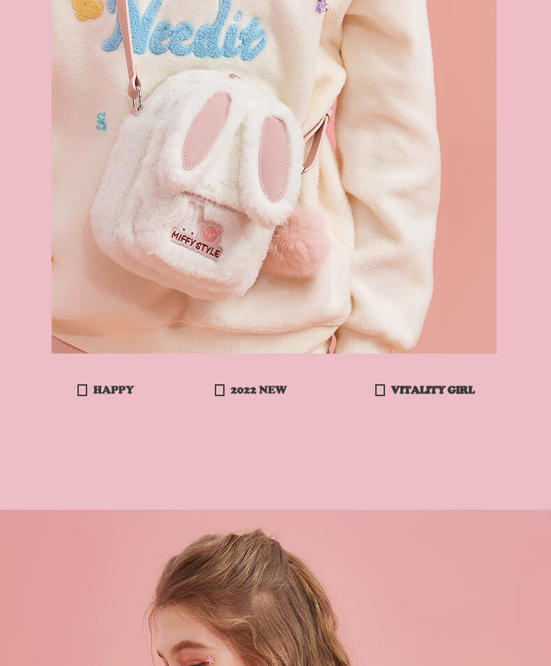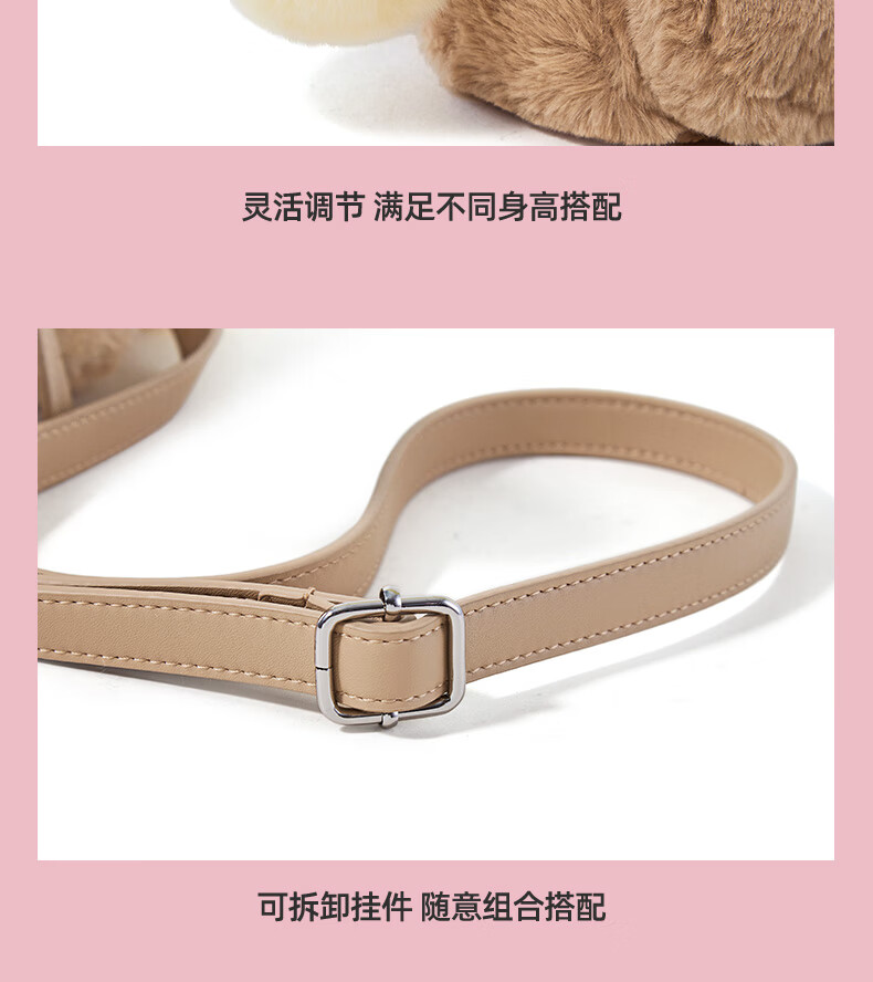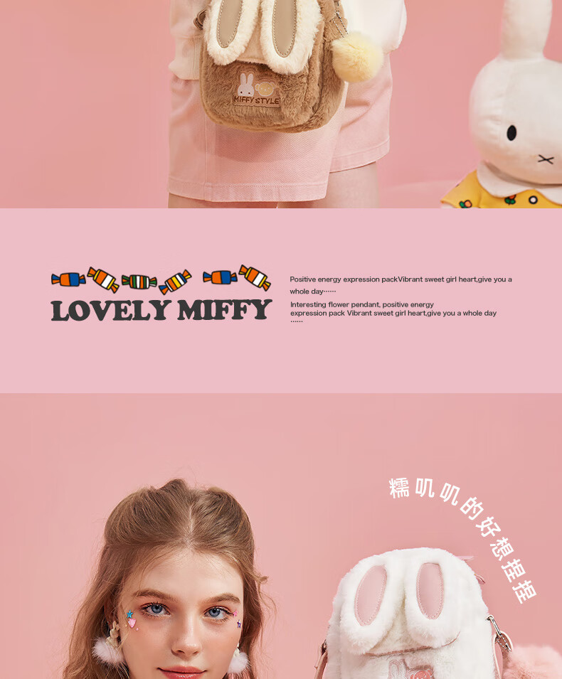 米菲(MIFFY)斜挎包女高级感单肩隔层小方包毛绒包生日礼物可爱风兔耳朵带挂件 卡其色