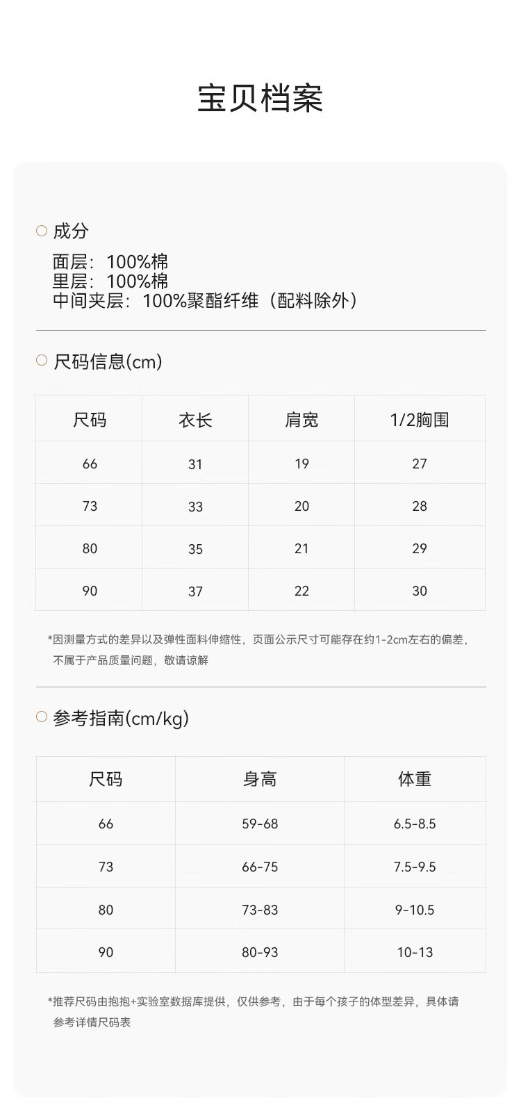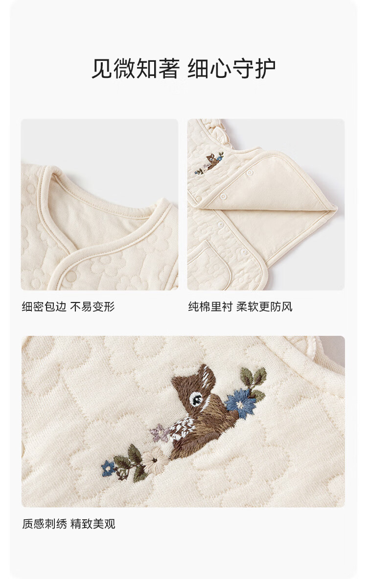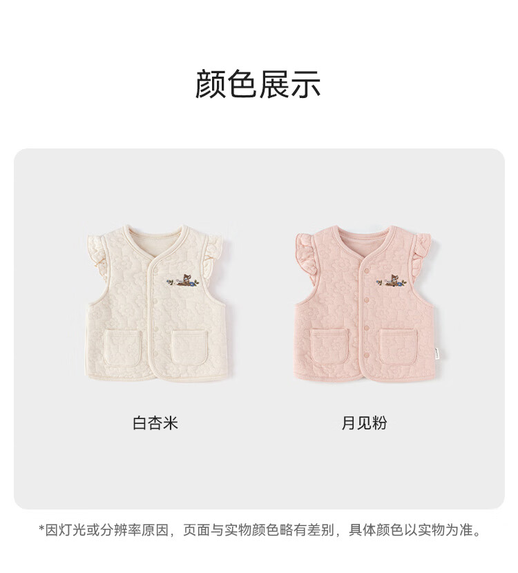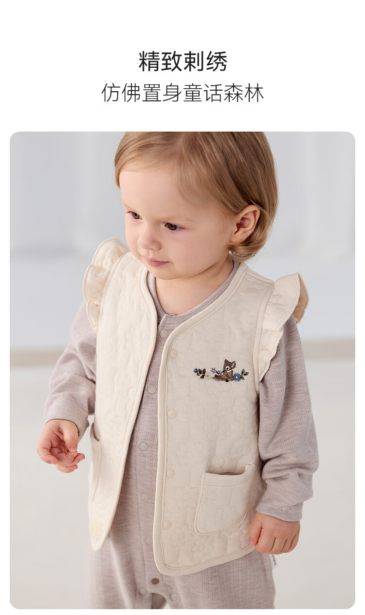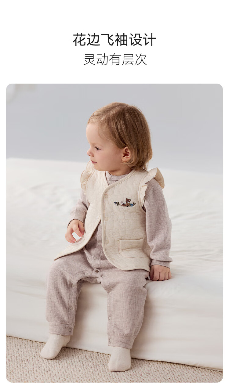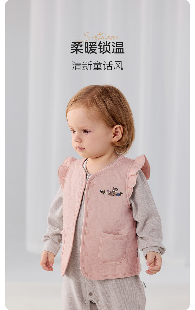 babylove女宝宝马甲秋冬婴儿薄夹棉保暖背心外出时尚飞袖纯棉坎肩 白杏米 80