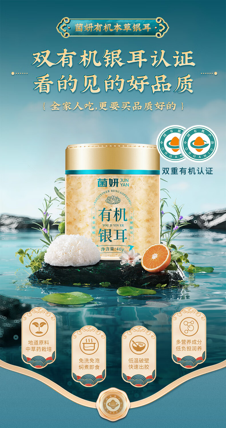 【限时特惠】菌妍双有机本草银耳免洗古田干货冻干银耳羹冲泡即食 【有机银耳】10分钟出胶40克*1罐