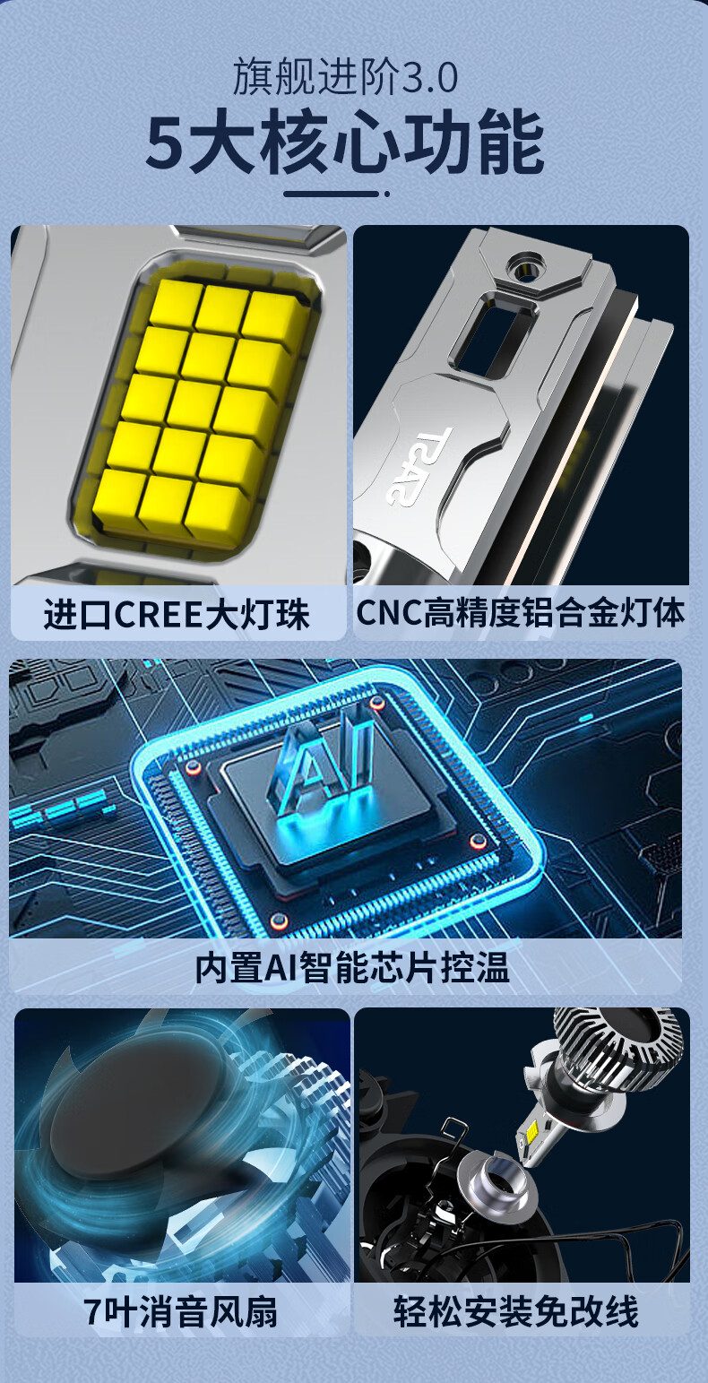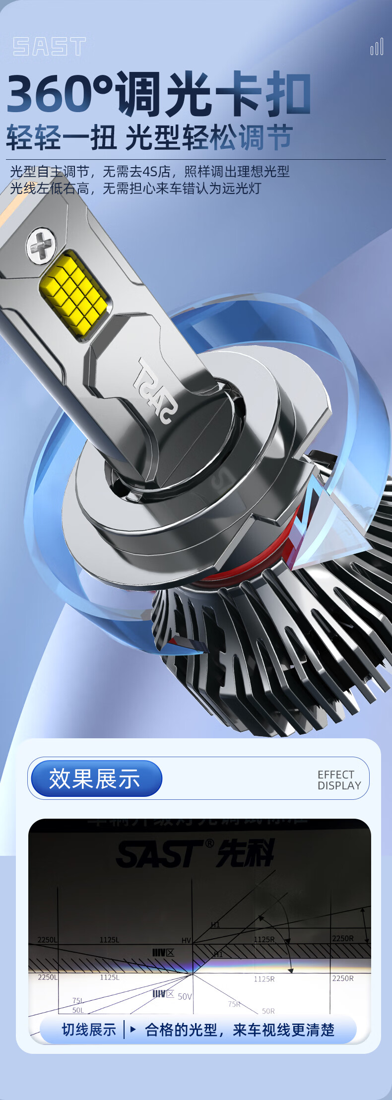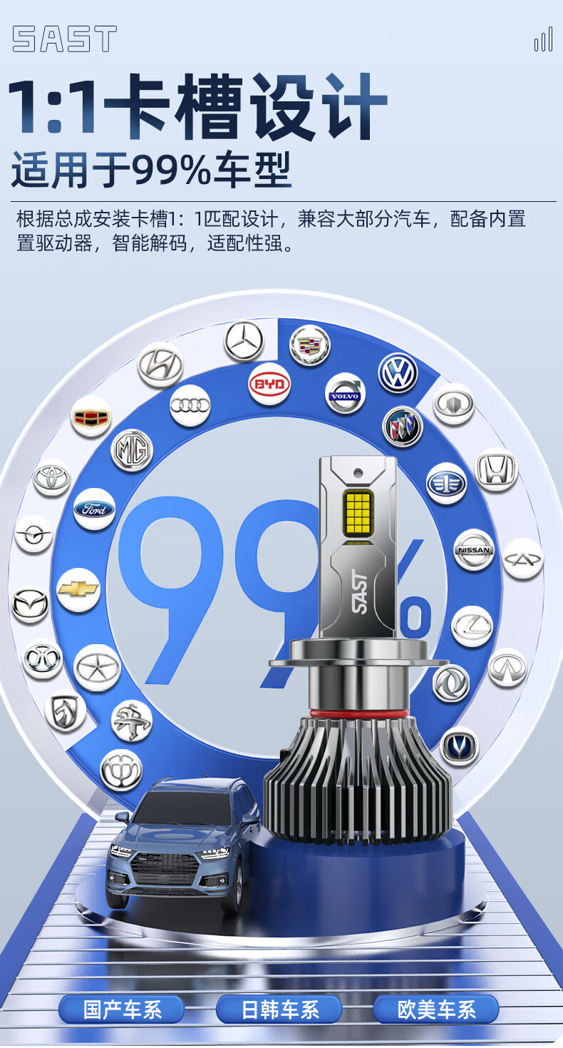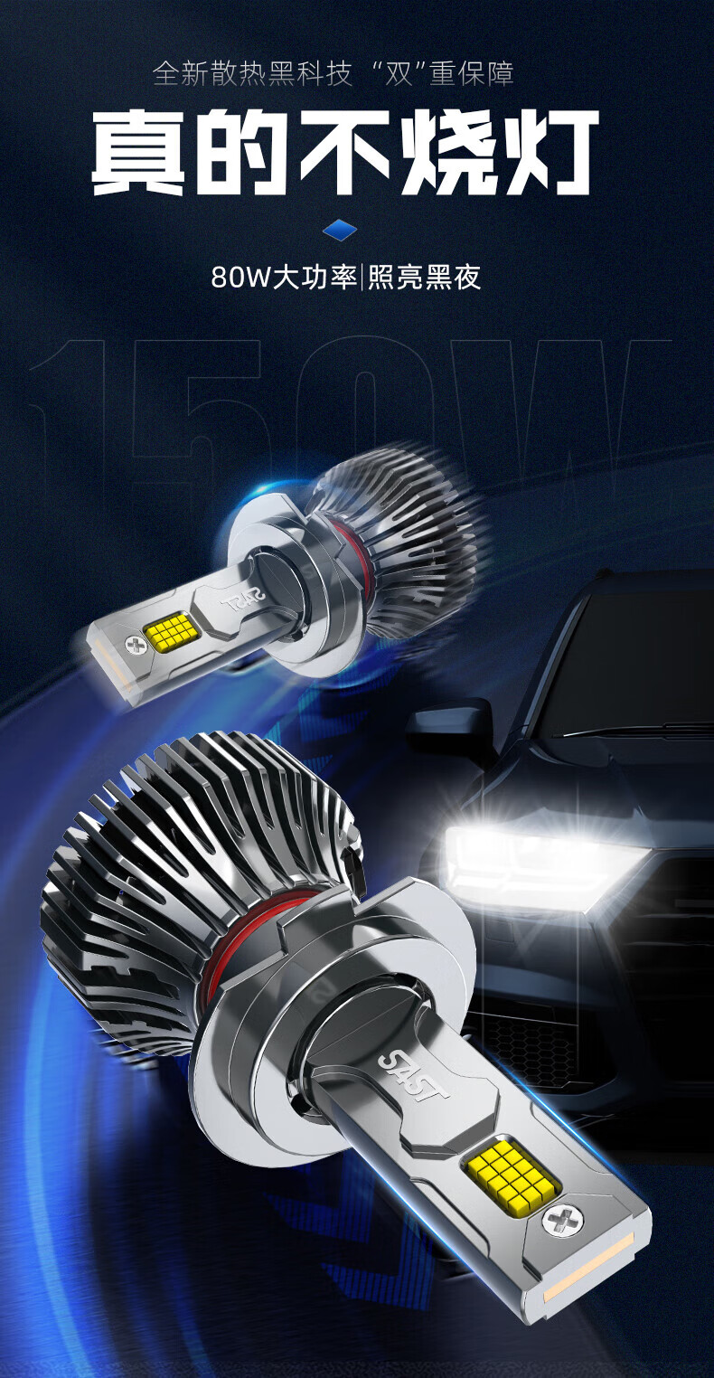 先科(SAST)汽车led大灯泡改装激光车灯超亮汽车远光灯近光灯9005【2支装】