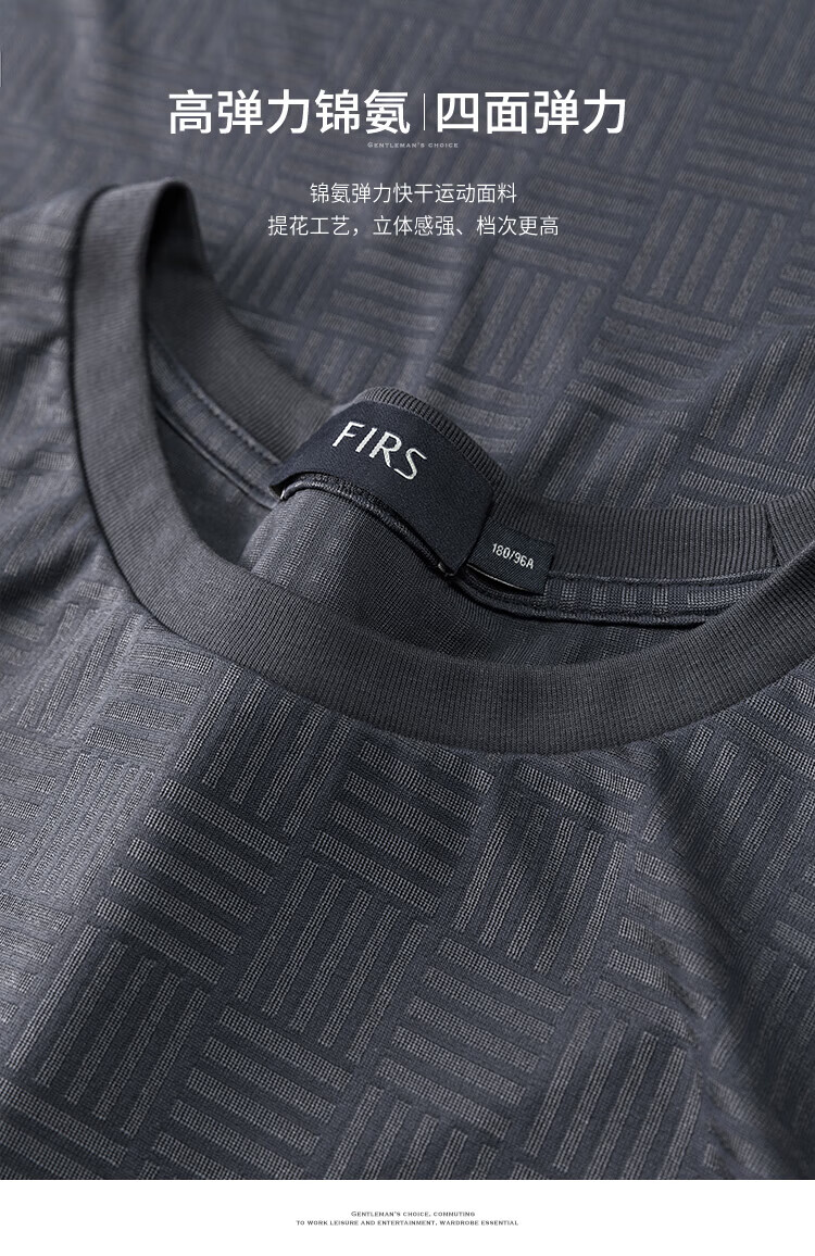 杉杉(FIRS)短袖T恤男士夏季休闲圆领弹力棉氨体恤亲肤柔软顺滑抗皱轻薄上衣 灰蓝 M (170/88A)