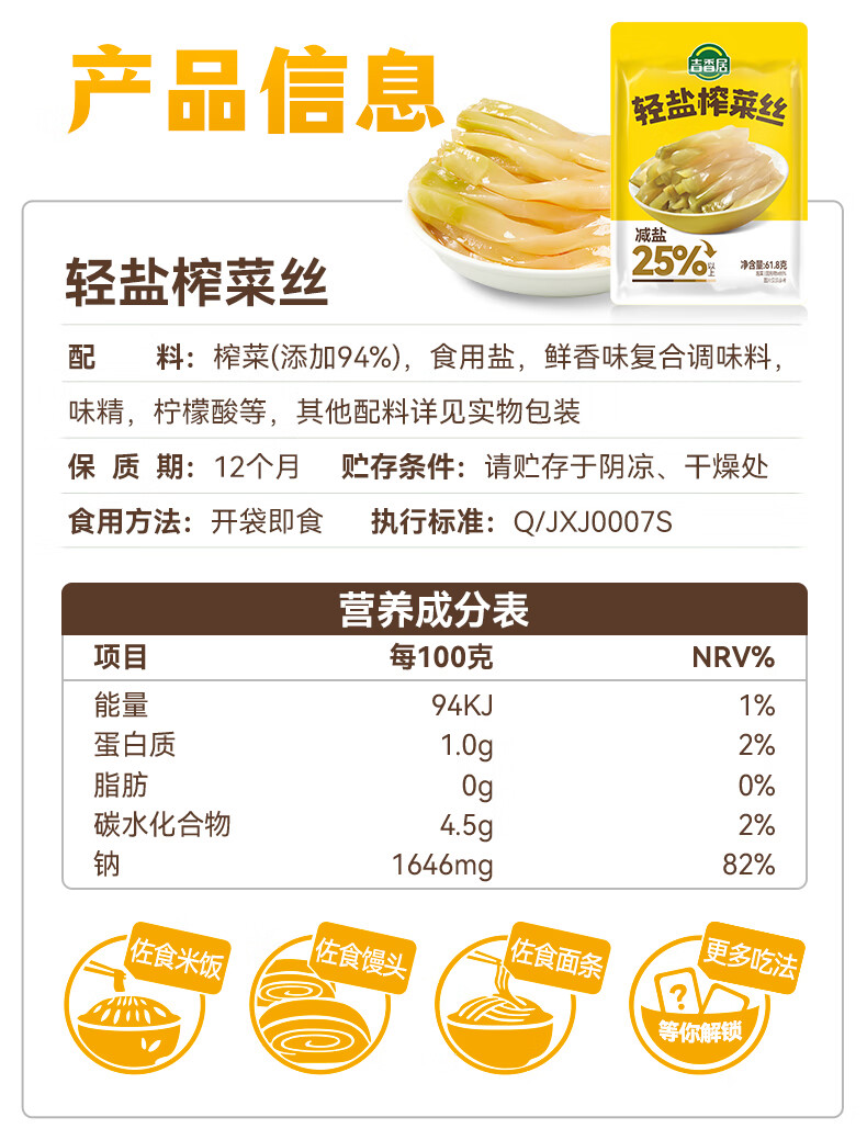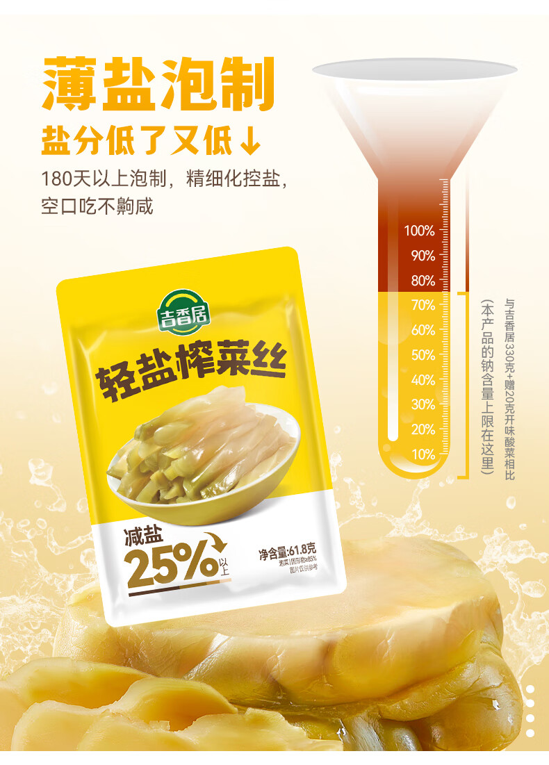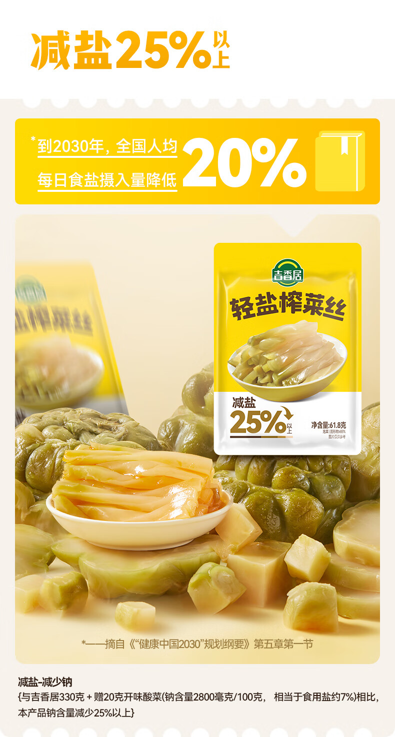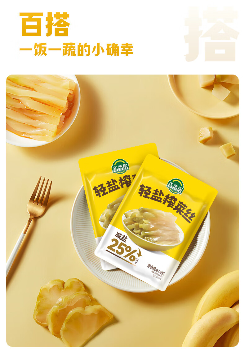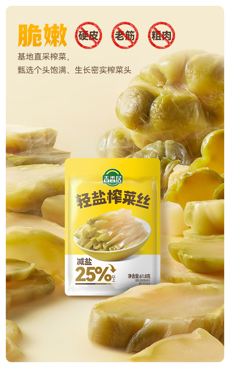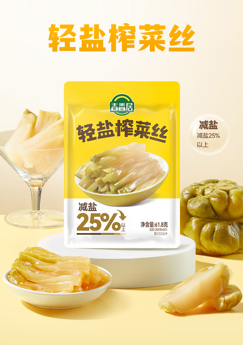 吉香居轻盐榨菜丝61.8g*5包减盐清淡榨菜丝咸菜下饭菜佐餐炒菜煲汤小菜
