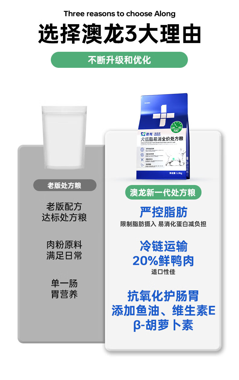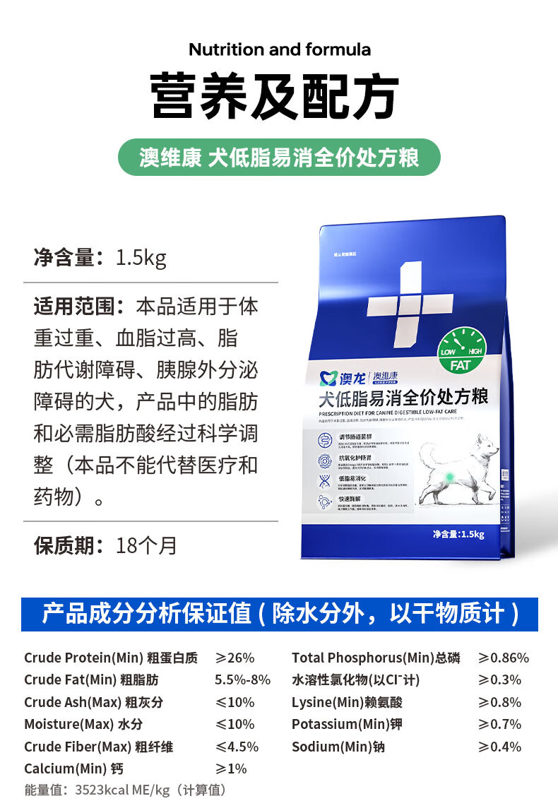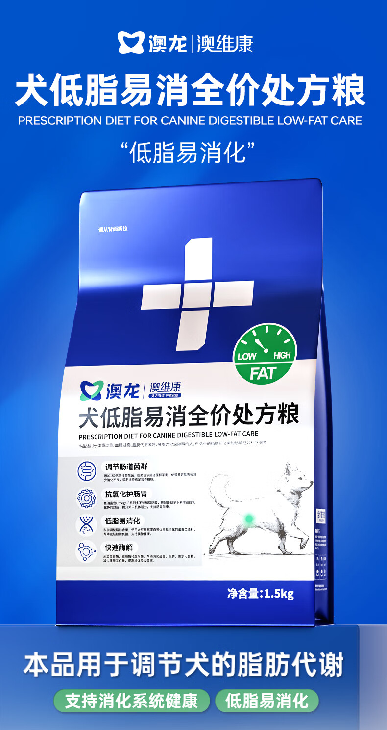 澳龙低脂处方粮狗狗胰腺炎犬低脂处方粮犬粮减肥成犬幼狗粮1.5kg
