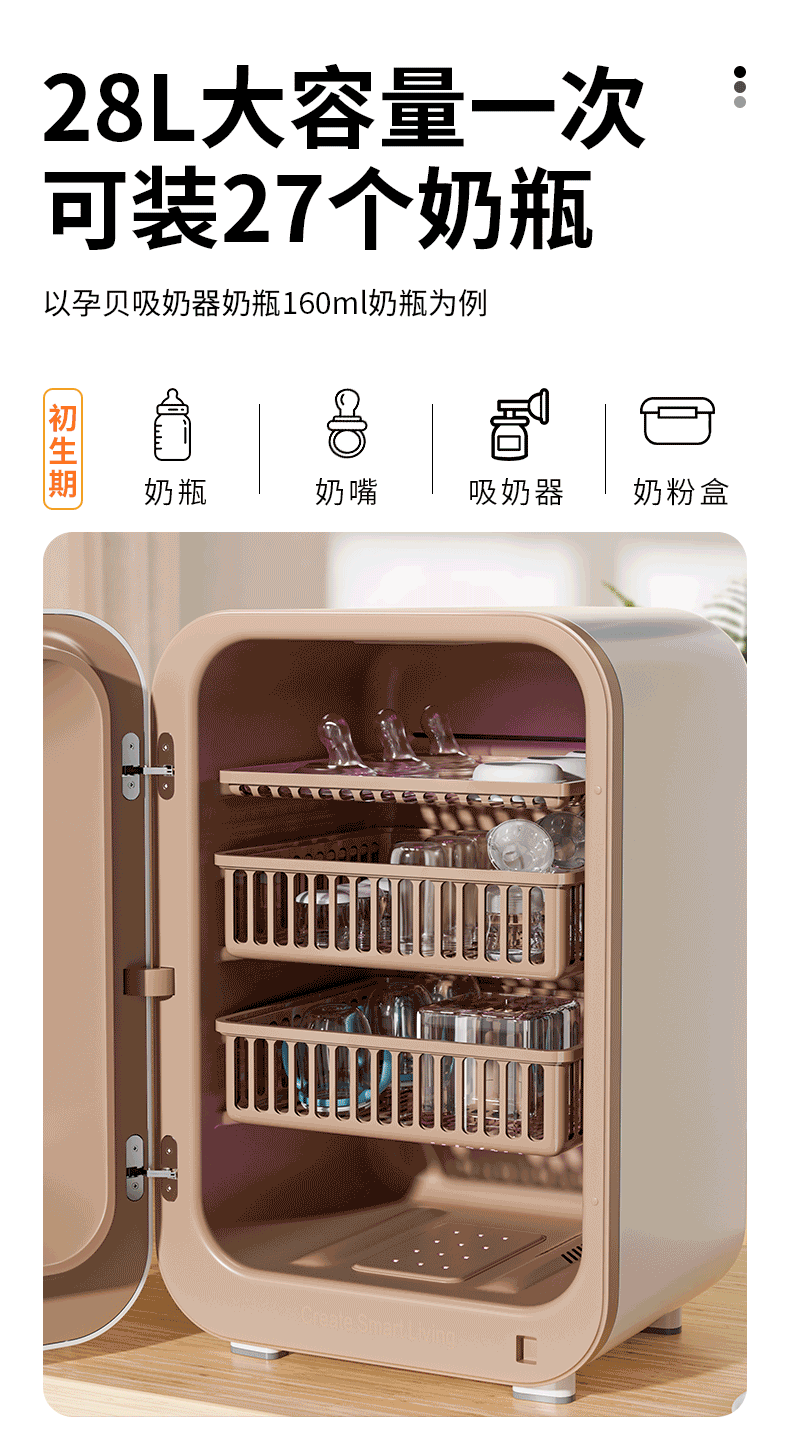 孕贝消毒柜婴儿 奶瓶消毒带烘干一体机 离子净味紫外线消毒器29灯 28L