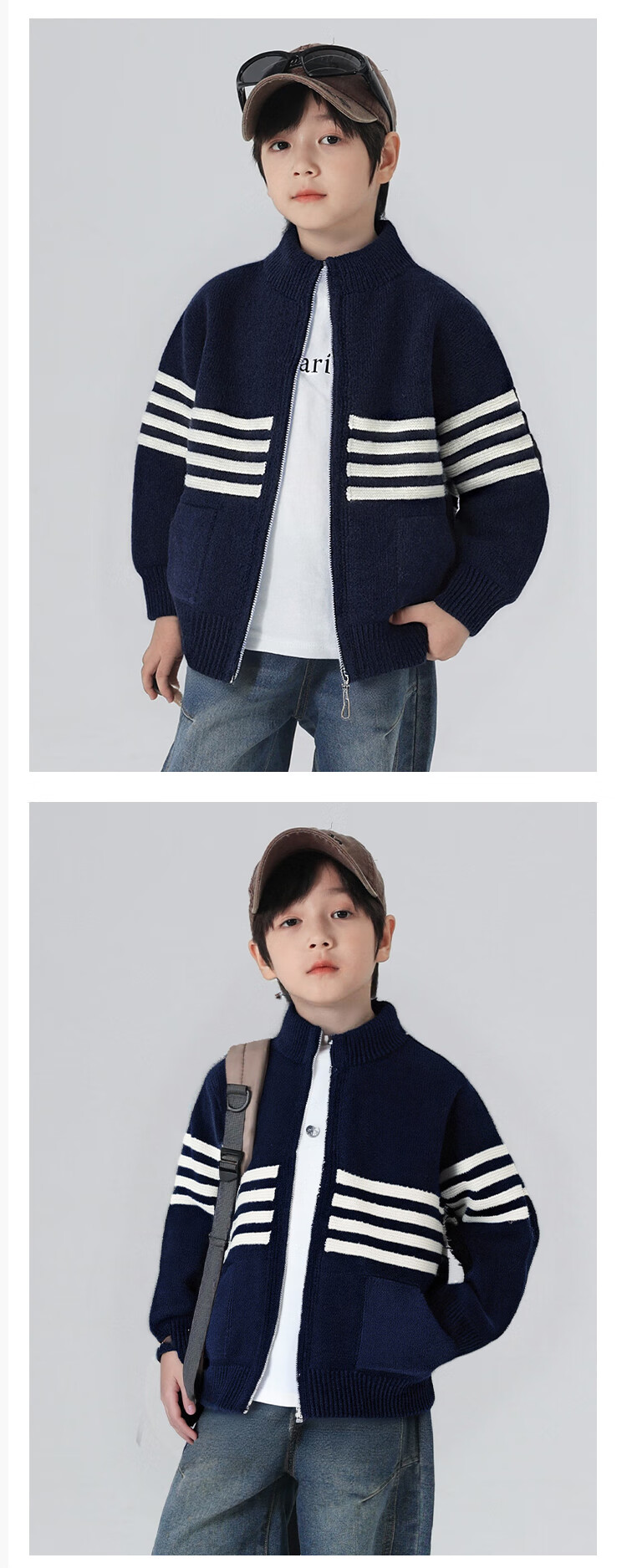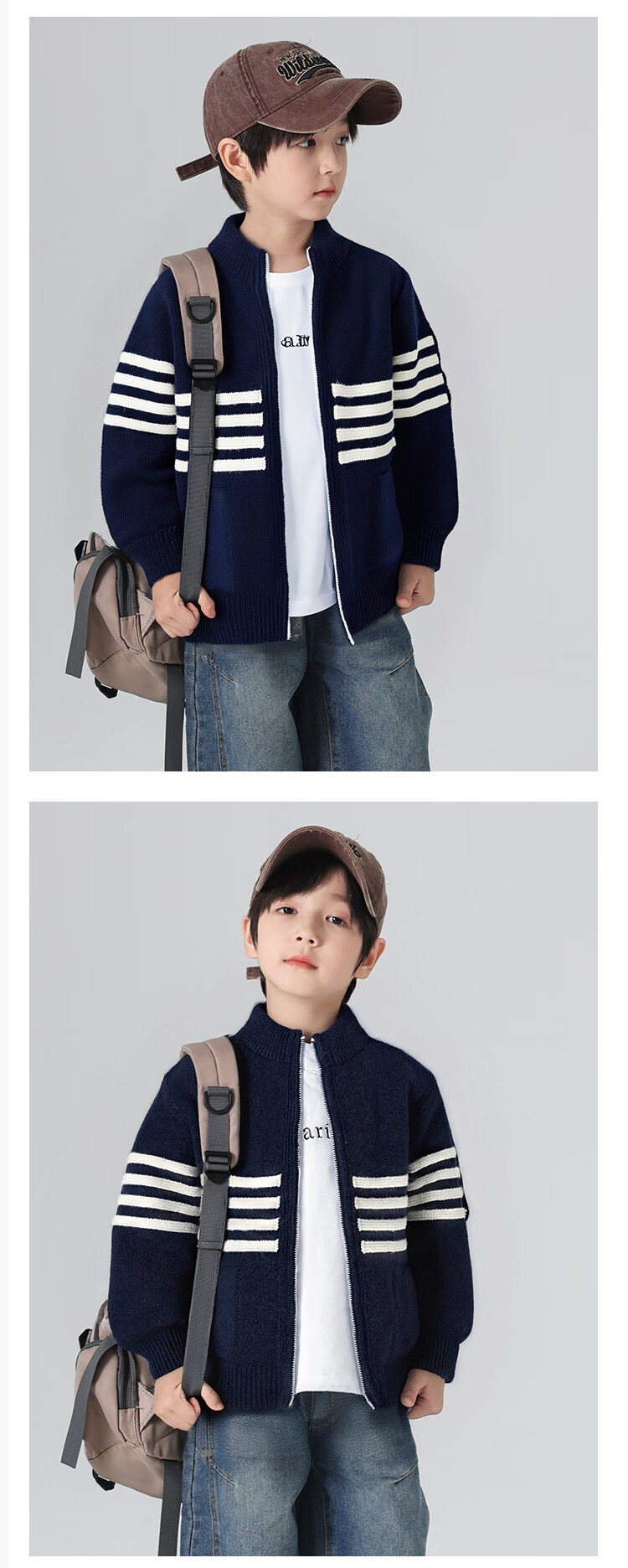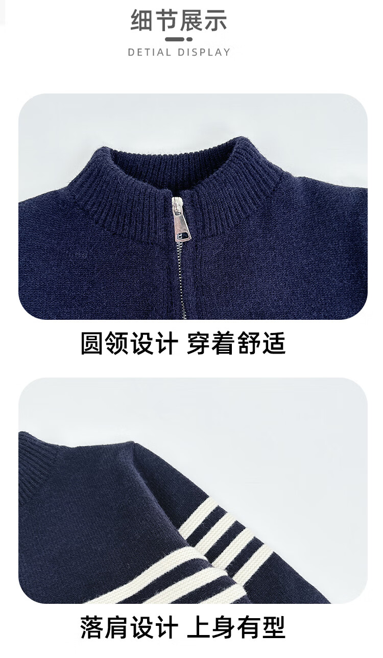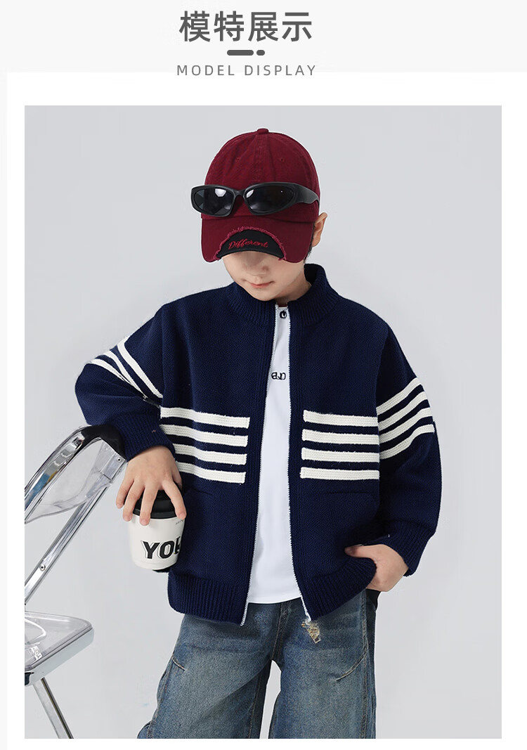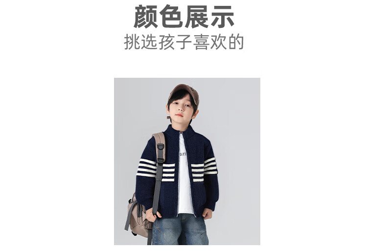悠悠童话秋冬男童针织开衫外套2025儿童拉链毛衣中大童洋气时尚打底衫 藏青色 140 68