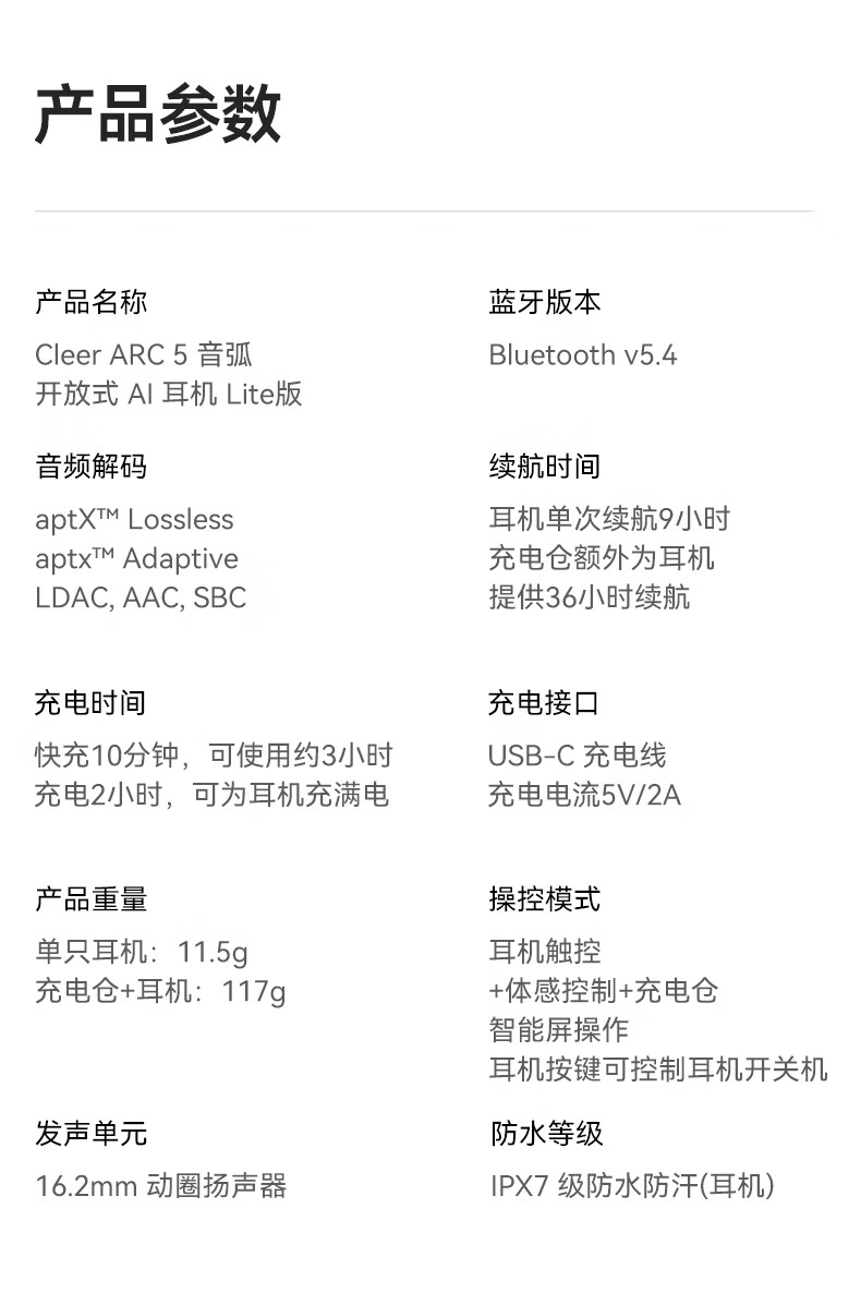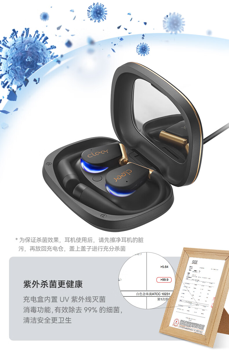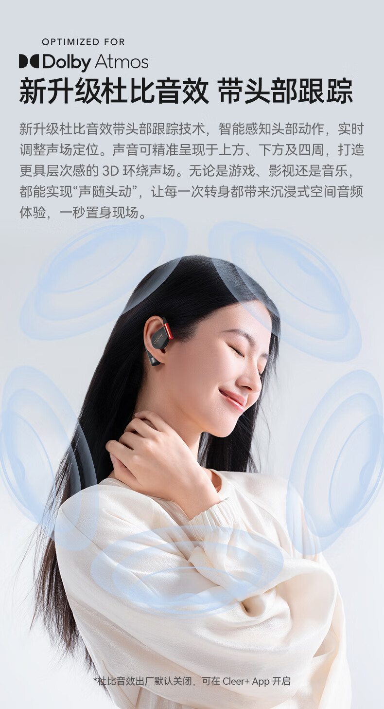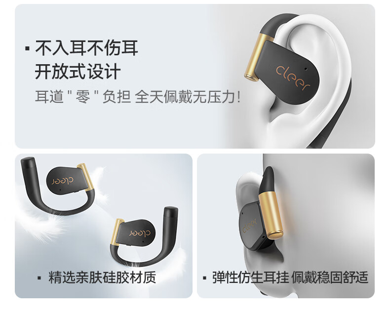 cleerARC 5 Lite开放挂耳式AI杜比音效大师音质蓝牙运动耳机适配华为苹果小米百补圣诞礼物 曜金黑