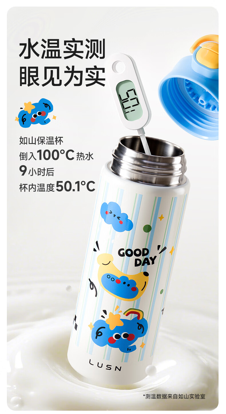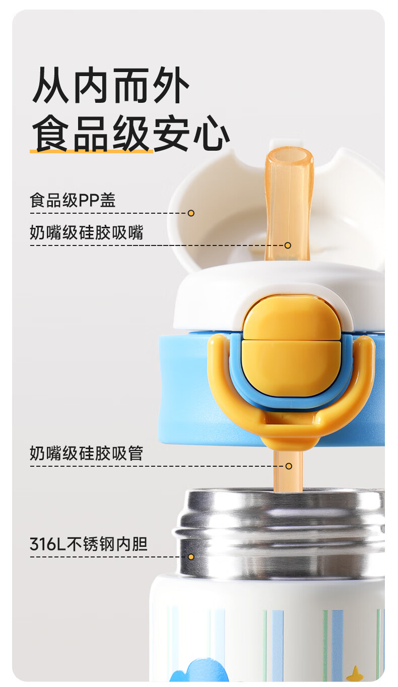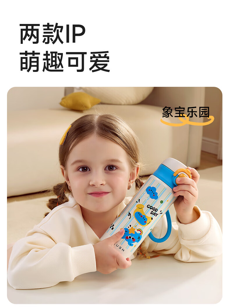 如山保温杯学生上学专用便携水杯女生高颜值儿童316L不锈钢吸管杯 狗狗派对【一盖双饮赠挂绳】450ml