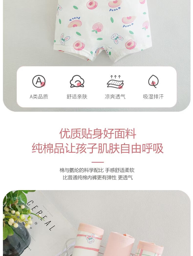 红豆(Hodo)儿童内裤女童内裤宝宝A类棉质平角短裤婴幼儿小童内裤混色4条 女童四条装 160 (150-160cm重70-80斤)