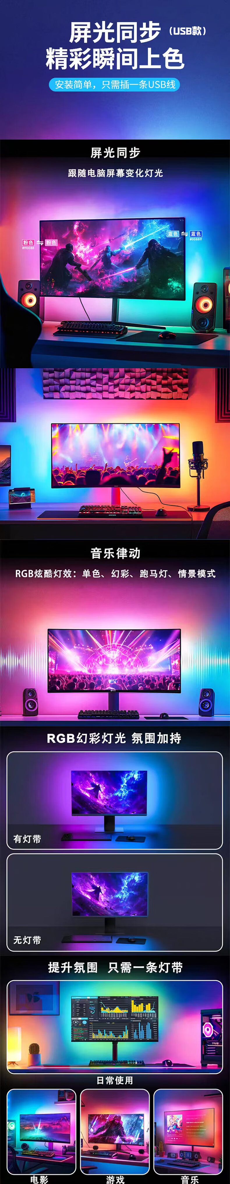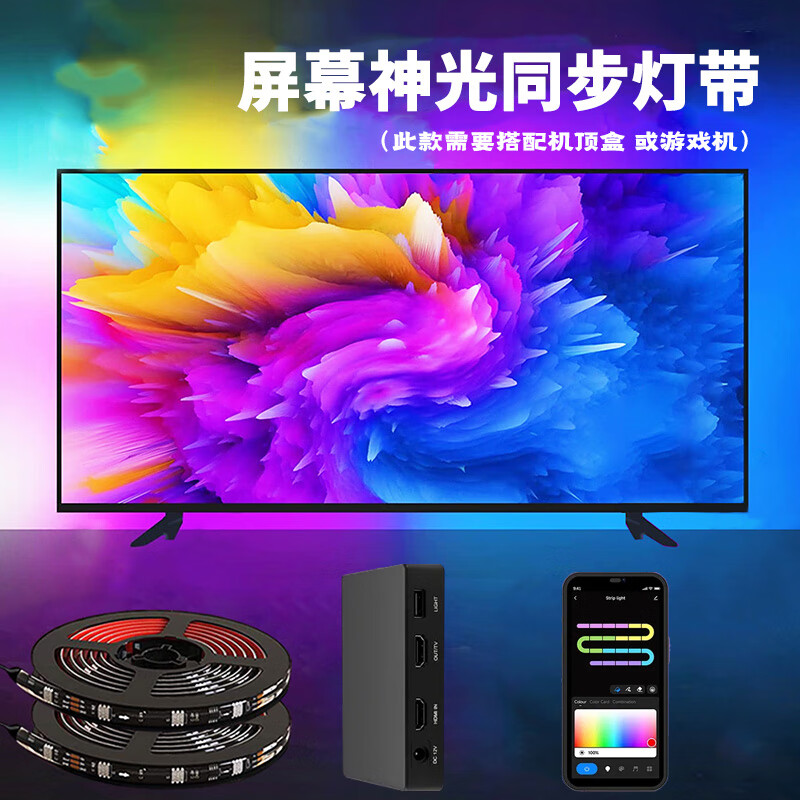 维亿曼游戏电视背景同步氛围灯带幻彩rgb同屏随屏神光同步机顶盒联动tv 适合75-86寸(USB款无需APP和机顶盒)