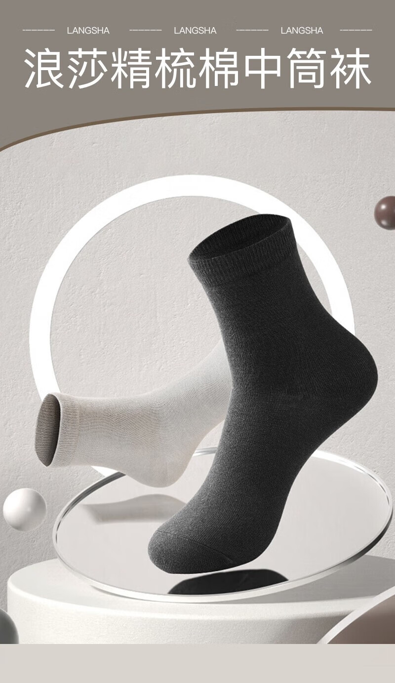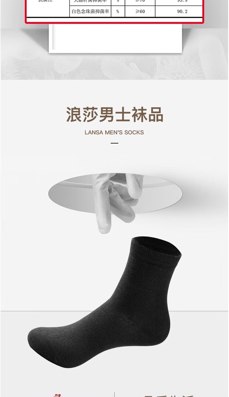 浪莎男士袜子男纯色简约舒适百搭中筒袜秋冬款透气吸汗商务休闲男袜 黑色10双 均码