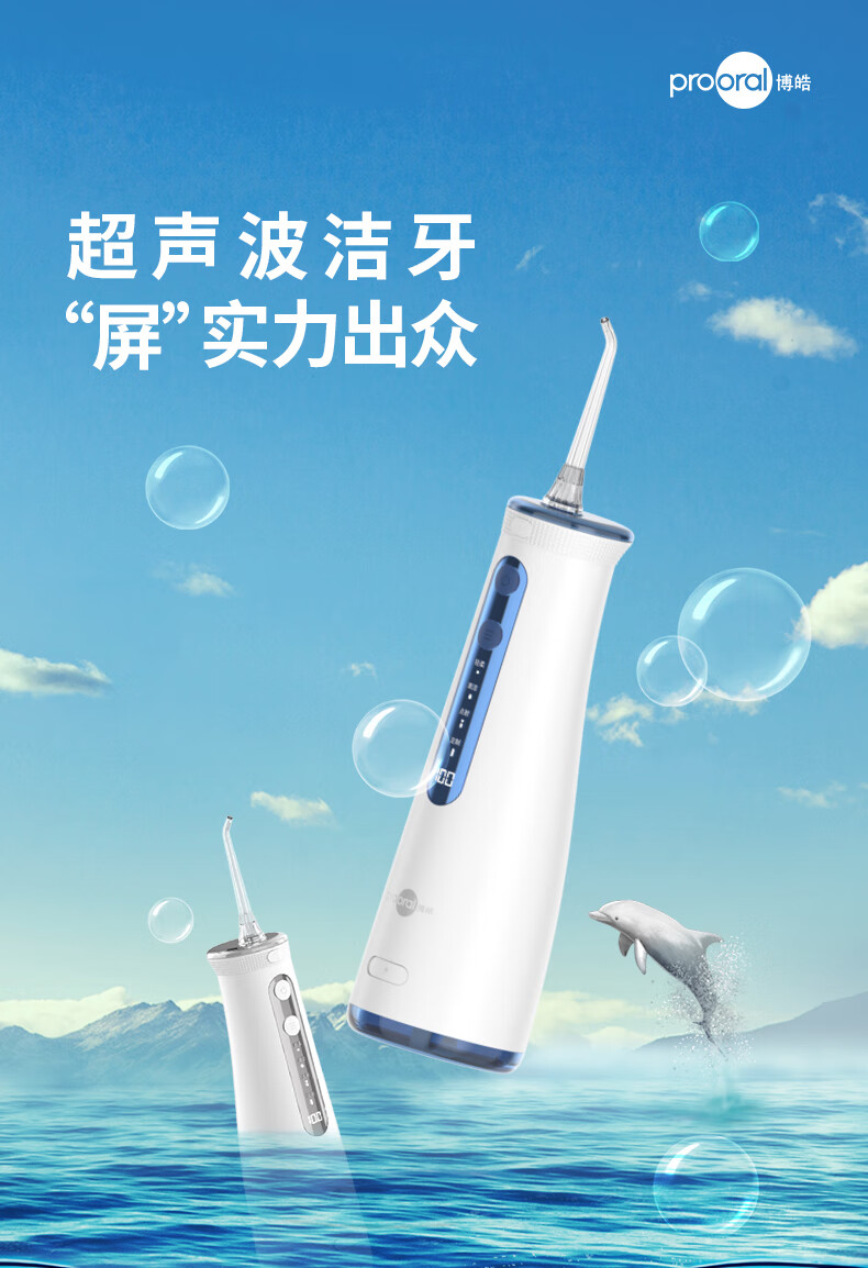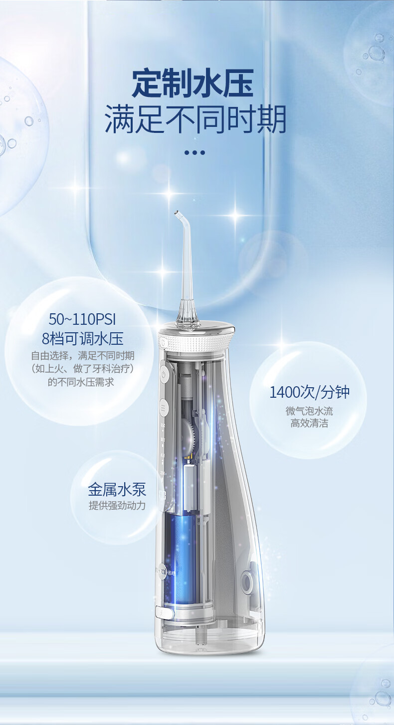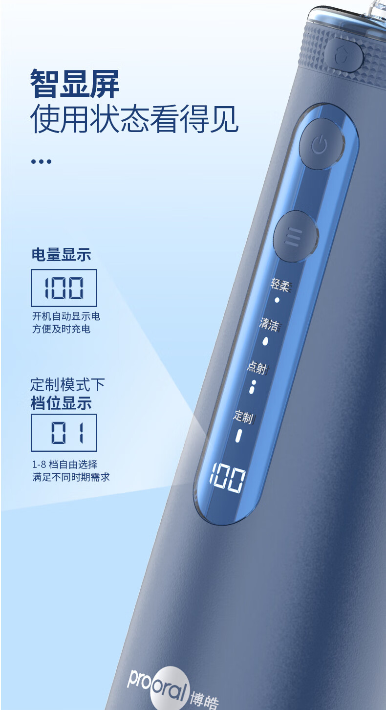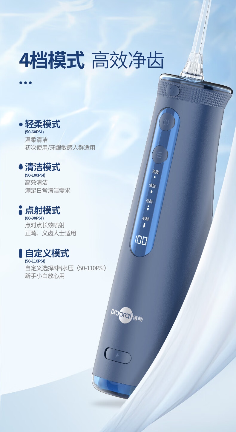 博皓(prooral) 电动冲牙器洗牙器冲洗器牙齿清洁器水牙线口腔清洗器牙垢去除工具正畸牙缝剔牙神器 家用手持立式 黛粉