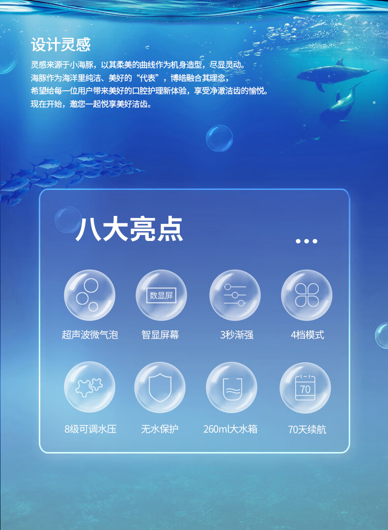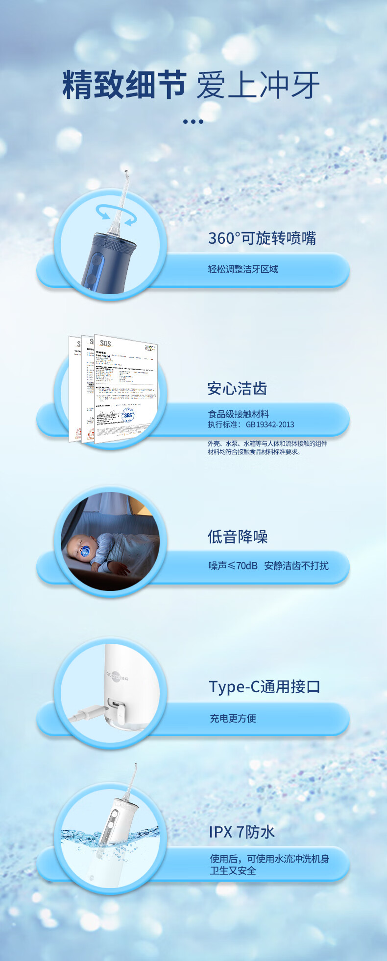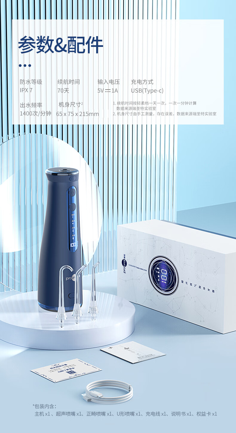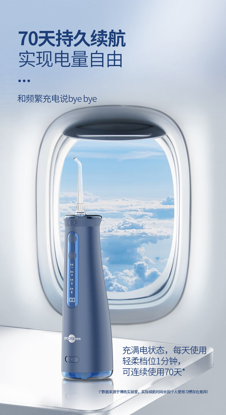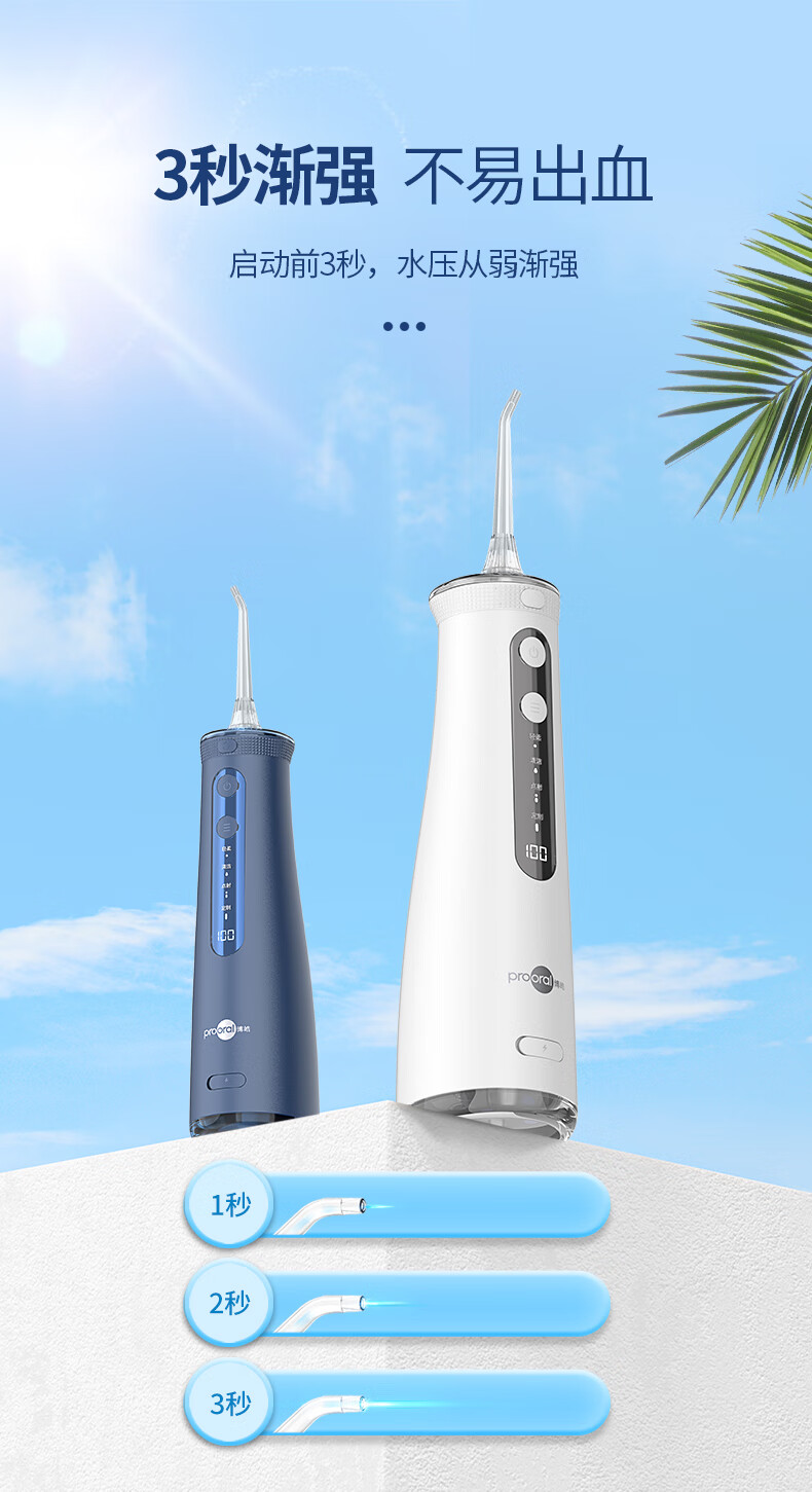 博皓(prooral) 电动冲牙器洗牙器冲洗器牙齿清洁器水牙线口腔清洗器牙垢去除工具正畸牙缝剔牙神器 家用手持立式 黛粉