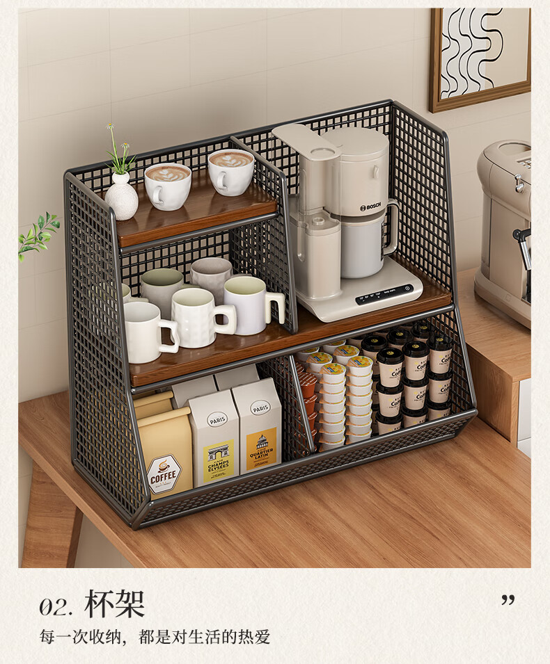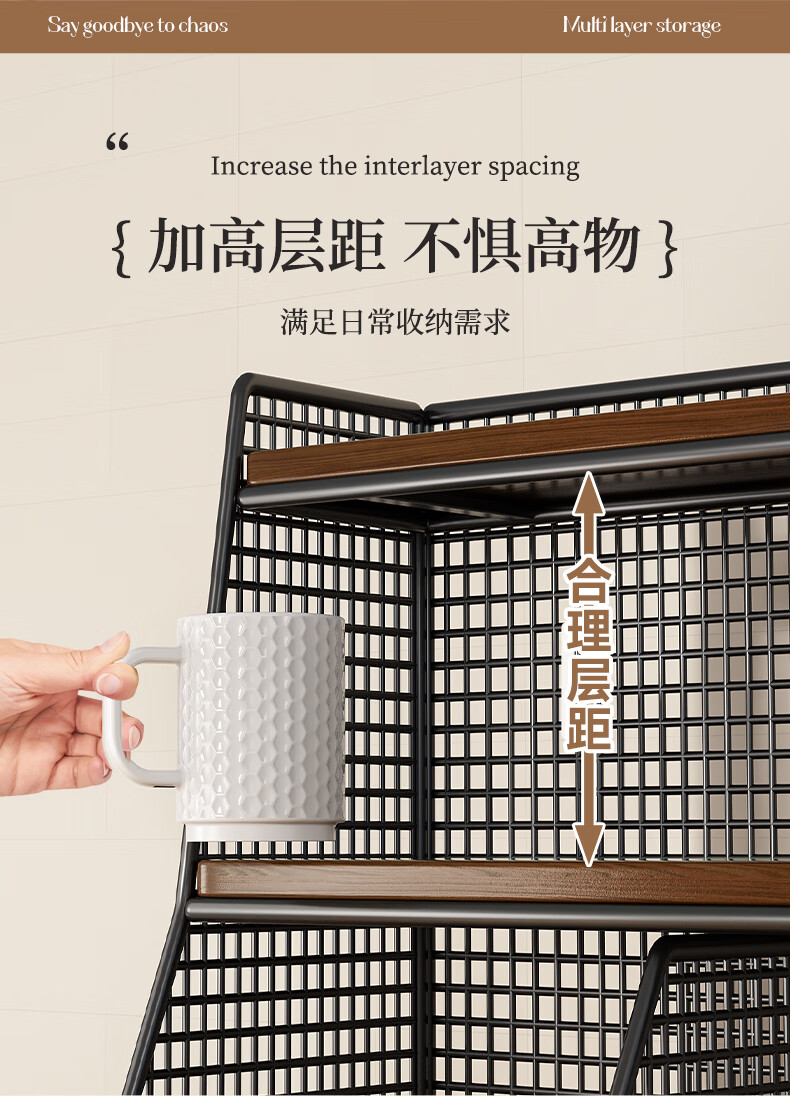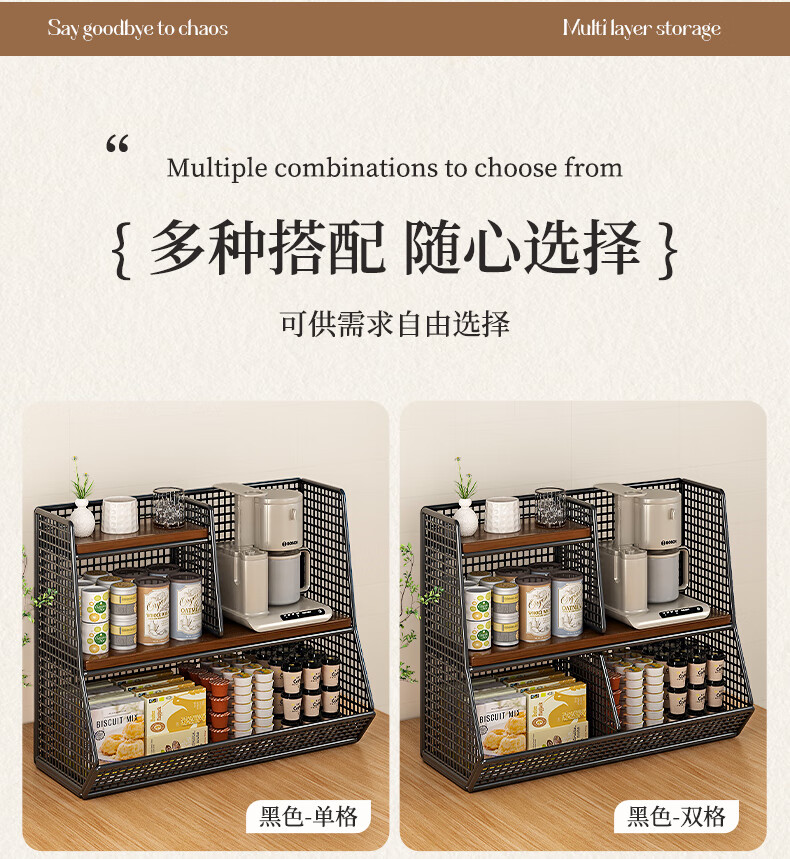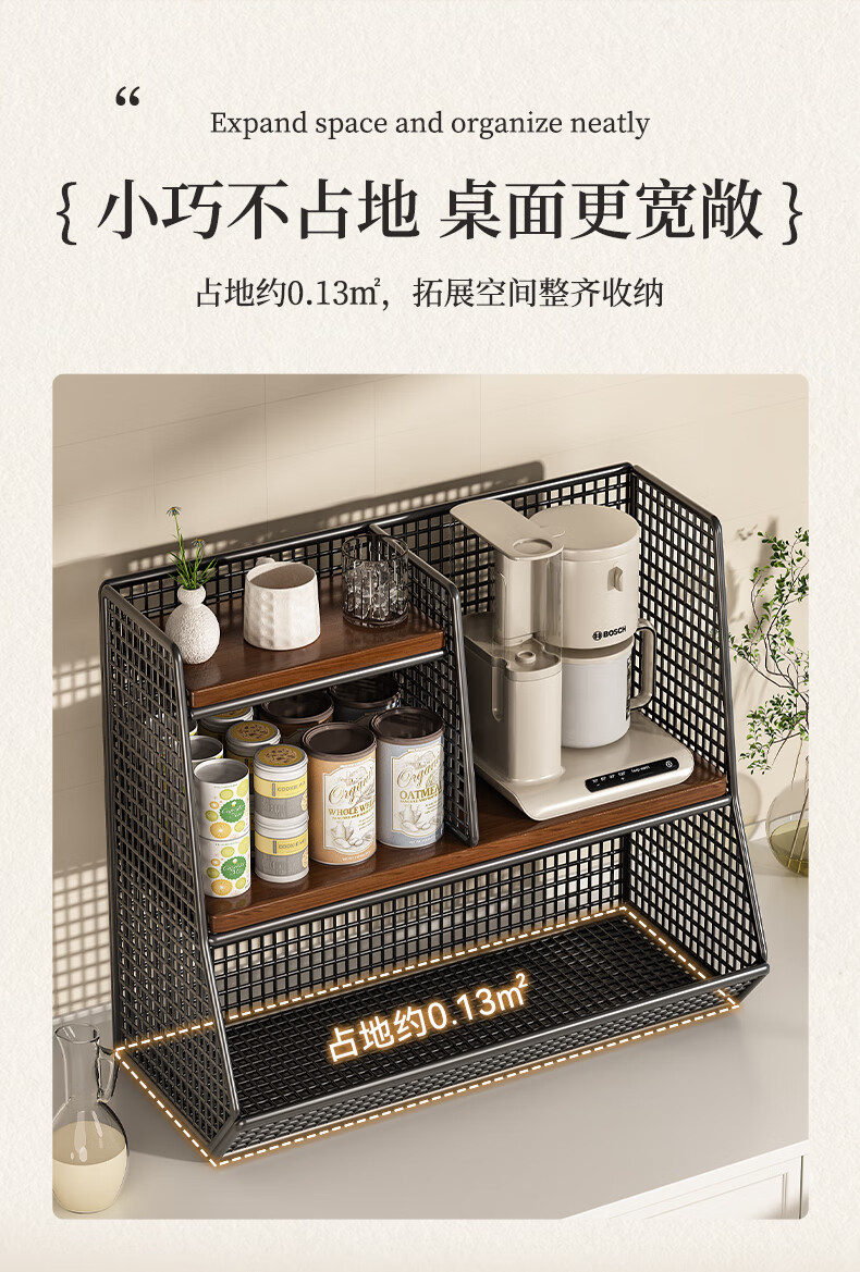 杯子收纳神器桌面置物架分层零食厨房家用餐桌上台面架多 黑架胡桃色40cm【大号单格】