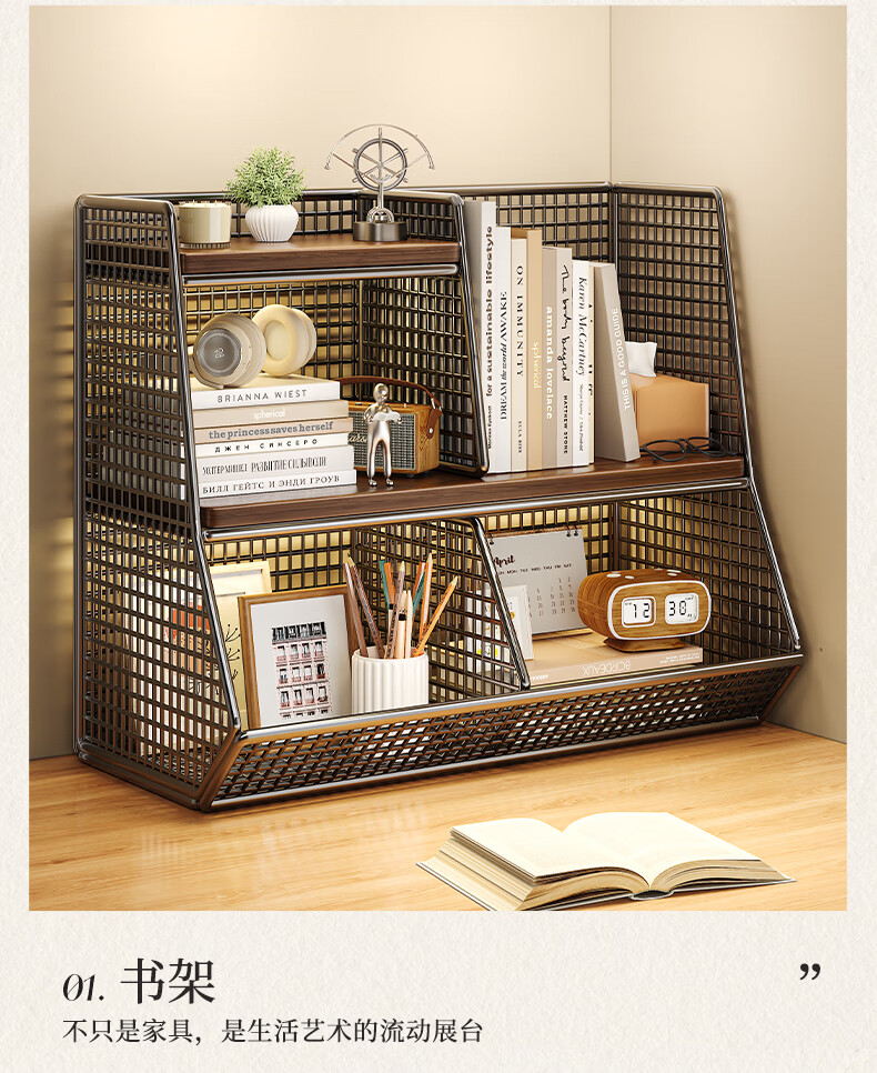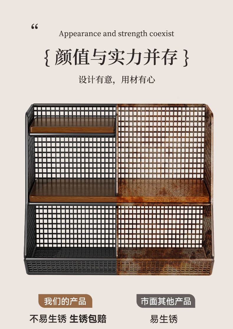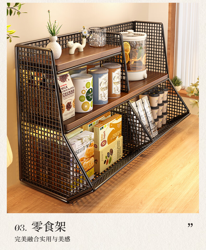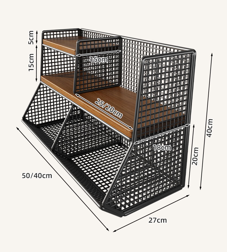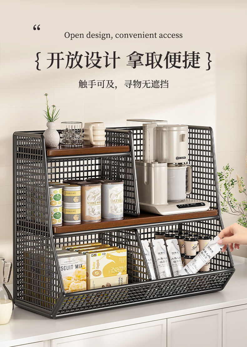 杯子收纳神器桌面置物架分层零食厨房家用餐桌上台面架多 黑架胡桃色40cm【大号单格】