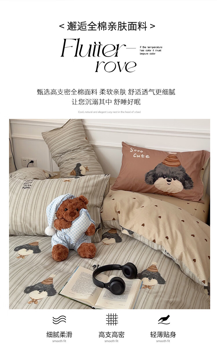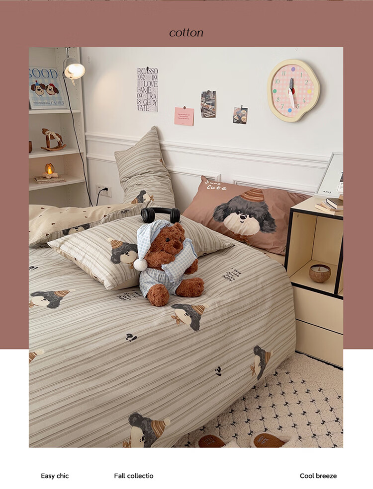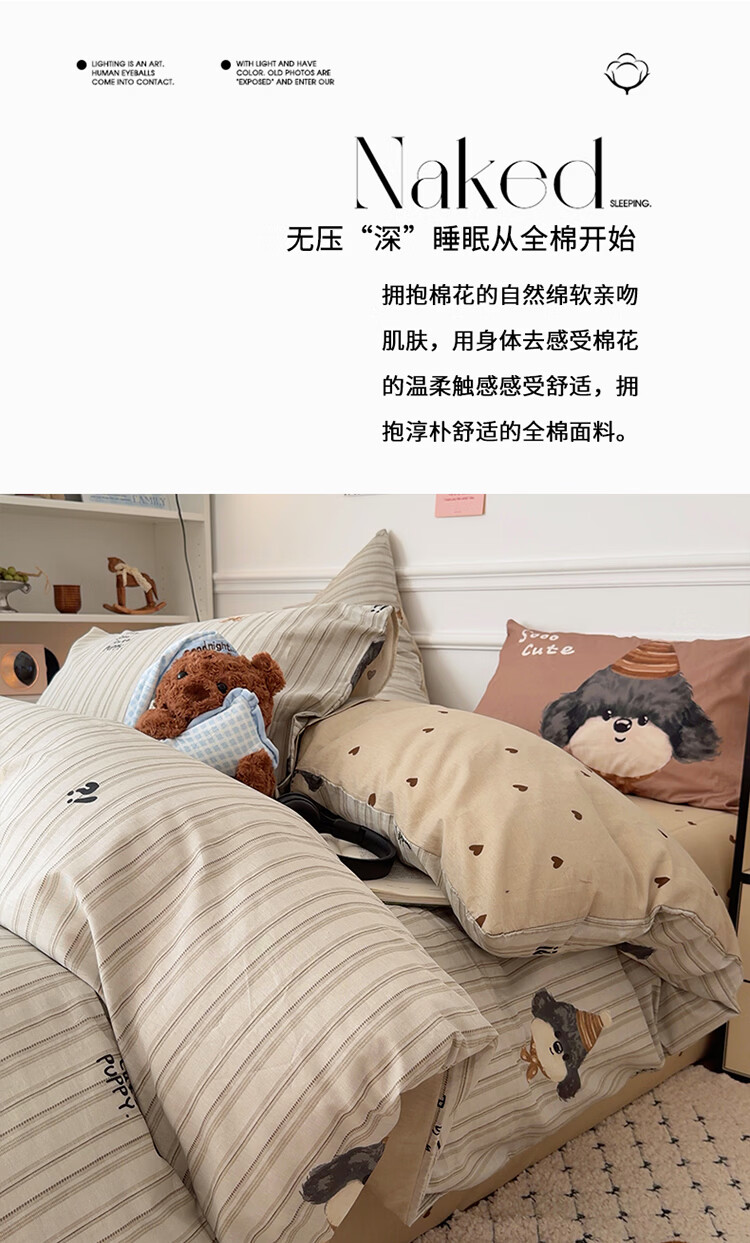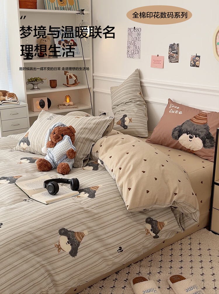 无印良品卡通全棉床上四件套纯棉裸睡四季通用床单被套罩床笠款床品三件套 吉祥小马【100%全棉 亲肤可裸睡】 1.5m 床笠款 四件套-被套200*230cm
