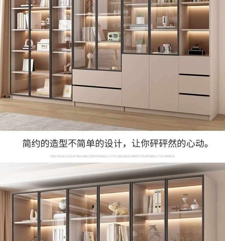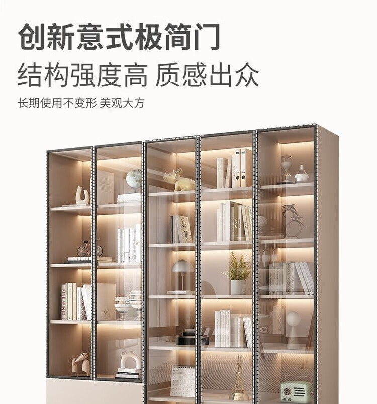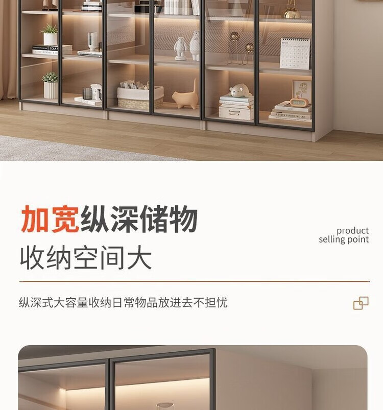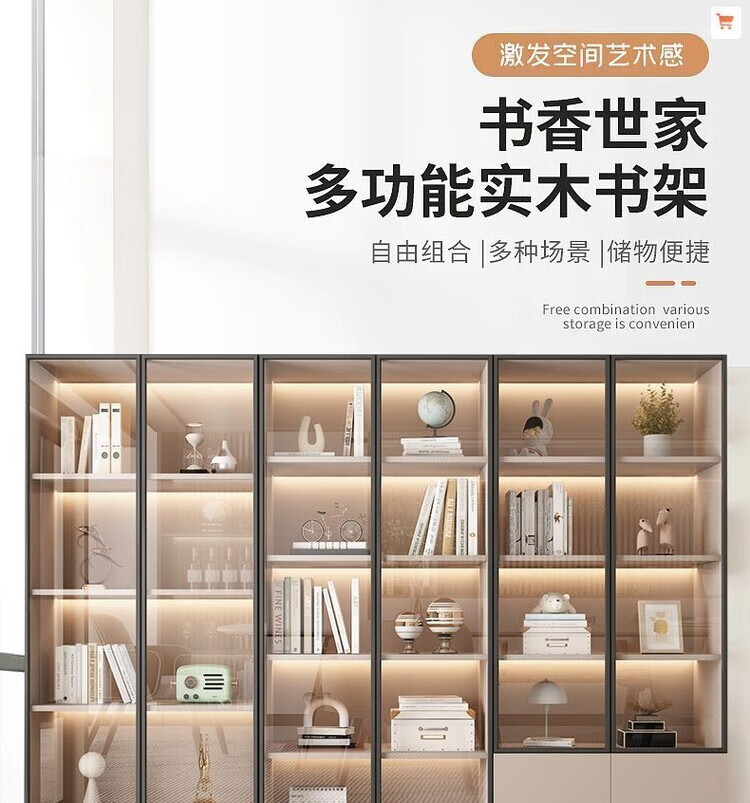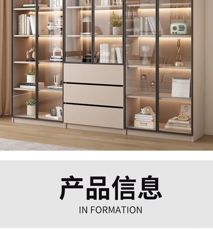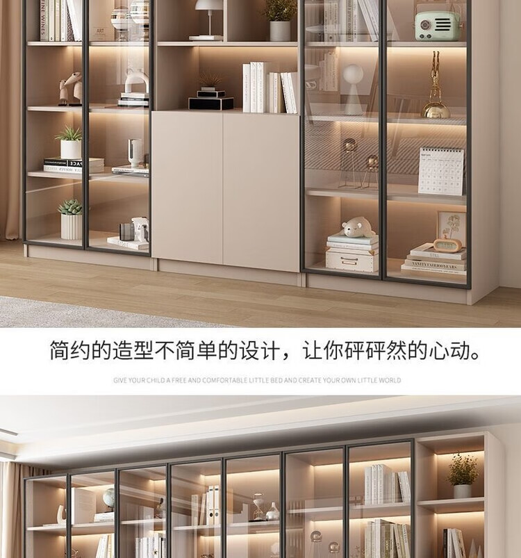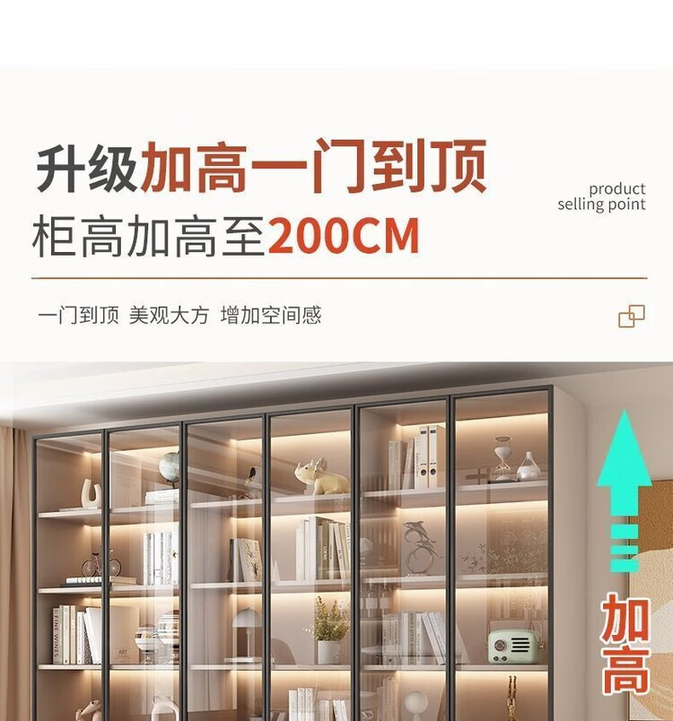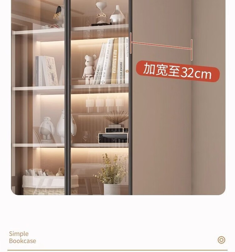 欣慕雅新中式书柜一门到顶加高客厅带玻璃门展示储物柜家用书房门墙书架 奶茶单门 +40cm