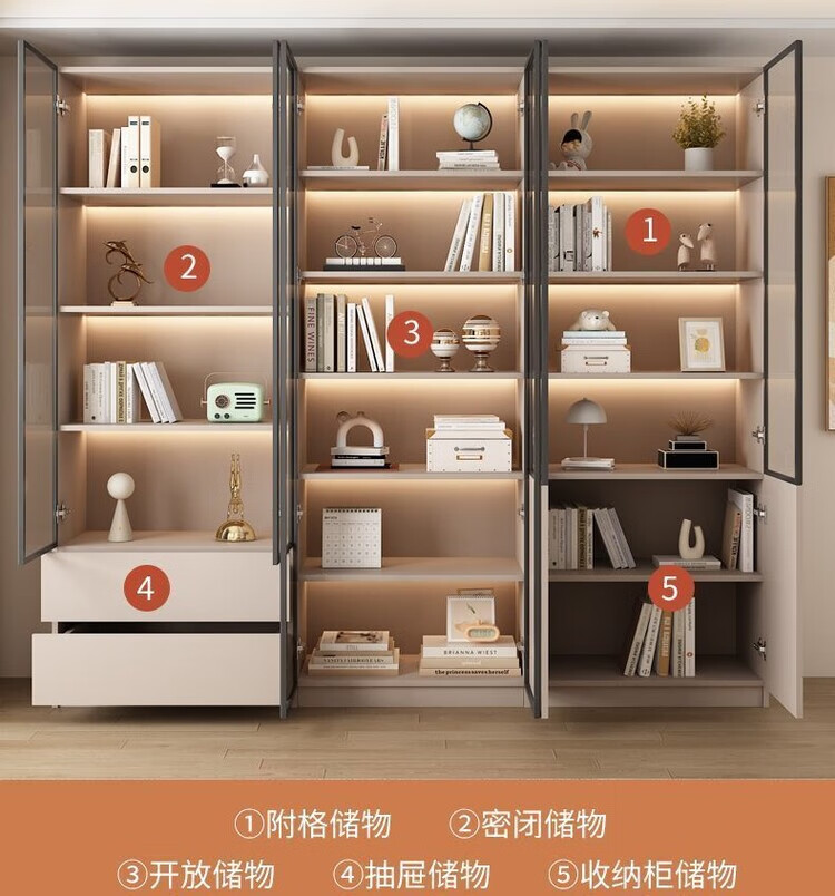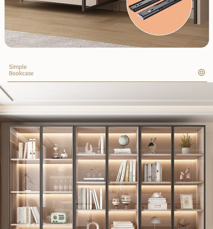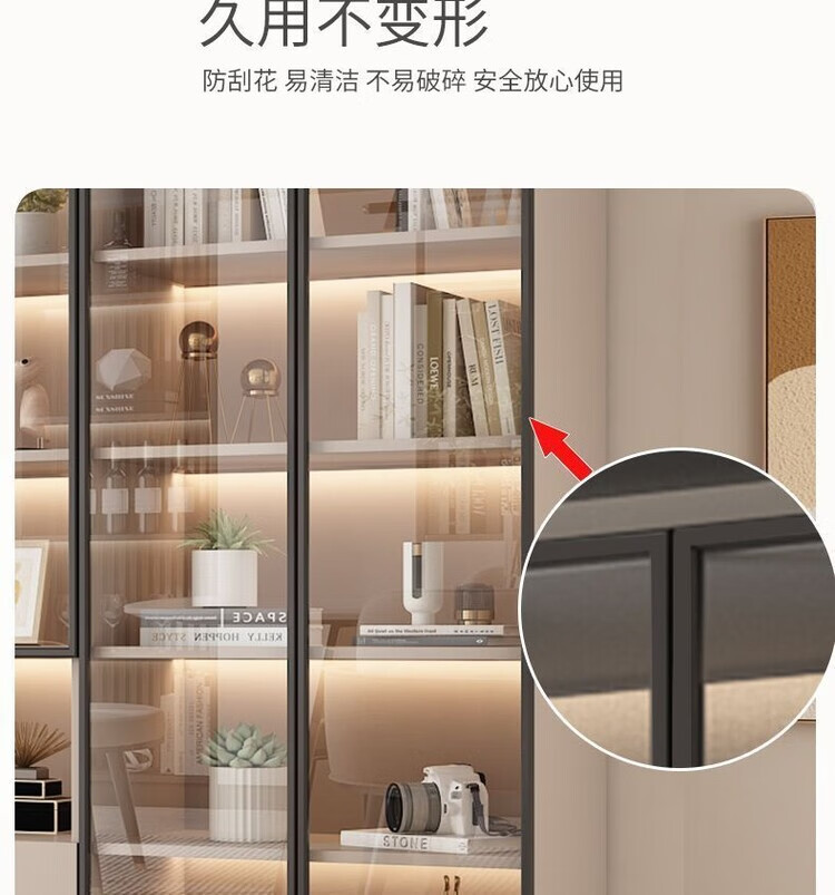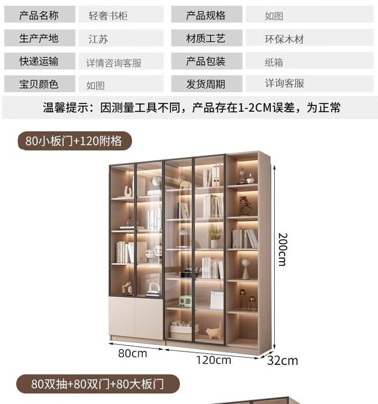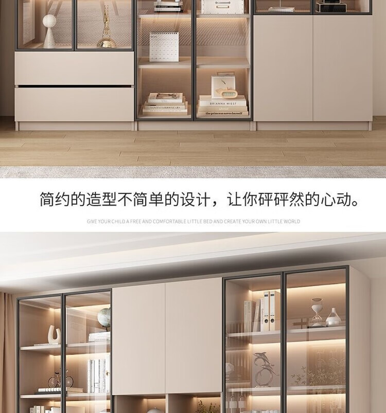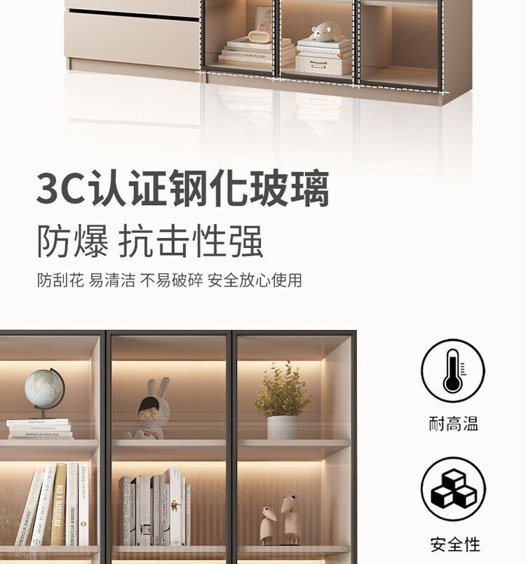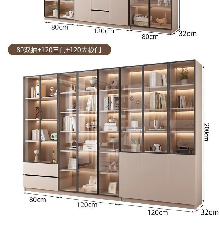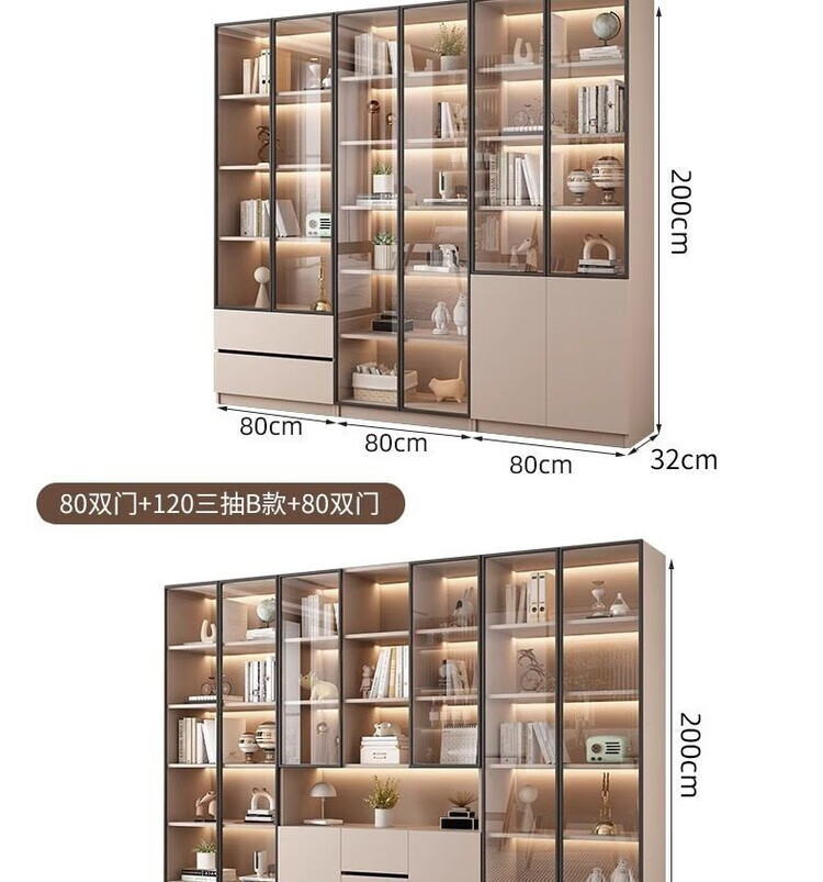 欣慕雅新中式书柜一门到顶加高客厅带玻璃门展示储物柜家用书房门墙书架 奶茶单门 +40cm