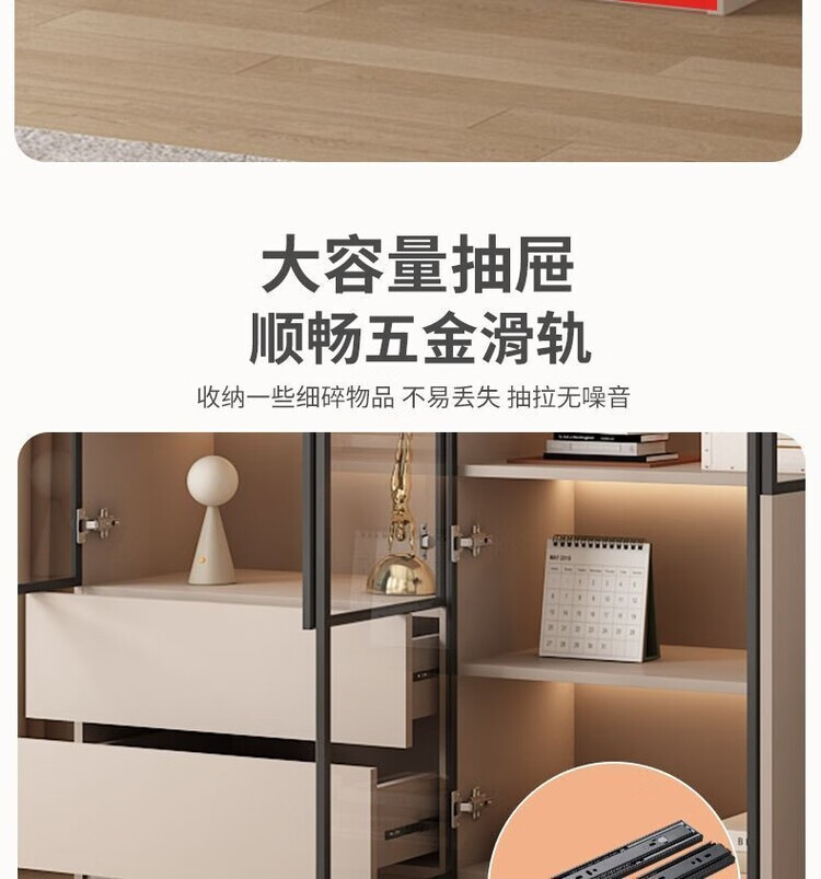 豪利邦厨房钢制餐边柜家用落地大容量多层置物架加厚防尘收纳储物柜碗柜 【枪灰色】加厚碳钢 42深 三层【长60*高80cm】加厚防尘