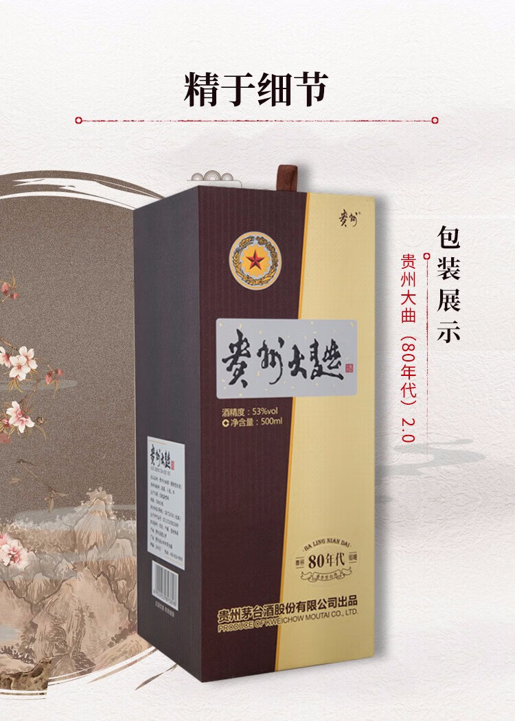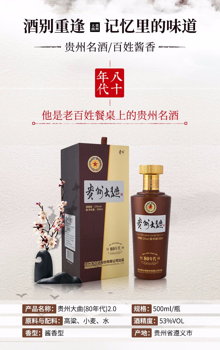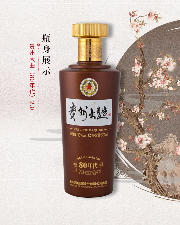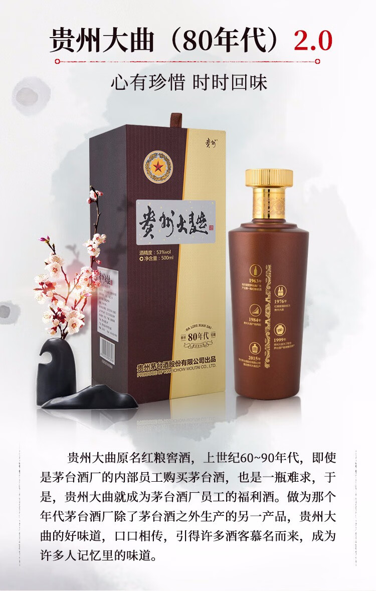 茅台贵州大曲80年代 53度酱香型白酒 53%vol 500mL 2瓶 大曲80年代双瓶