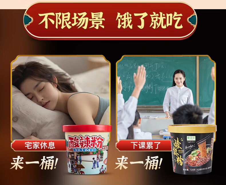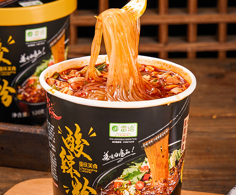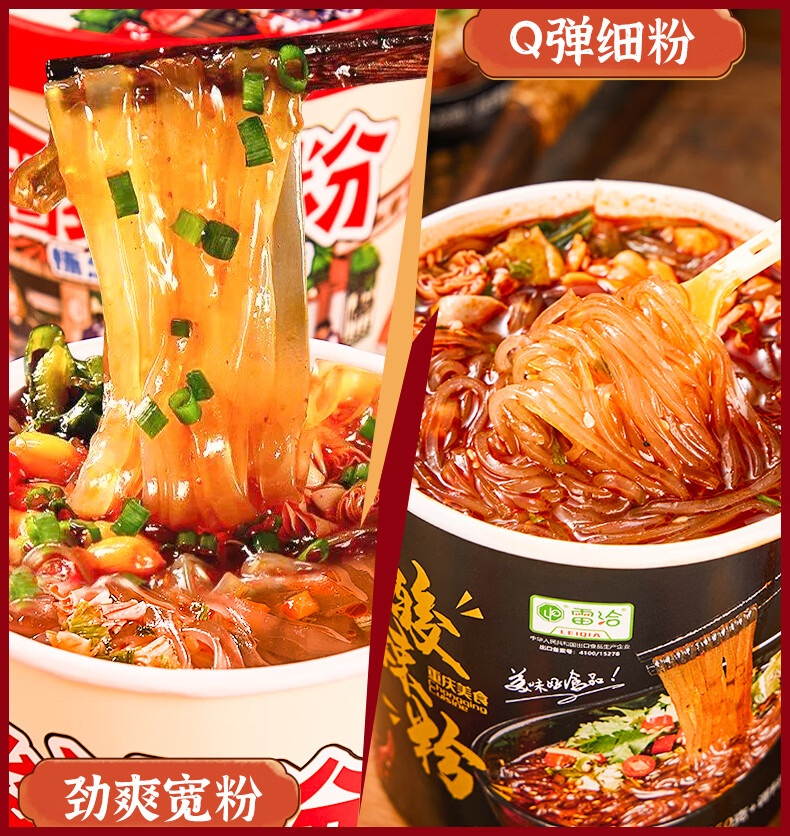 雷洽香辣网红爆款酸辣粉大桶装正宗重庆红薯粉丝米线方便速食懒人夜宵 雷洽酸辣圆粉+酸辣宽粉158g*6桶