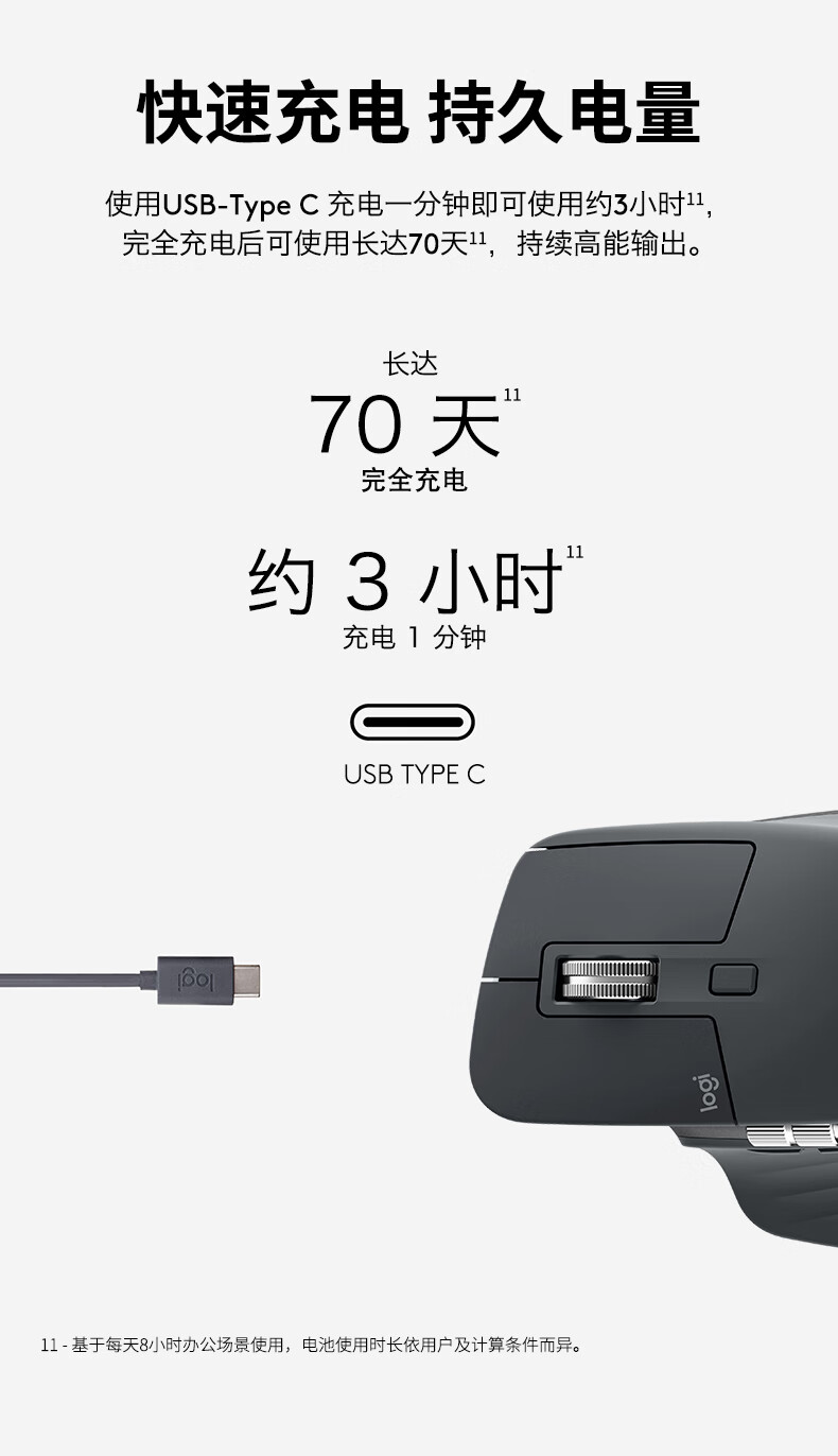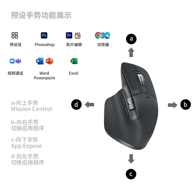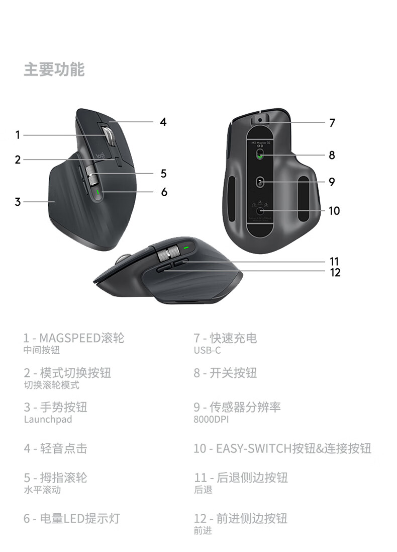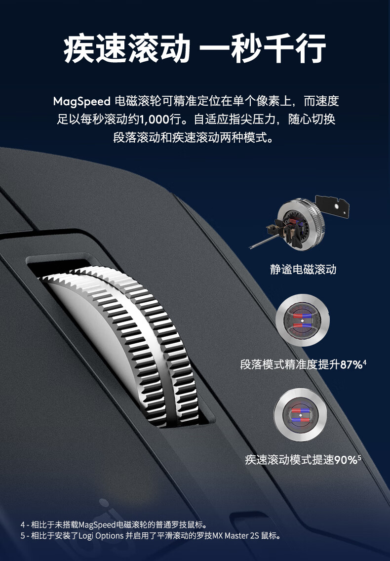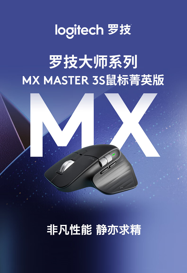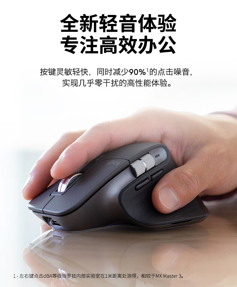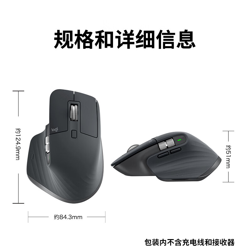罗技(Logitech)大师系列 MX Master 3S 菁英版 无线蓝牙鼠标 办公静音鼠标 人体工学 石墨黑 无线接收器需另购买