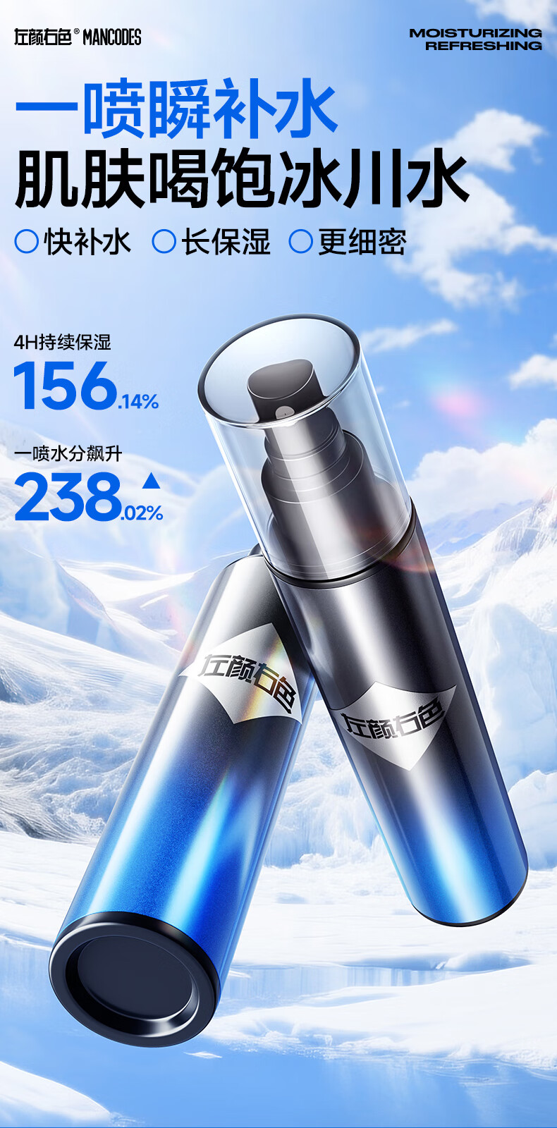 左颜右色【郑恺代言】冰川男士爽肤水喷雾100ml保湿柔肤水须后水爽肤水